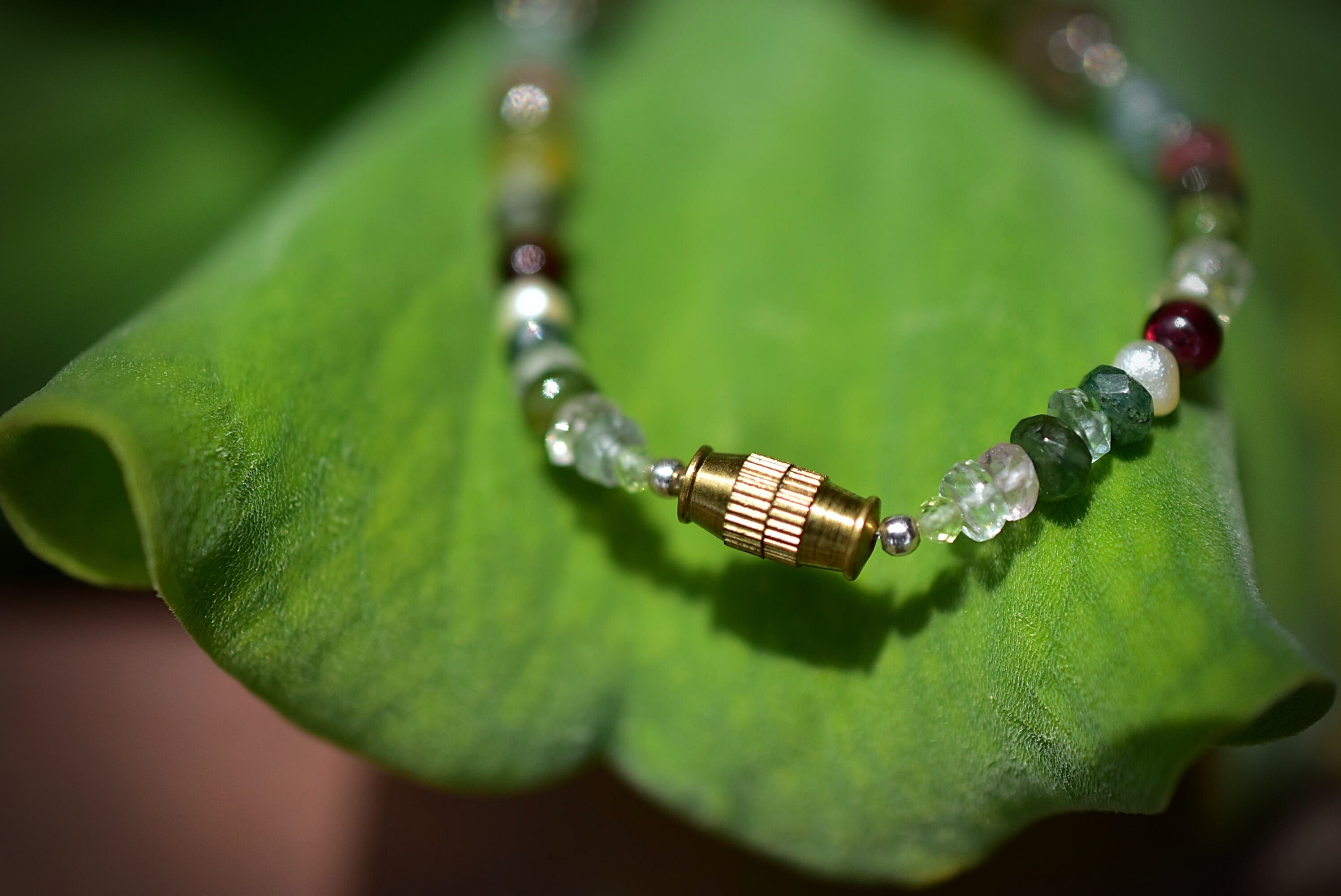トルマリンビーズ、レッドアゲートを組み合わせて