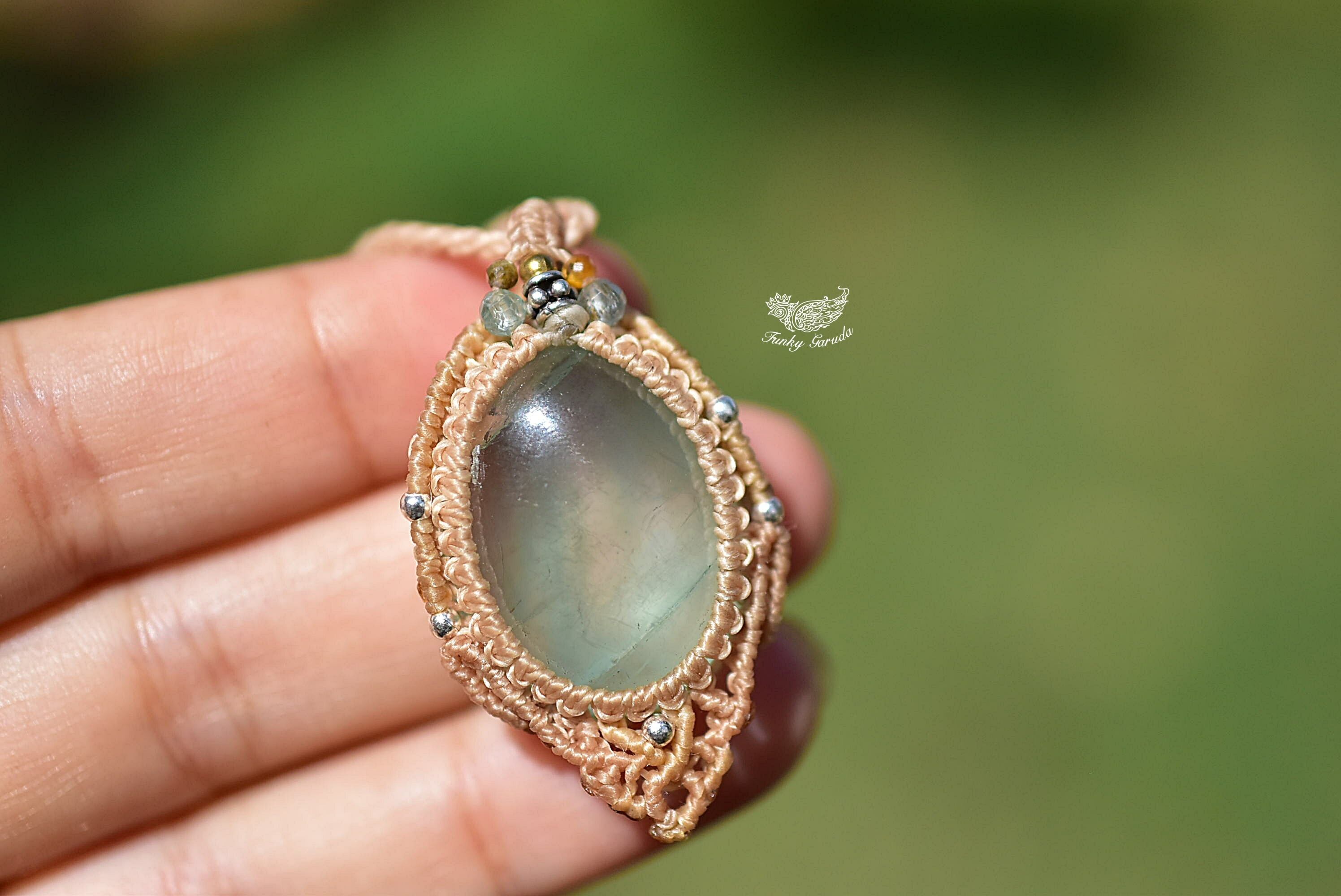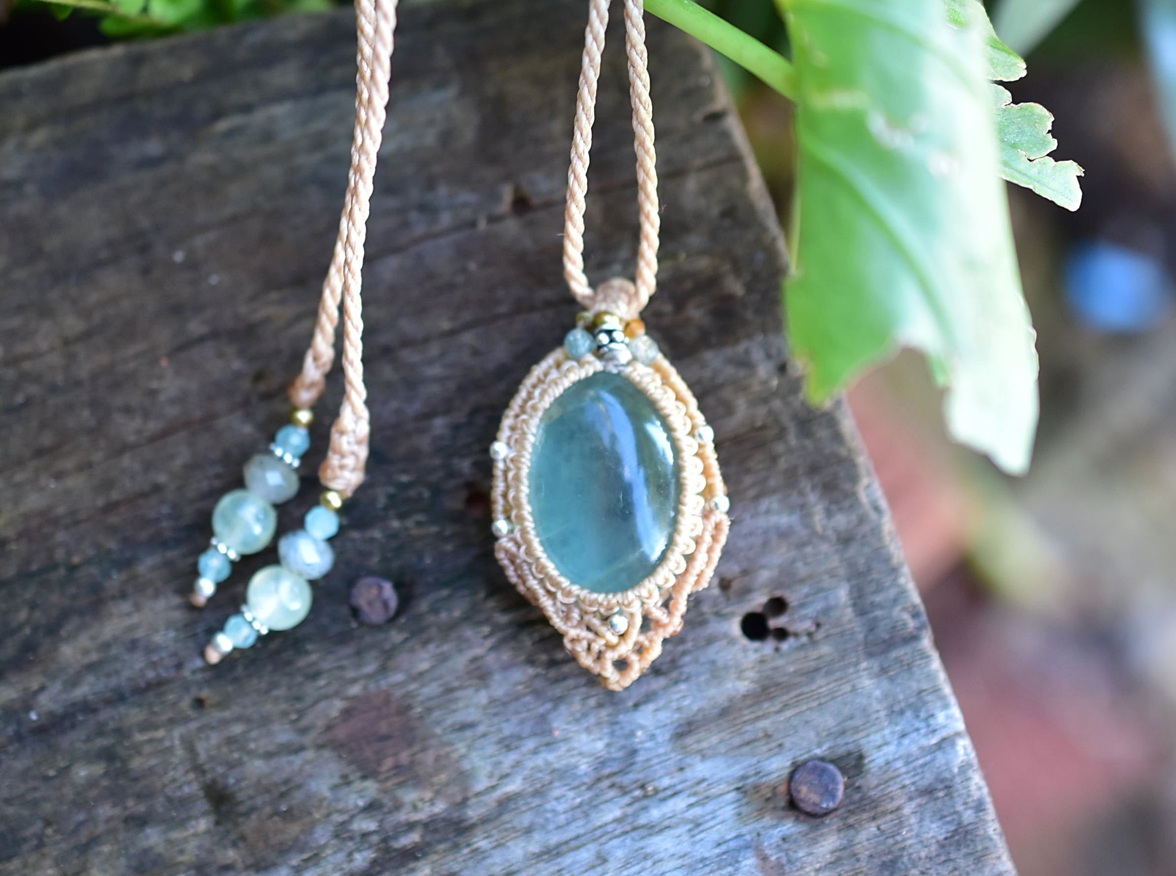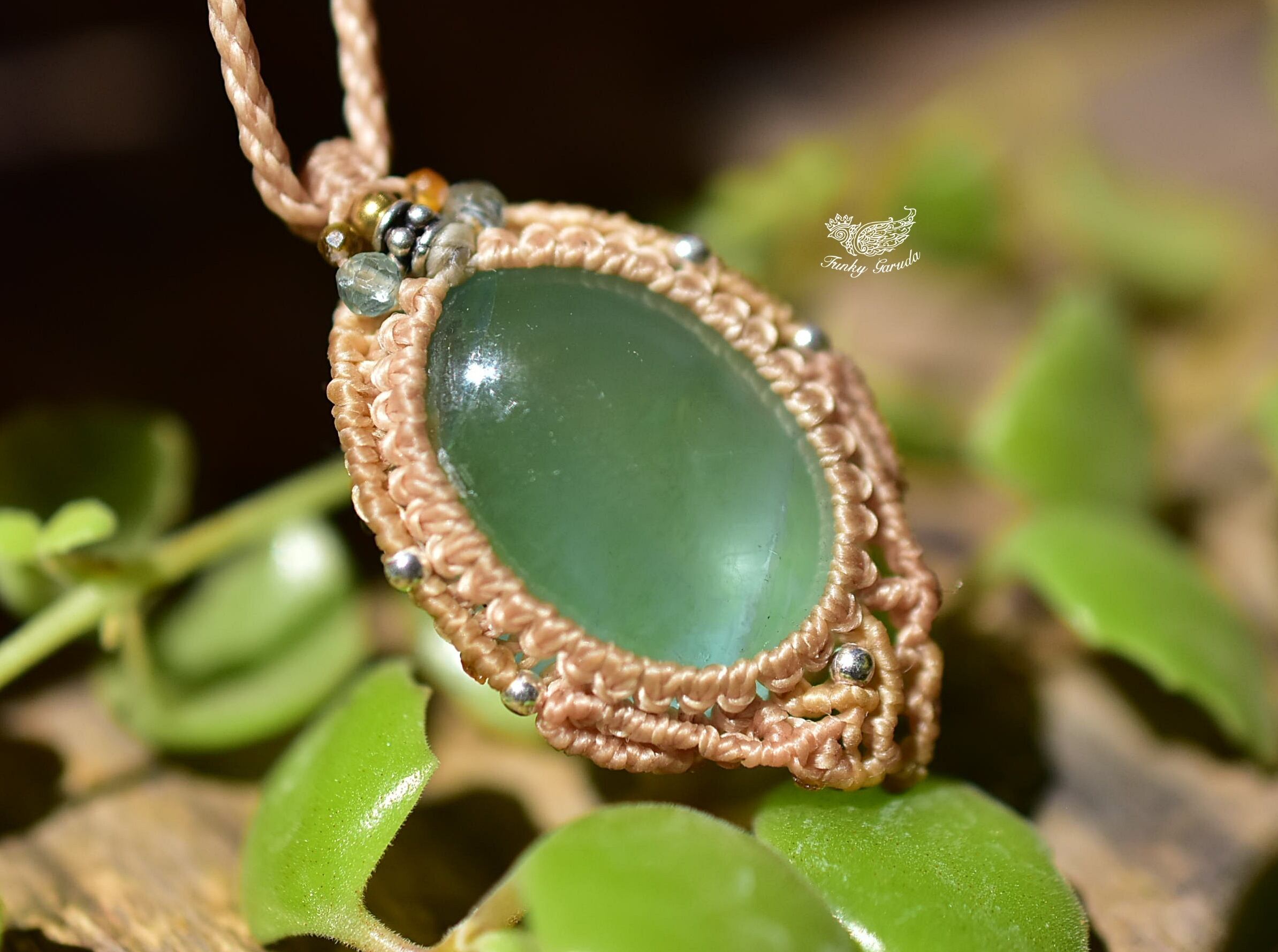 爽やかグリーン★高品質プレナイト マクラメペンダント621