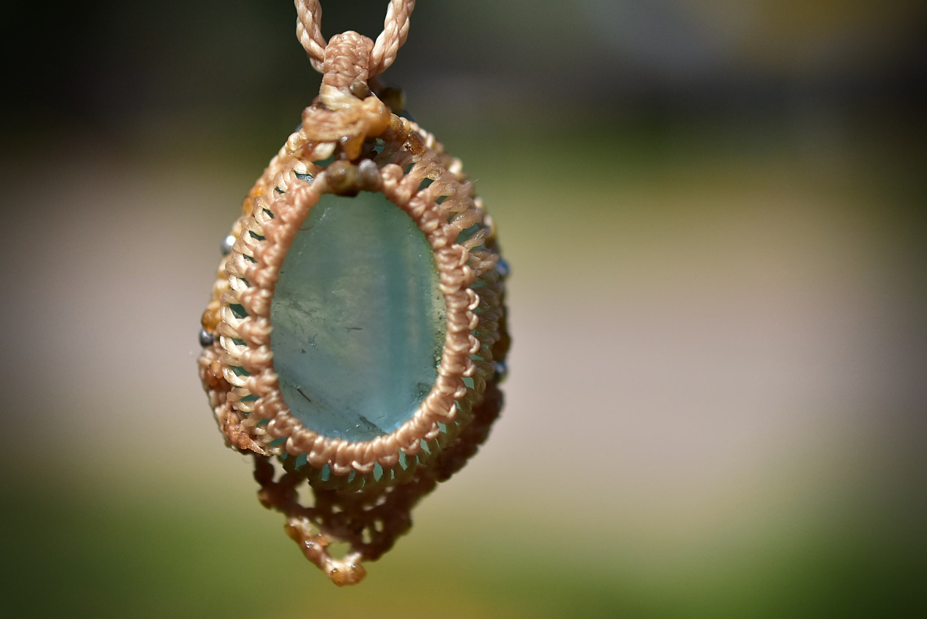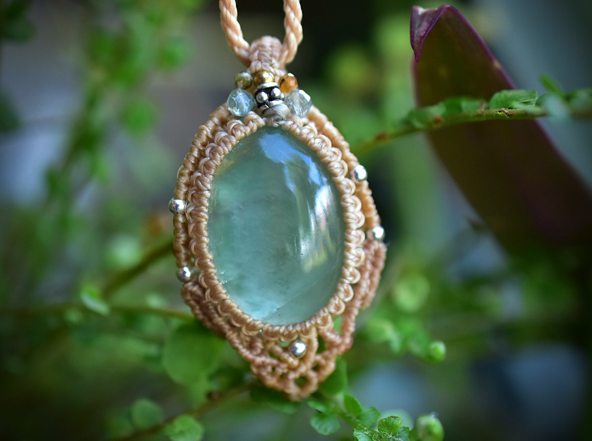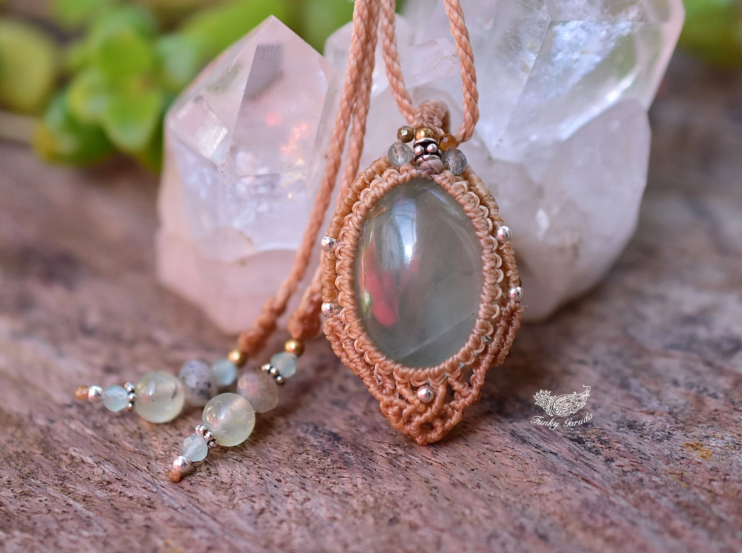 爽やかグリーン★高品質プレナイト マクラメペンダント621