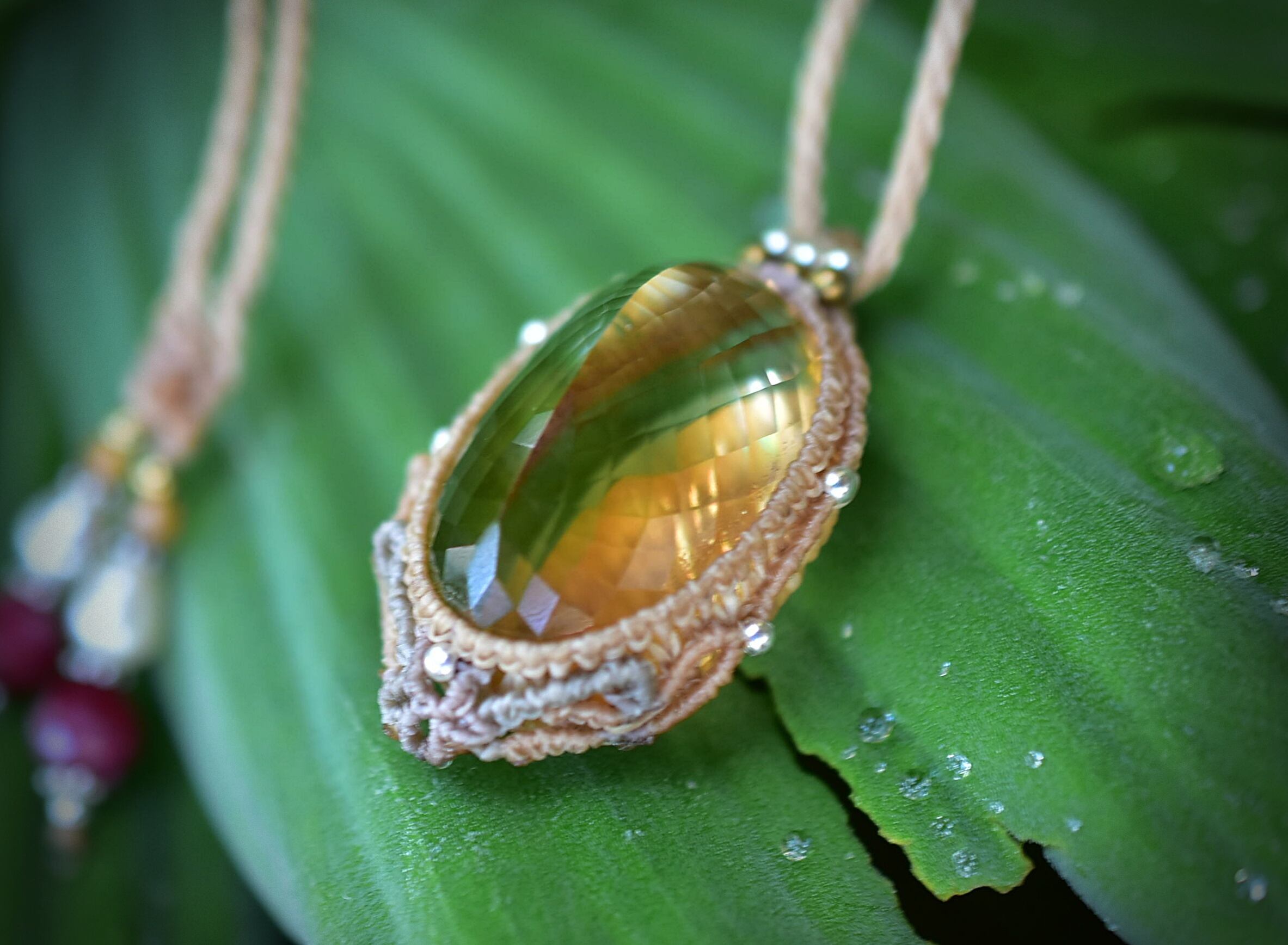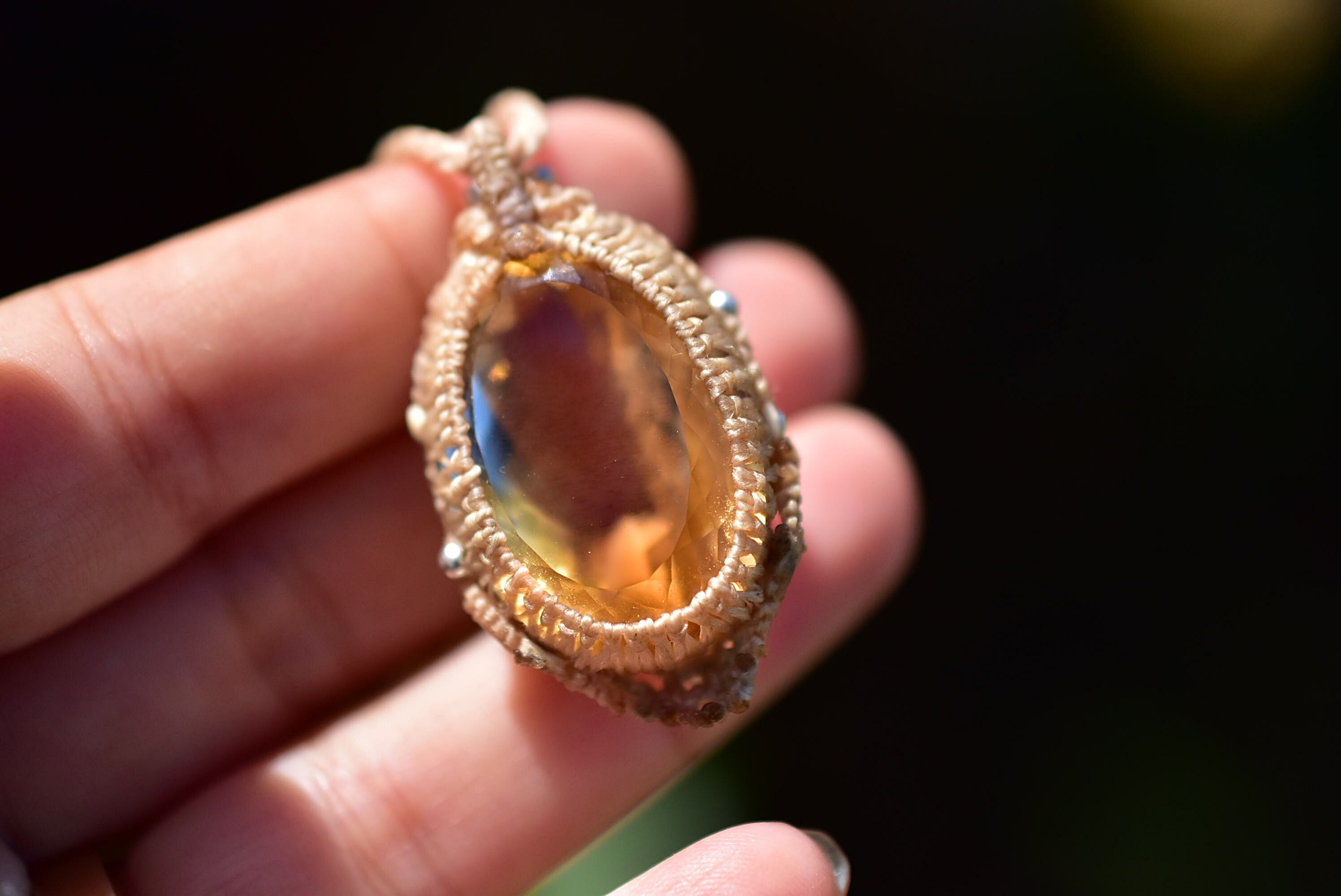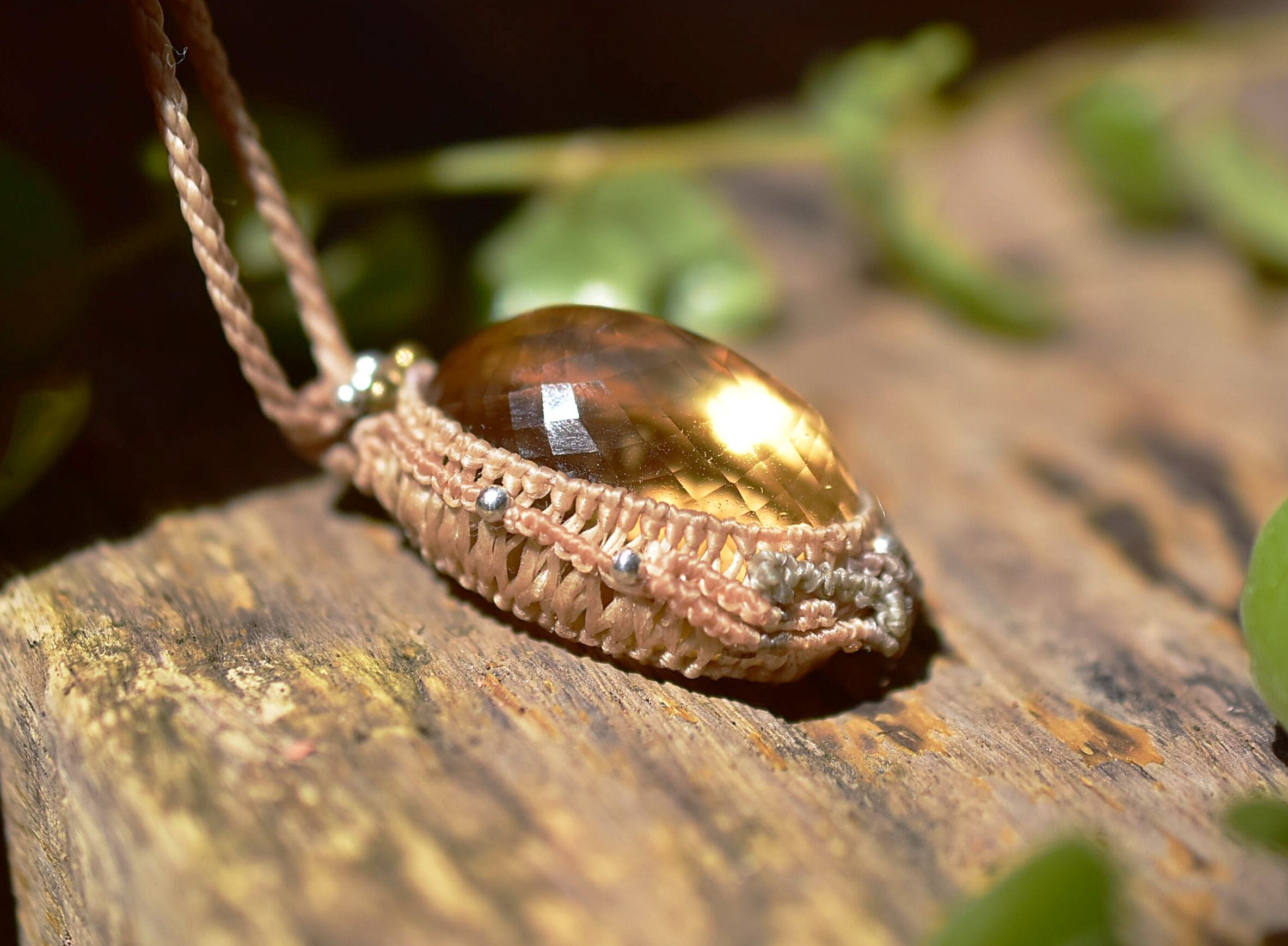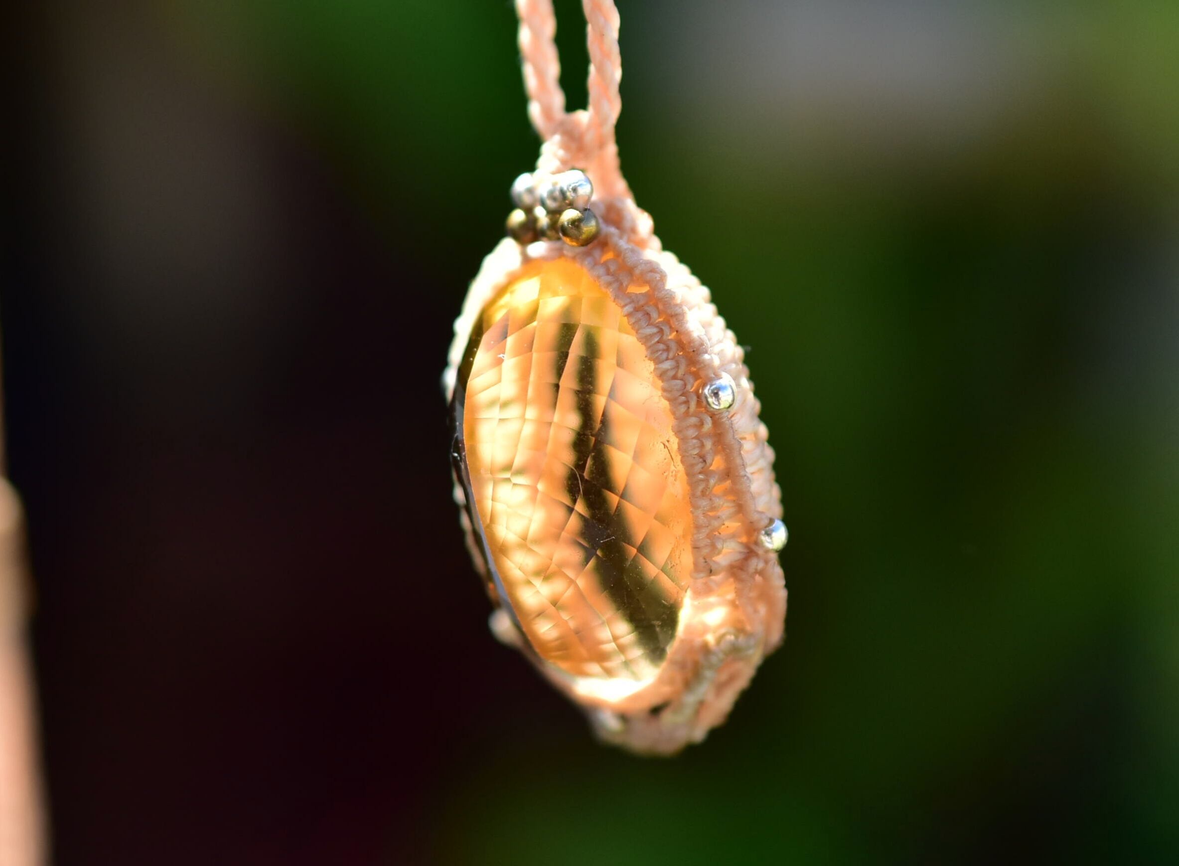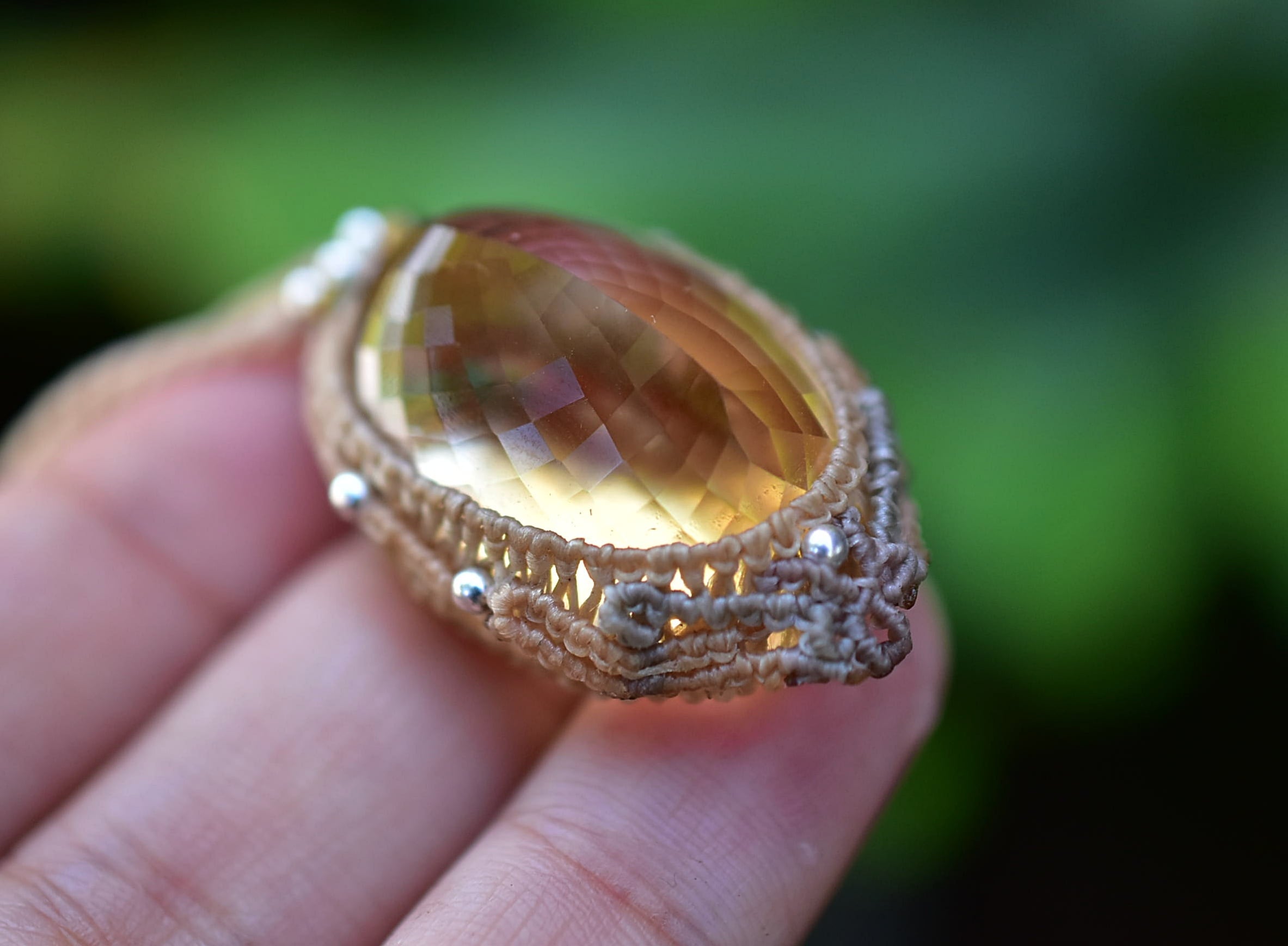 61ct金貨の石★ファセットカット★シトリン マクラメペンダント624