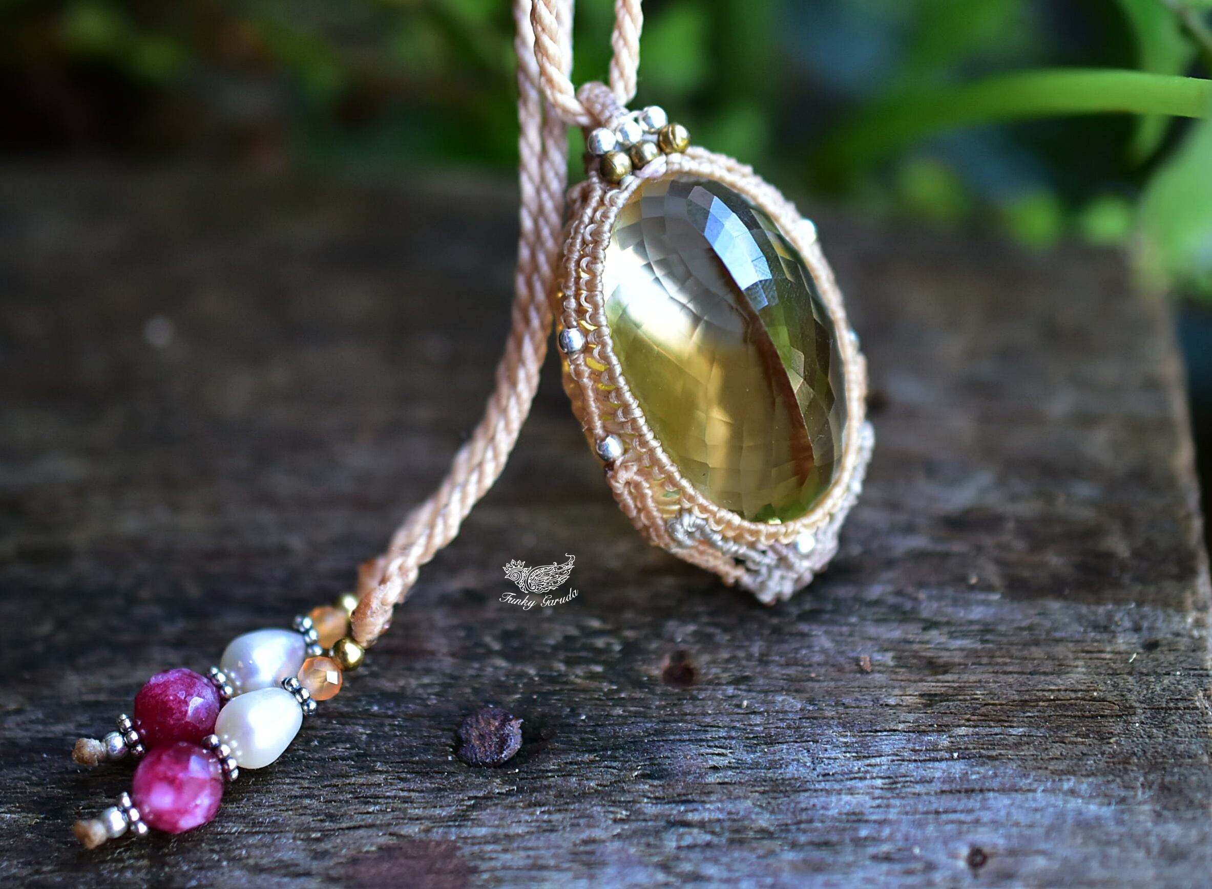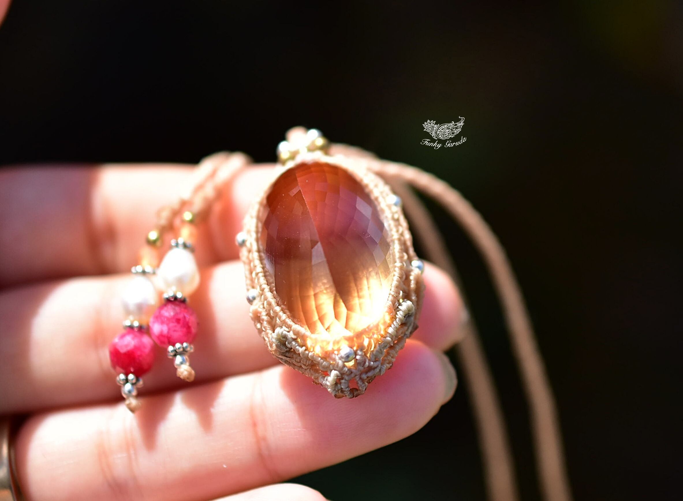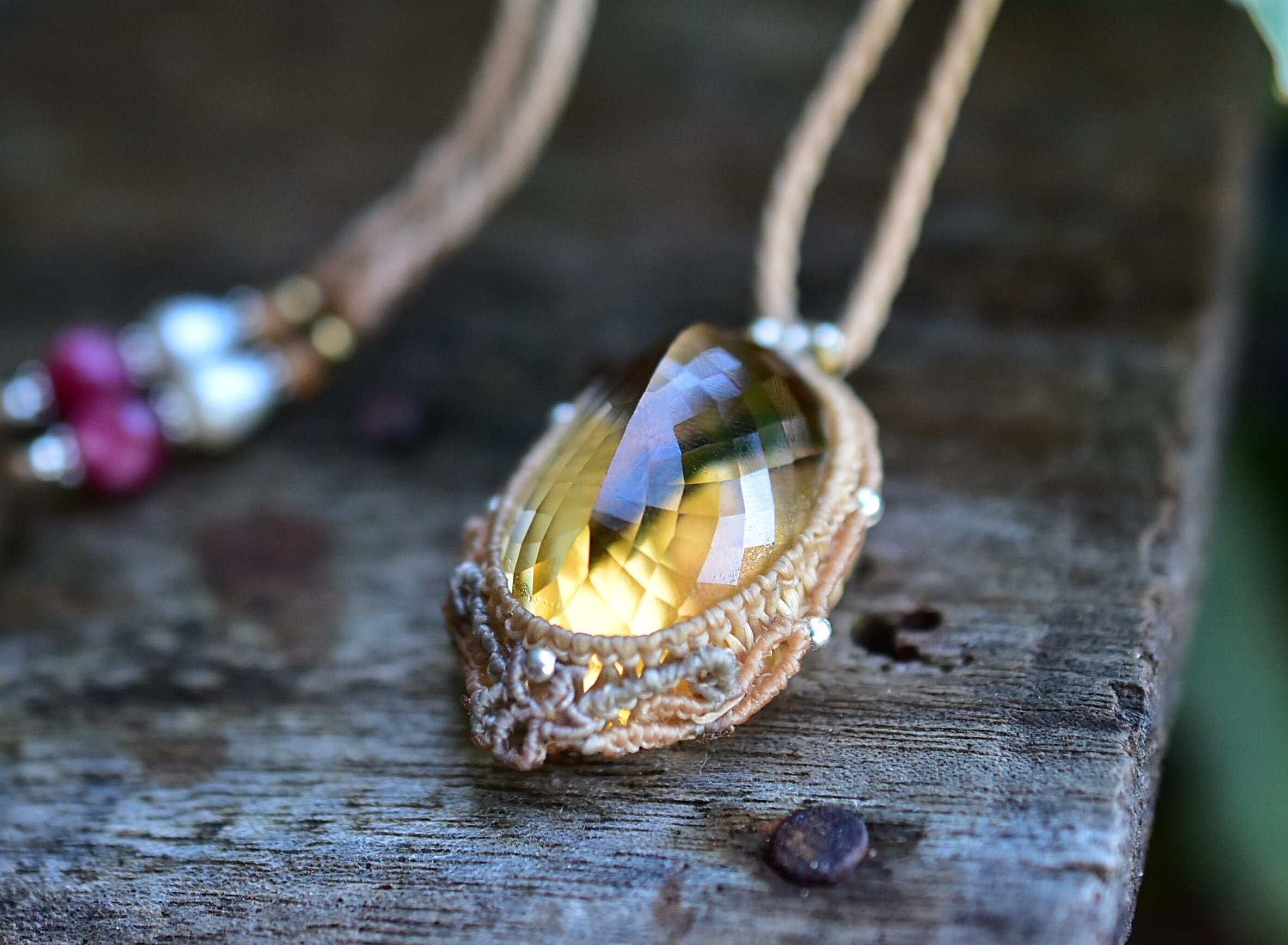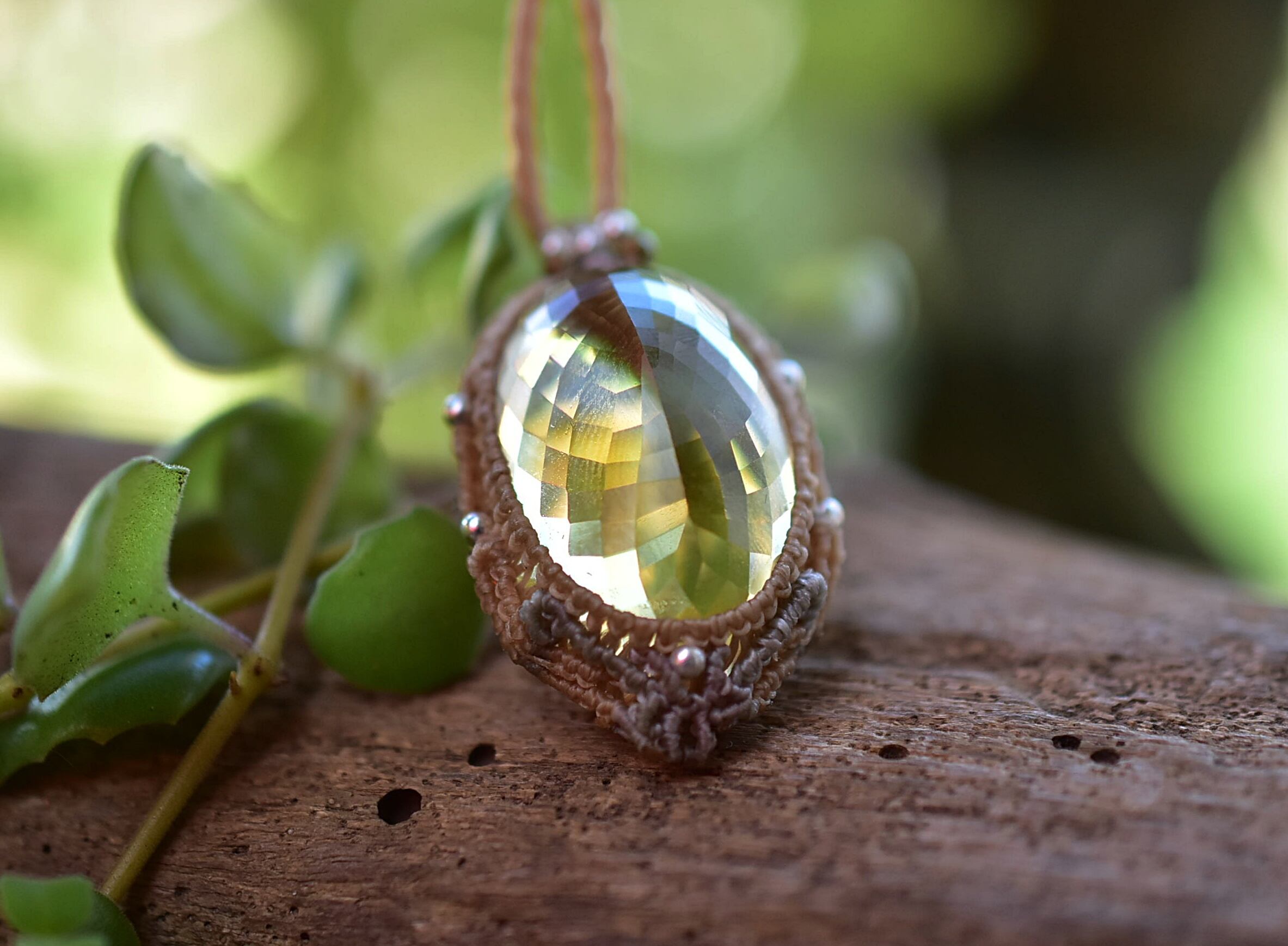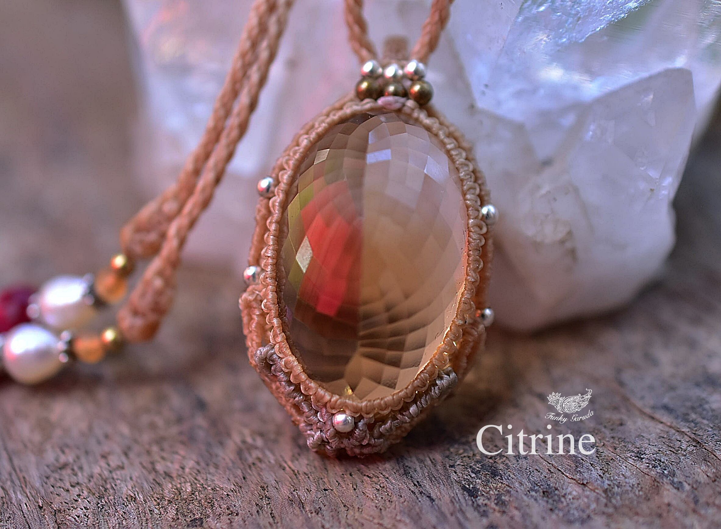 61ct金貨の石★ファセットカット★シトリン マクラメペンダント624