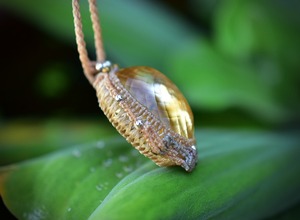 マクラメ編み装飾を施し、ペンダントに仕上げました。