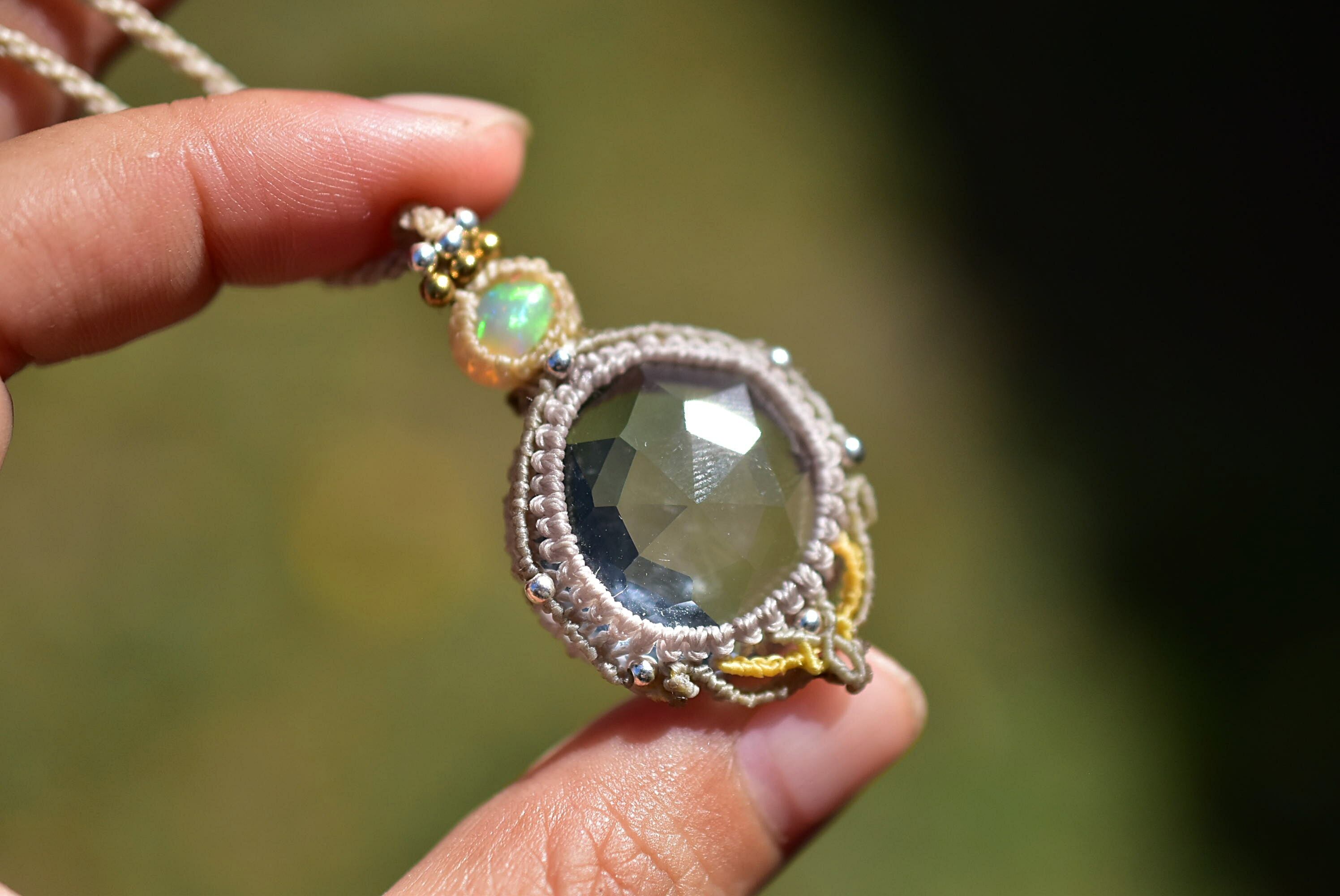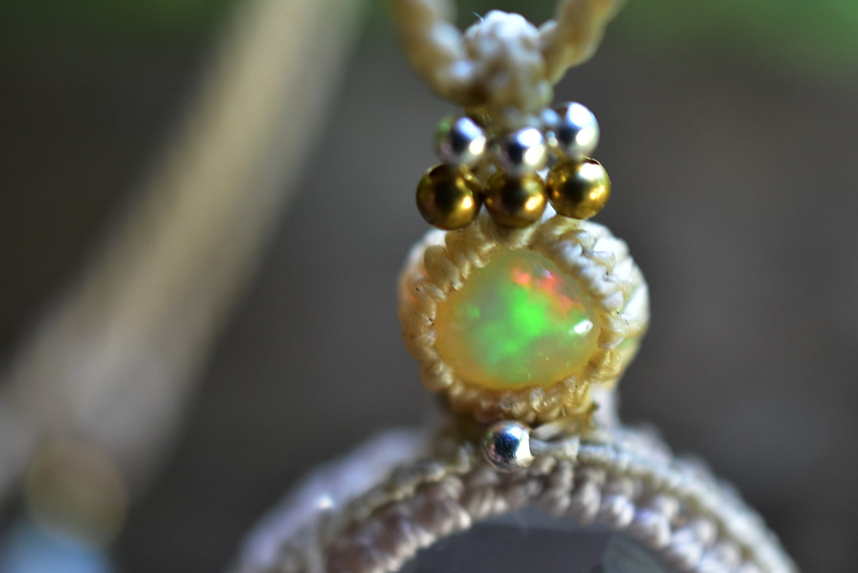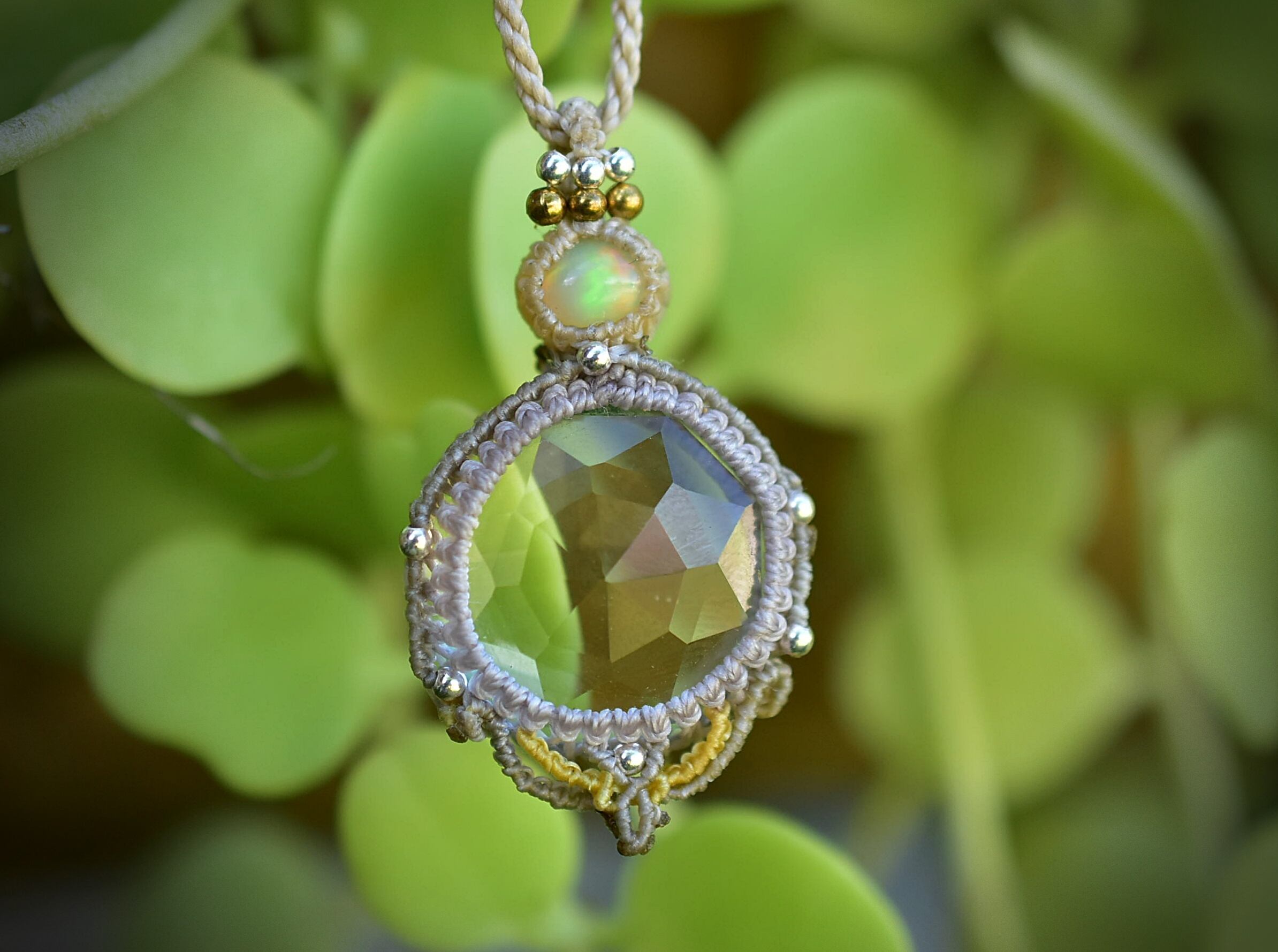 虹と宝石★エチオピアオパール クリスタル マクラメペンダント626