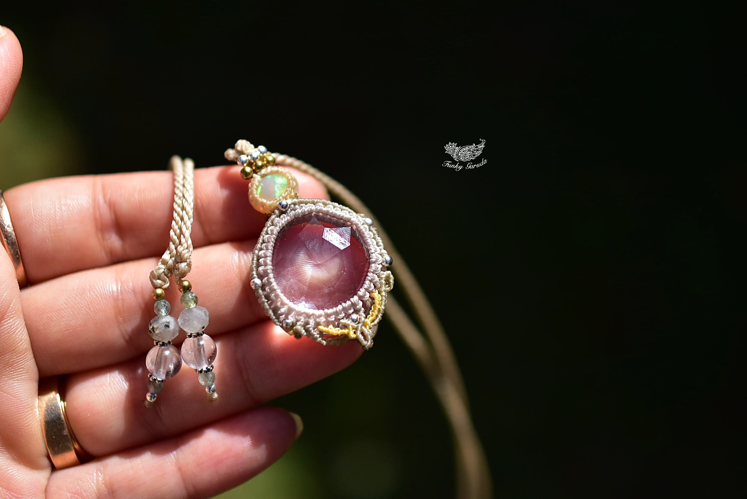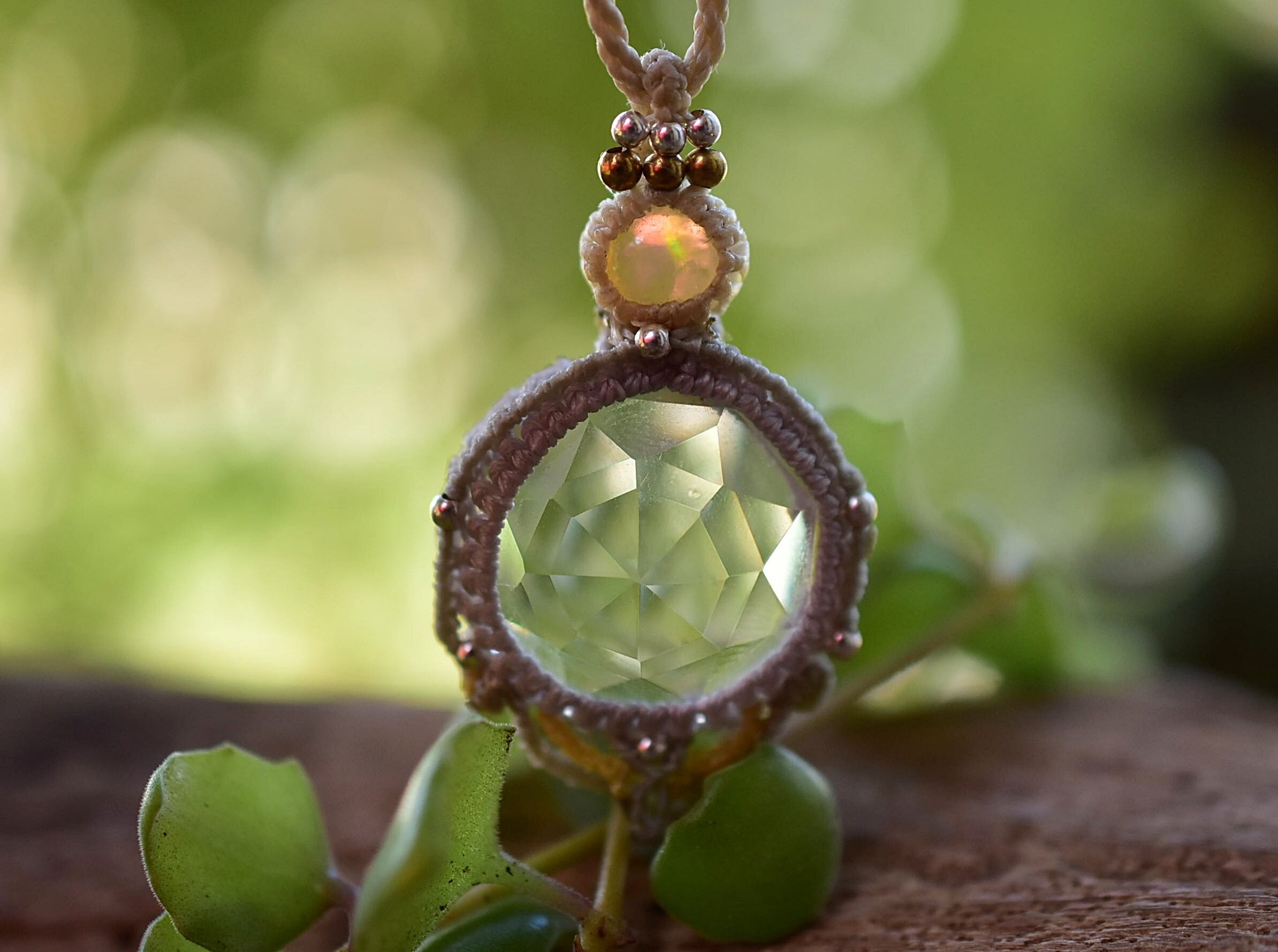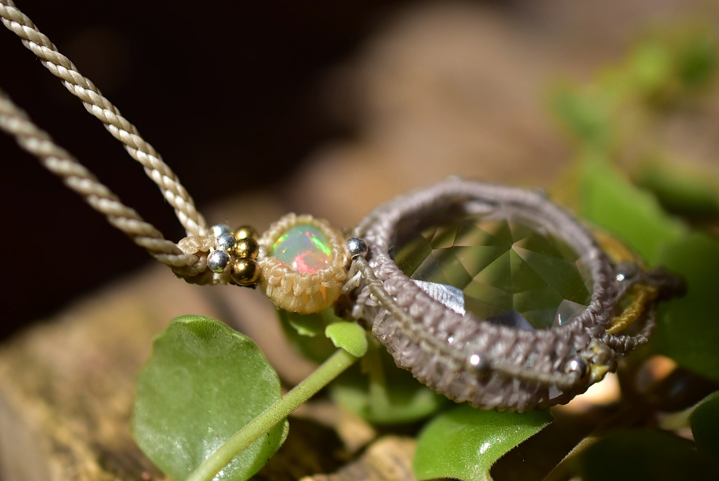 虹と宝石★エチオピアオパール クリスタル マクラメペンダント626