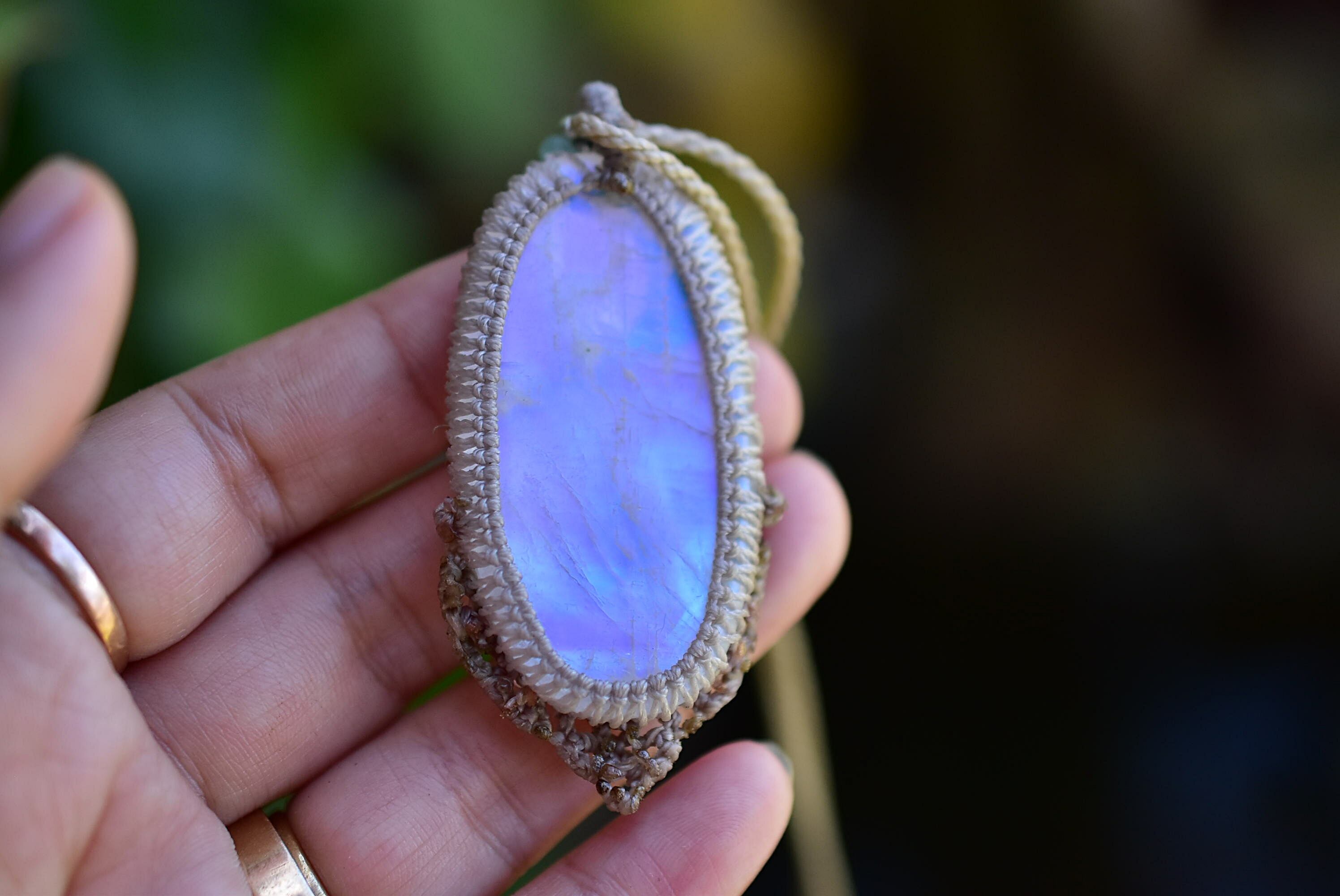 大粒★虹色★レインボームーンストーン マクラメペンダント627