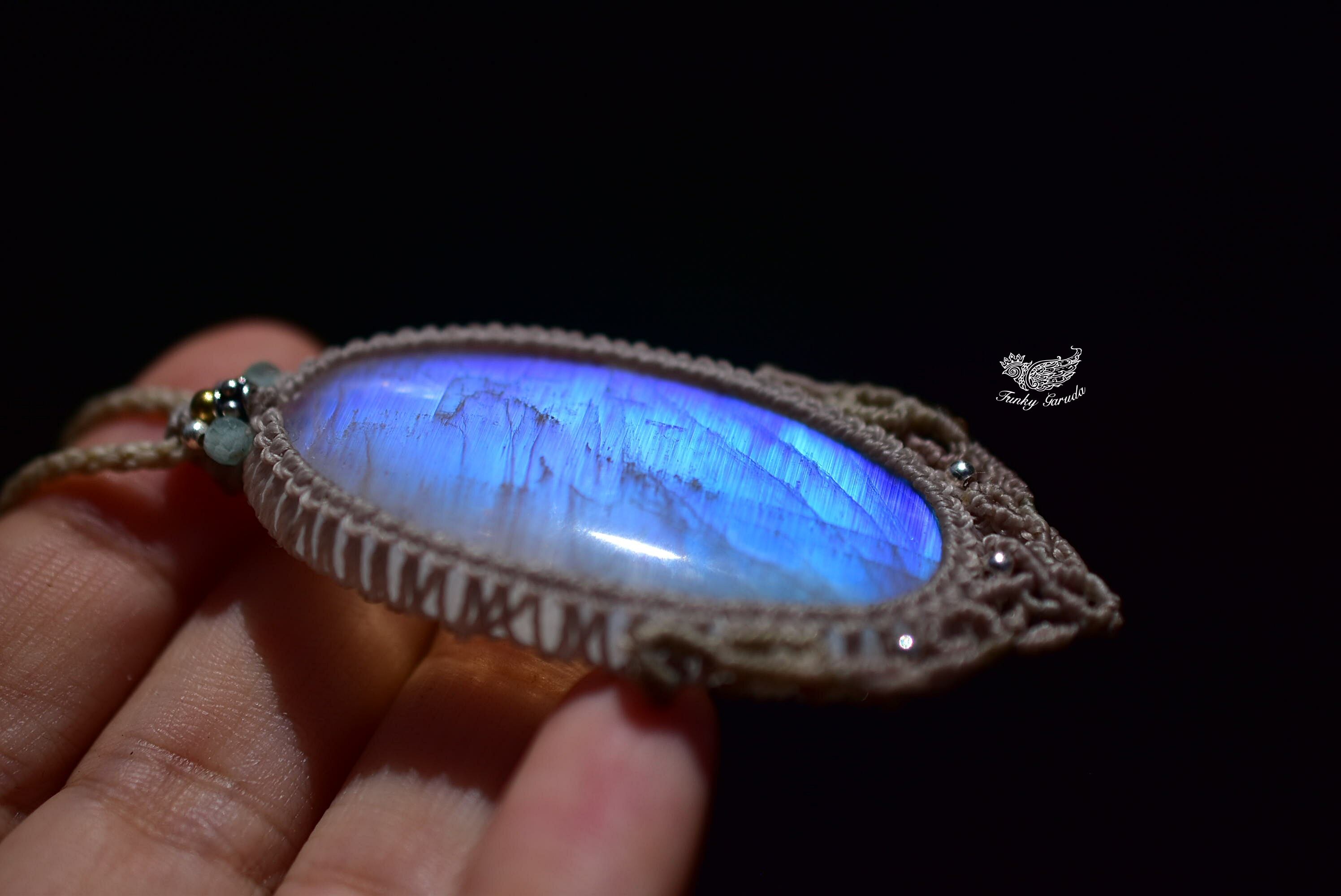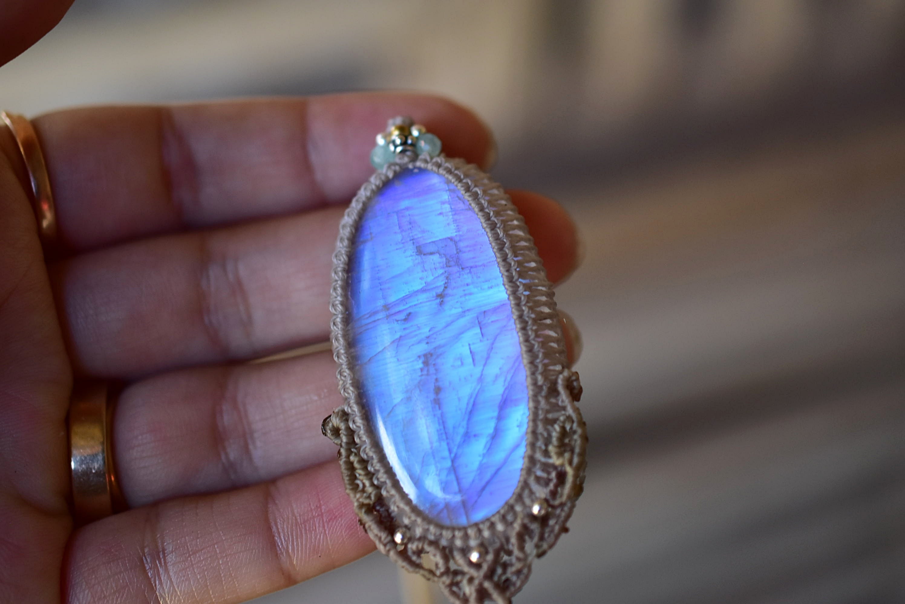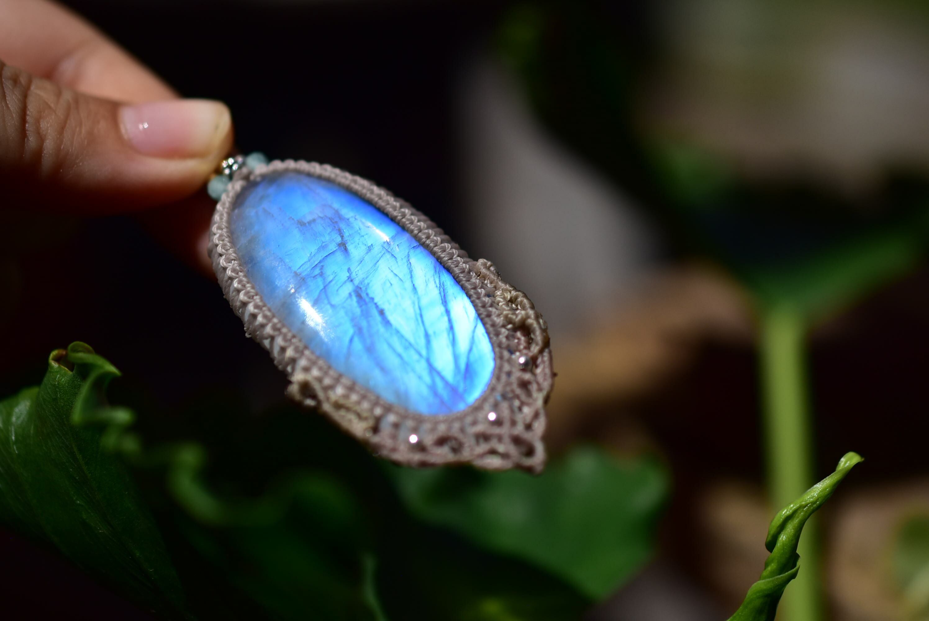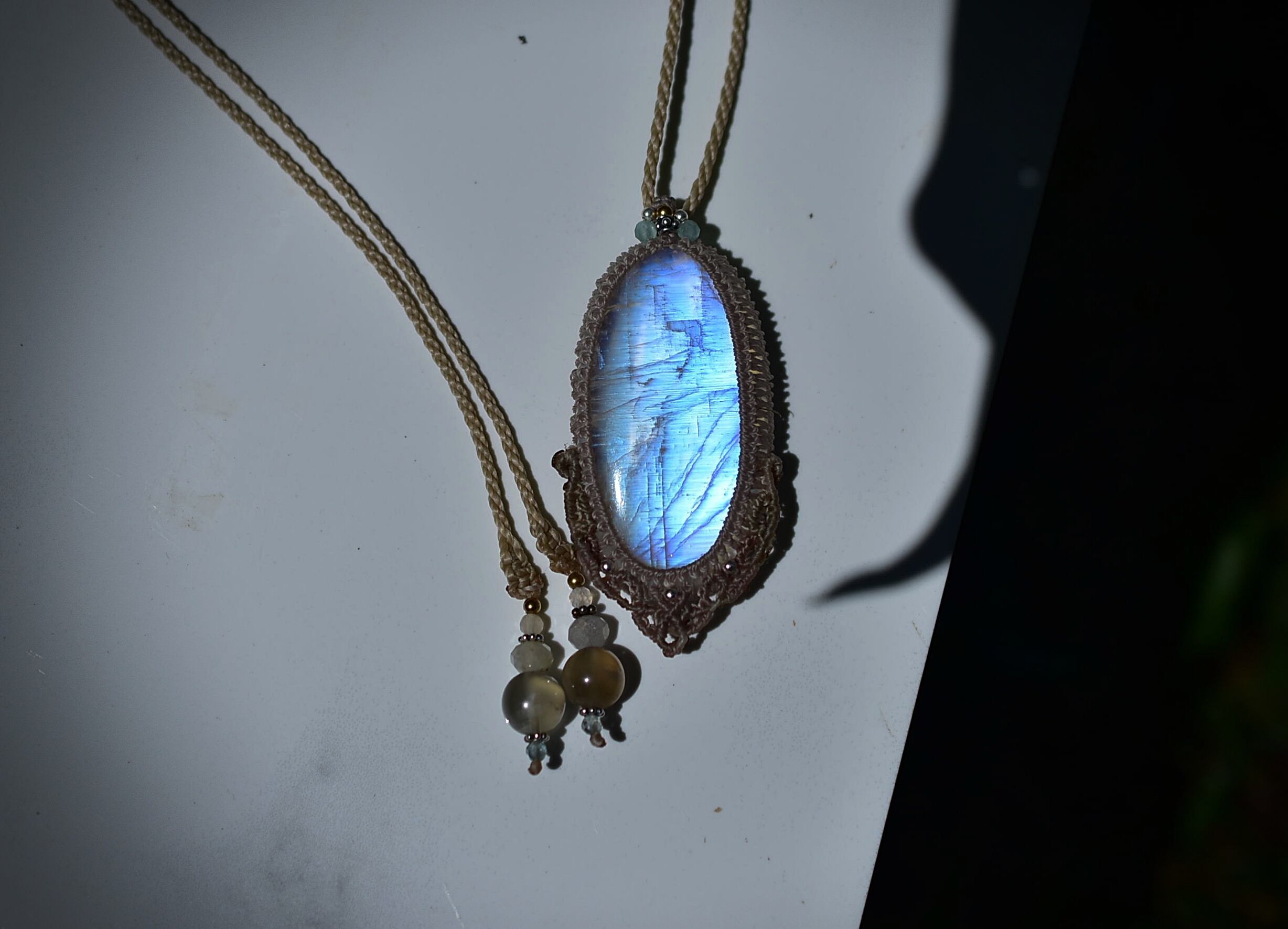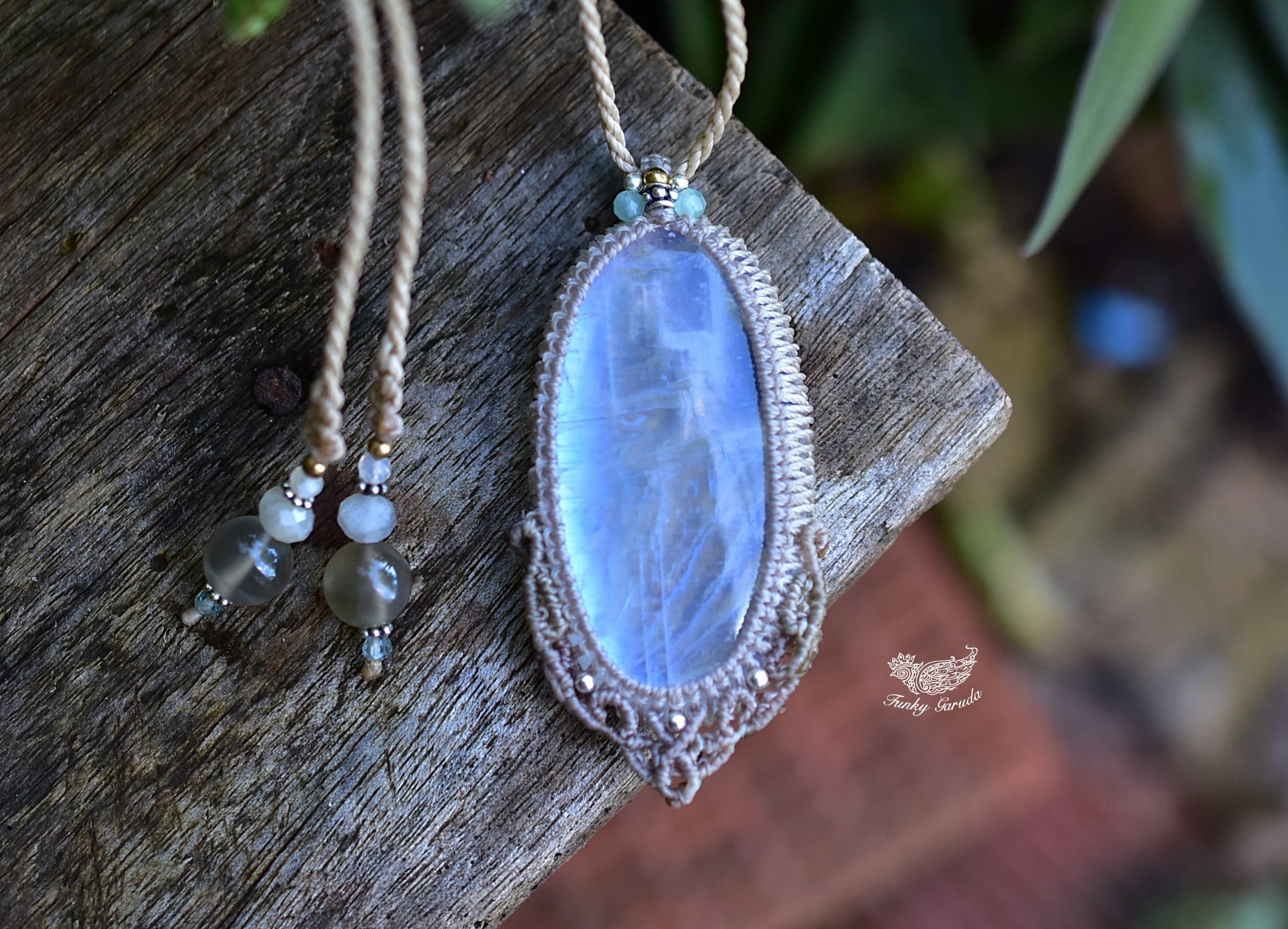 マクラメ装飾がこのムーンストーンを引き立てられるように