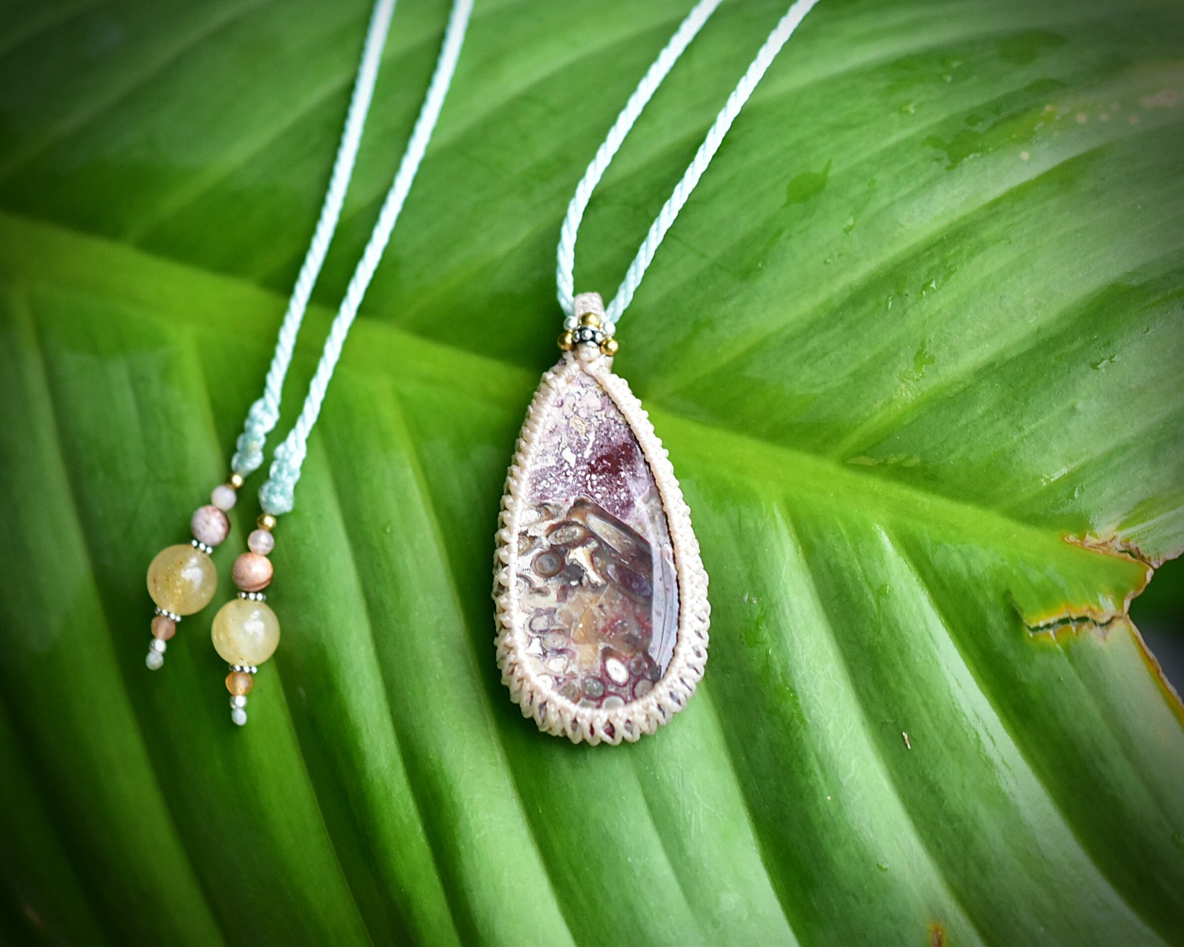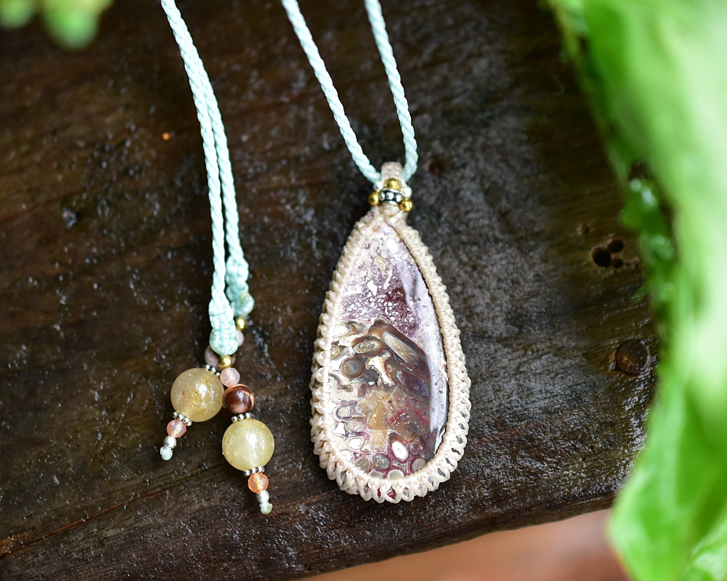 地球の芸術模様★オーシャンジャスパー マクラメペンダント629