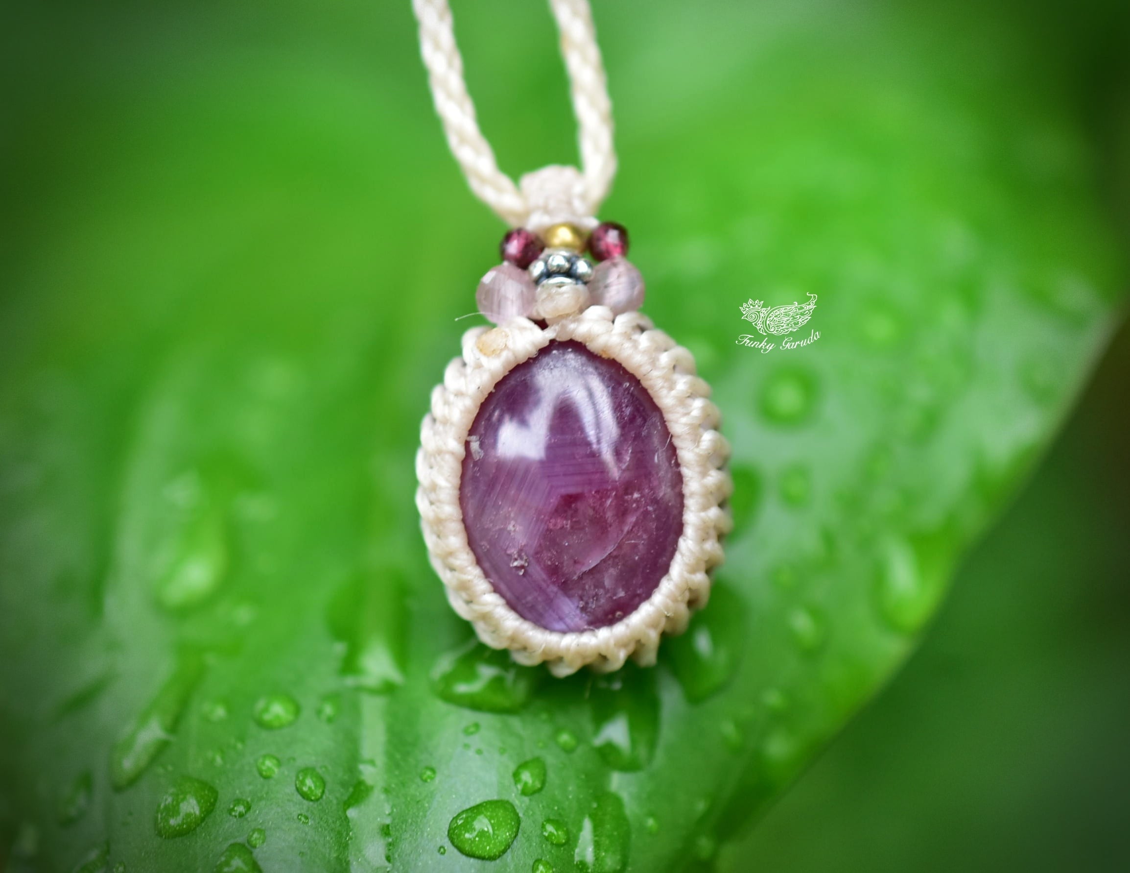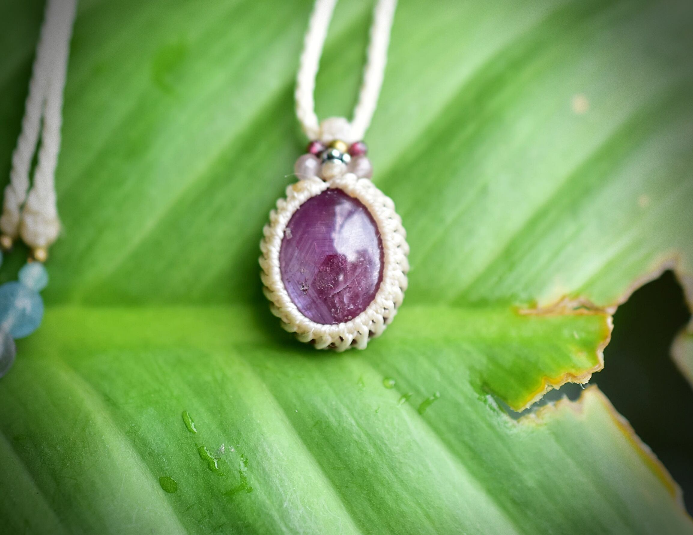 ◆このたびはナチュラルホワイト色の蝋引き糸を使用しマクラメ編み装飾を施しました。