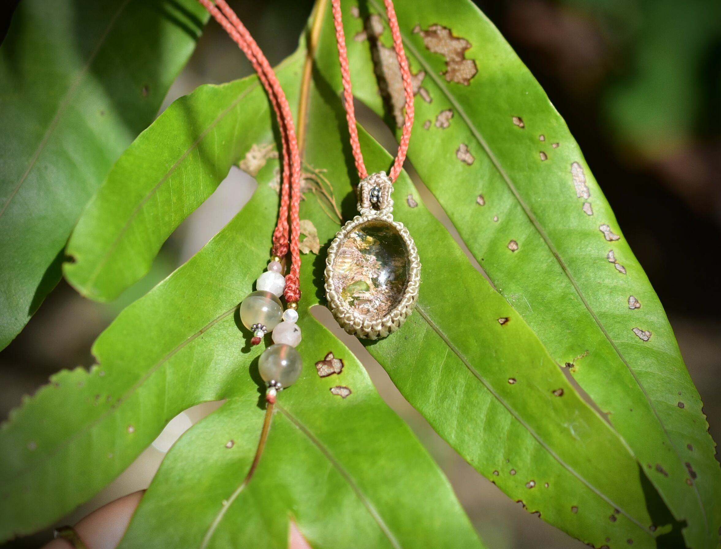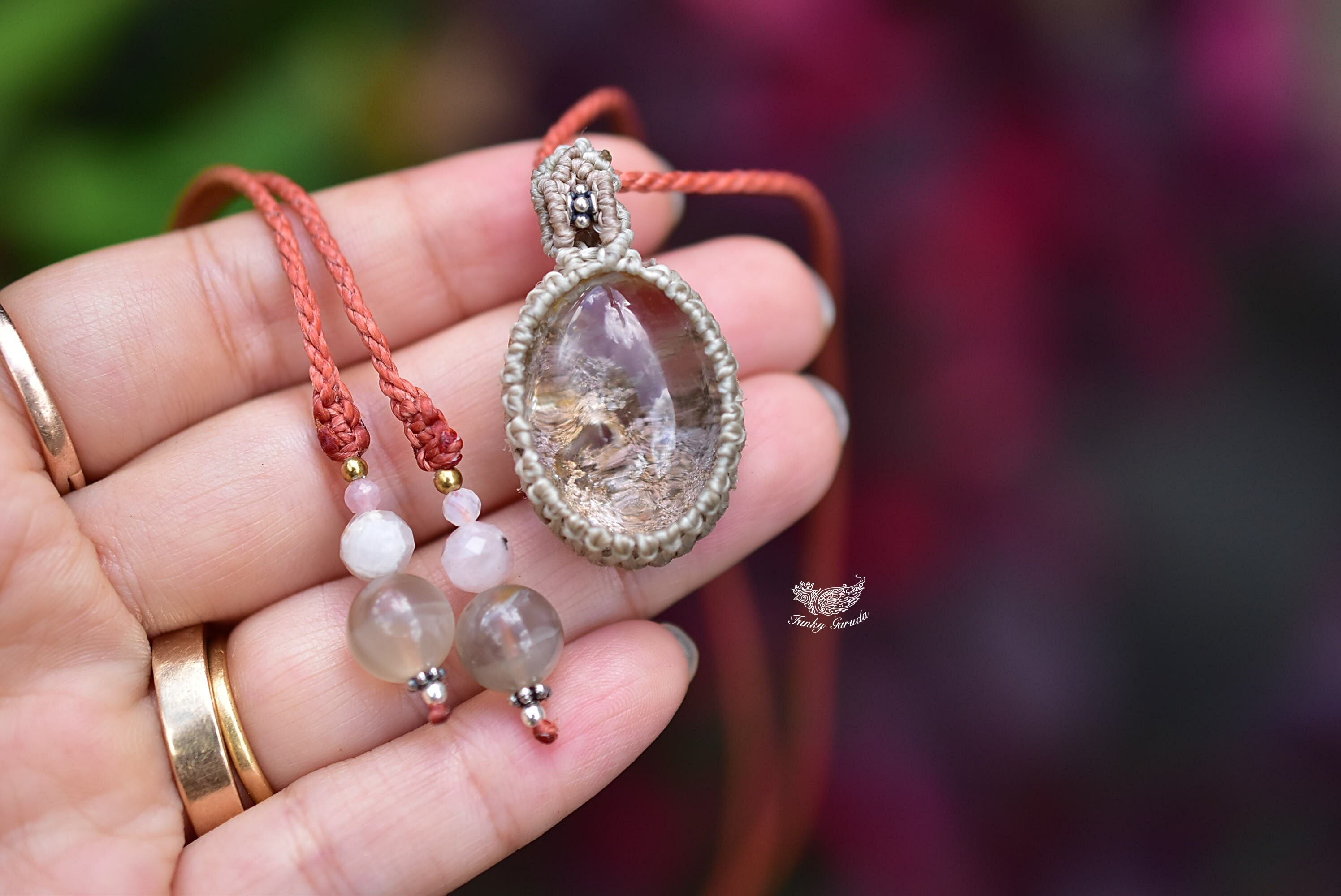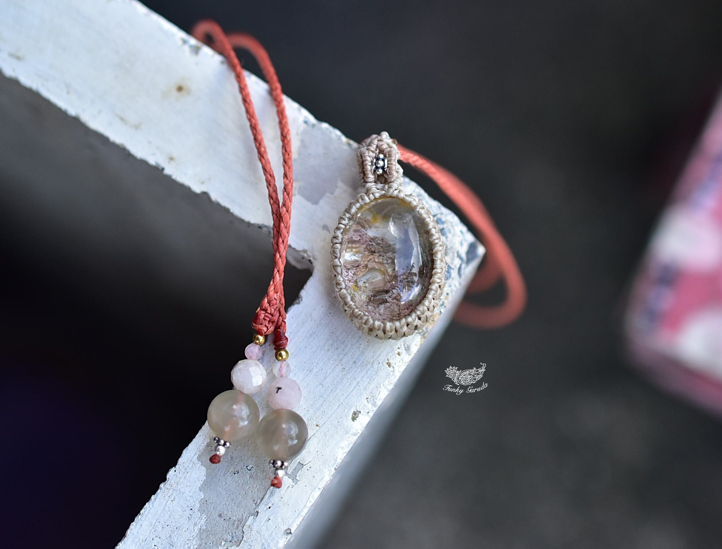 立体ピンク★ガーデンクォーツ マクラメペンダント642