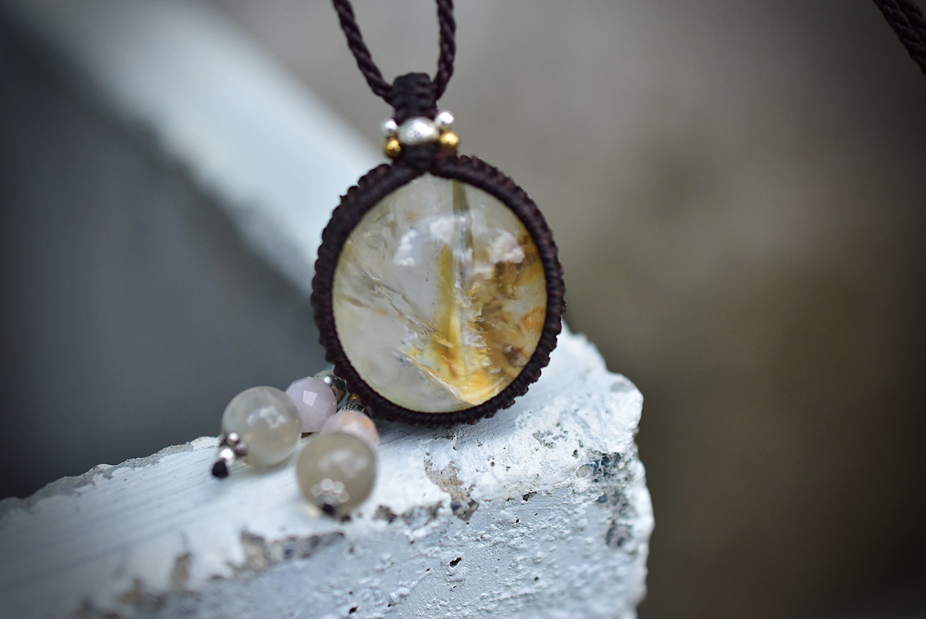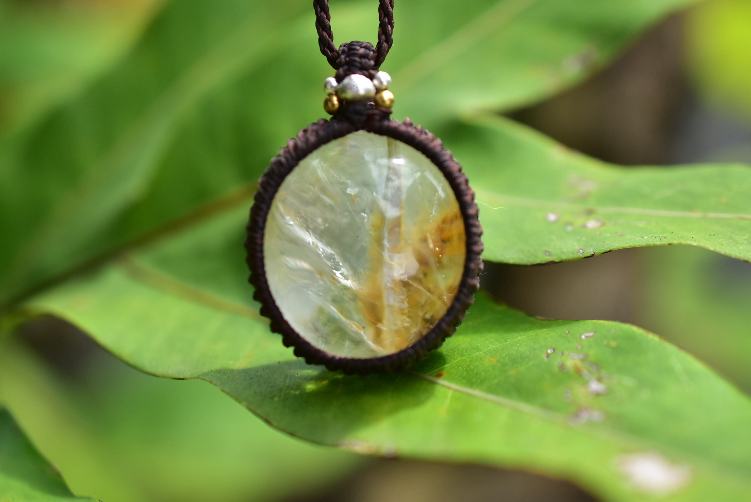 白い牙★ガーデンクォーツ マクラメペンダント644