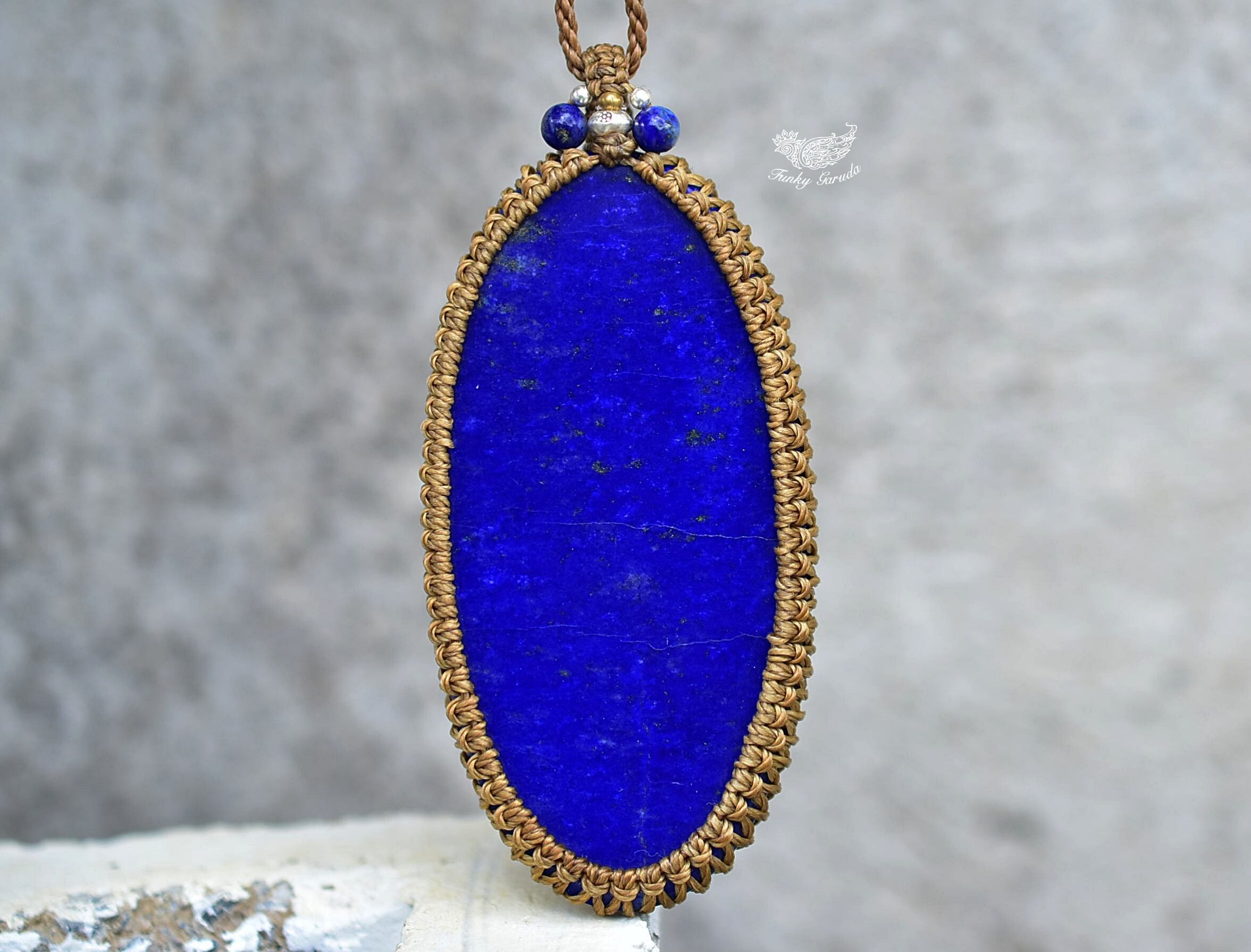 特大★ラピスラズリ マクラメペンダントネックレス647