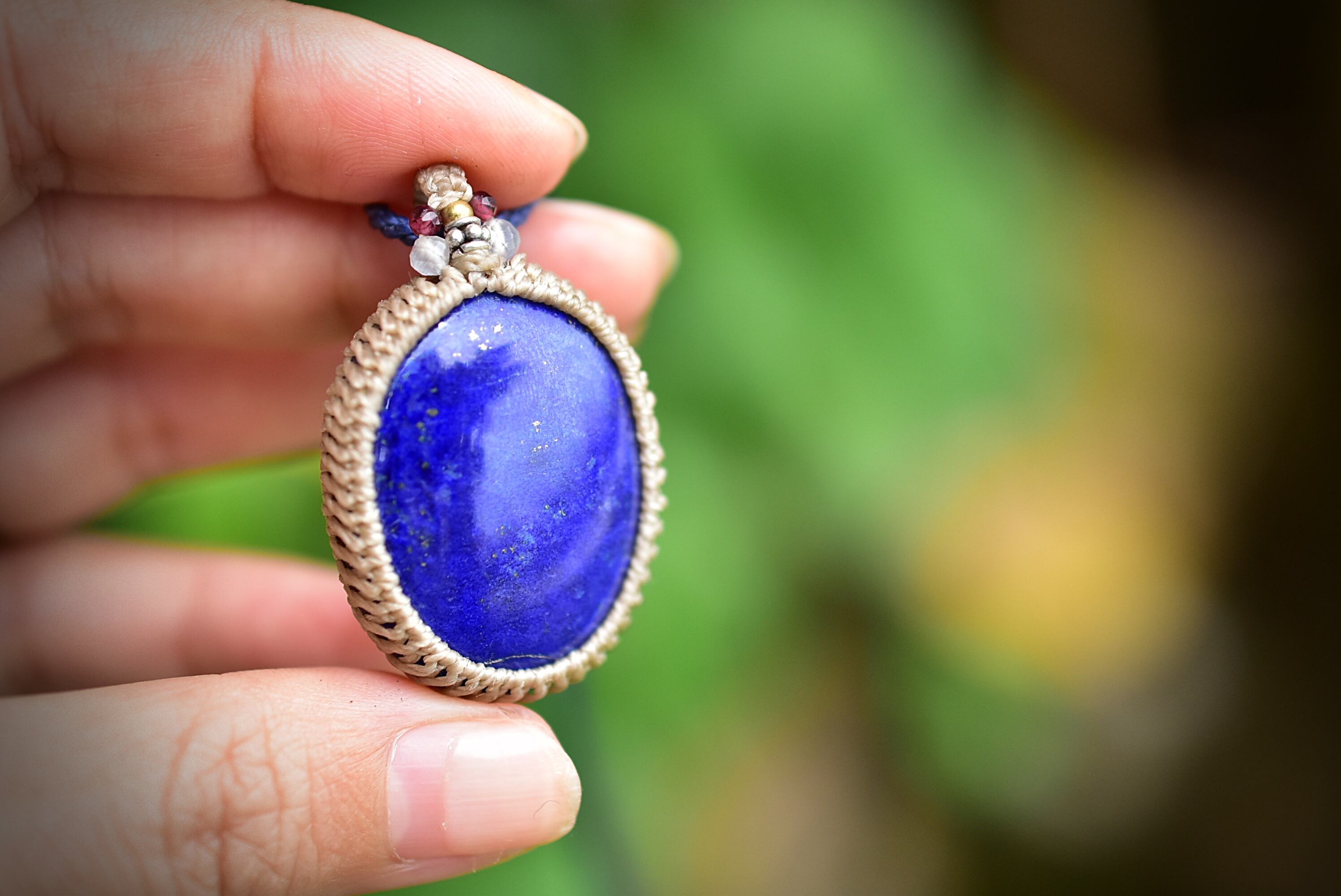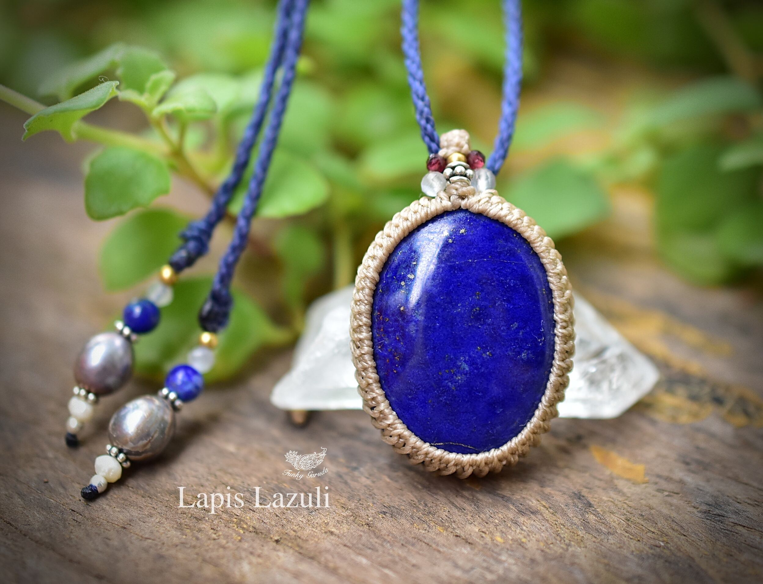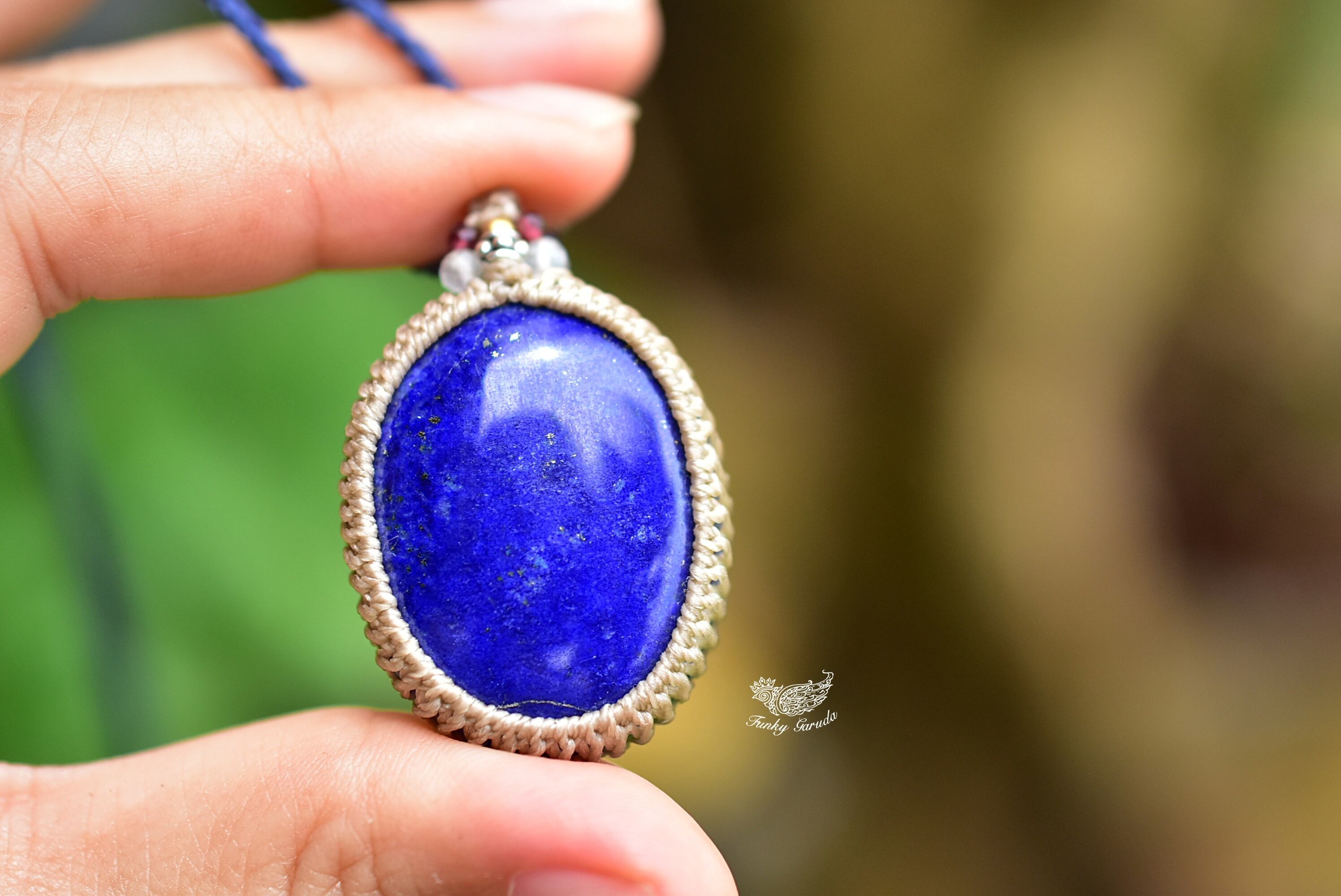 蒼い証★ラピスラズリ マクラメペンダントネックレス651