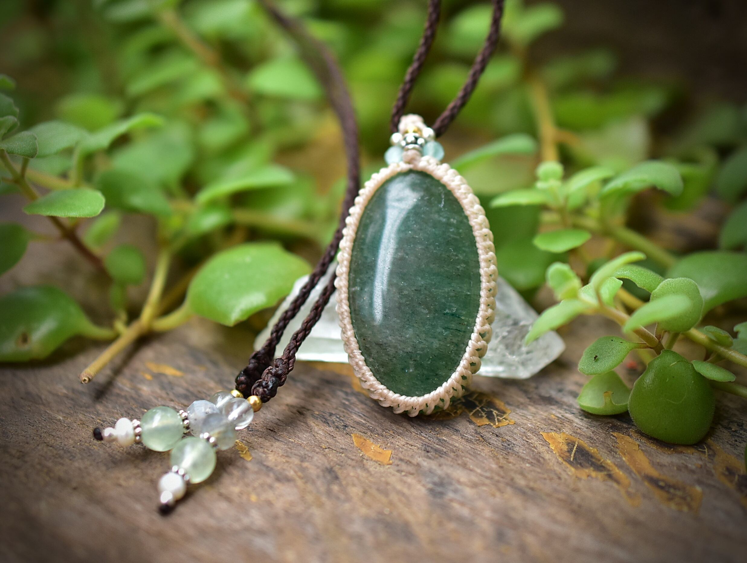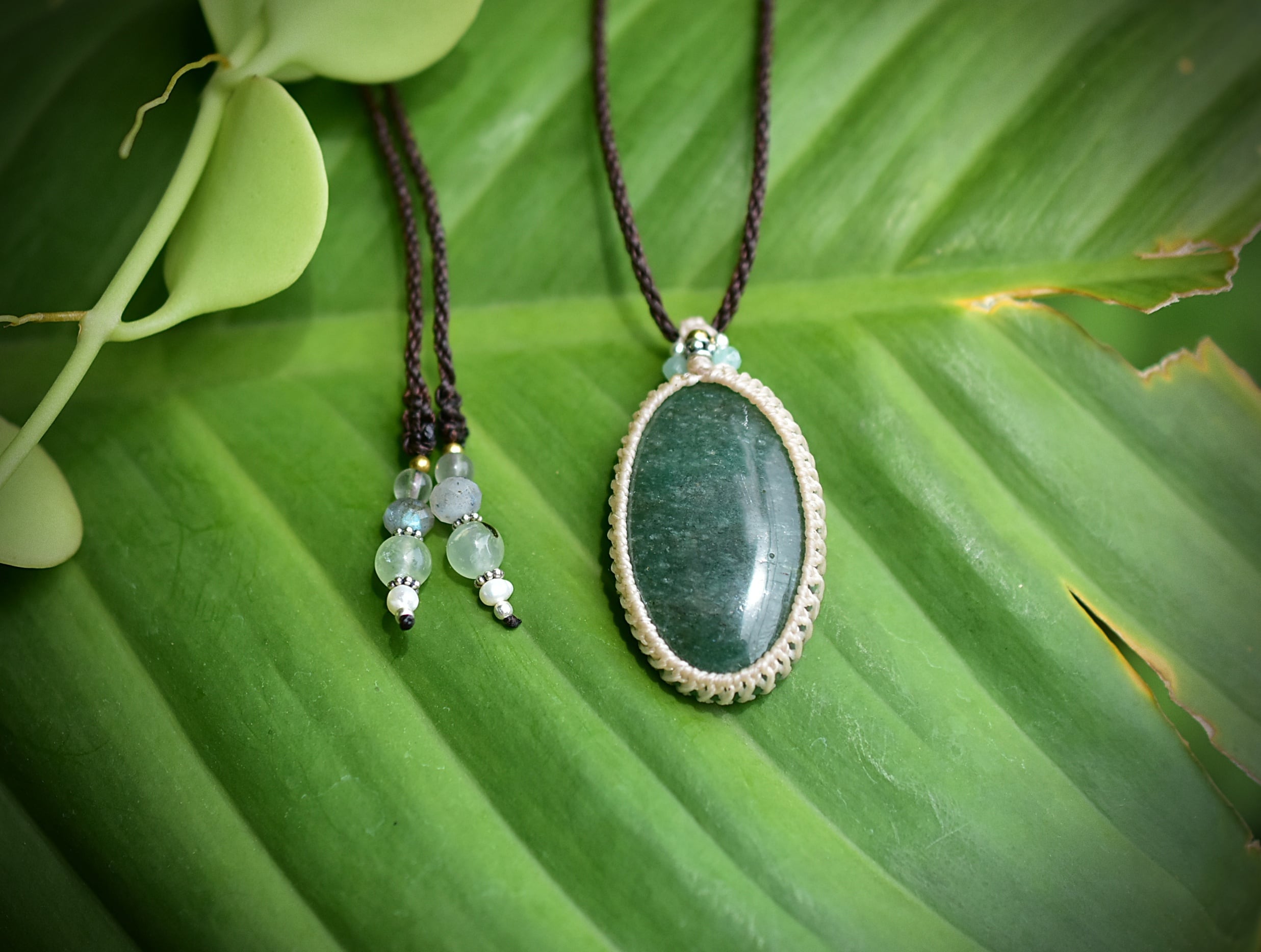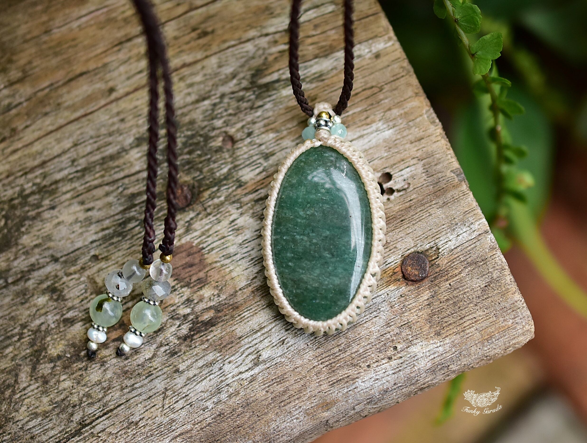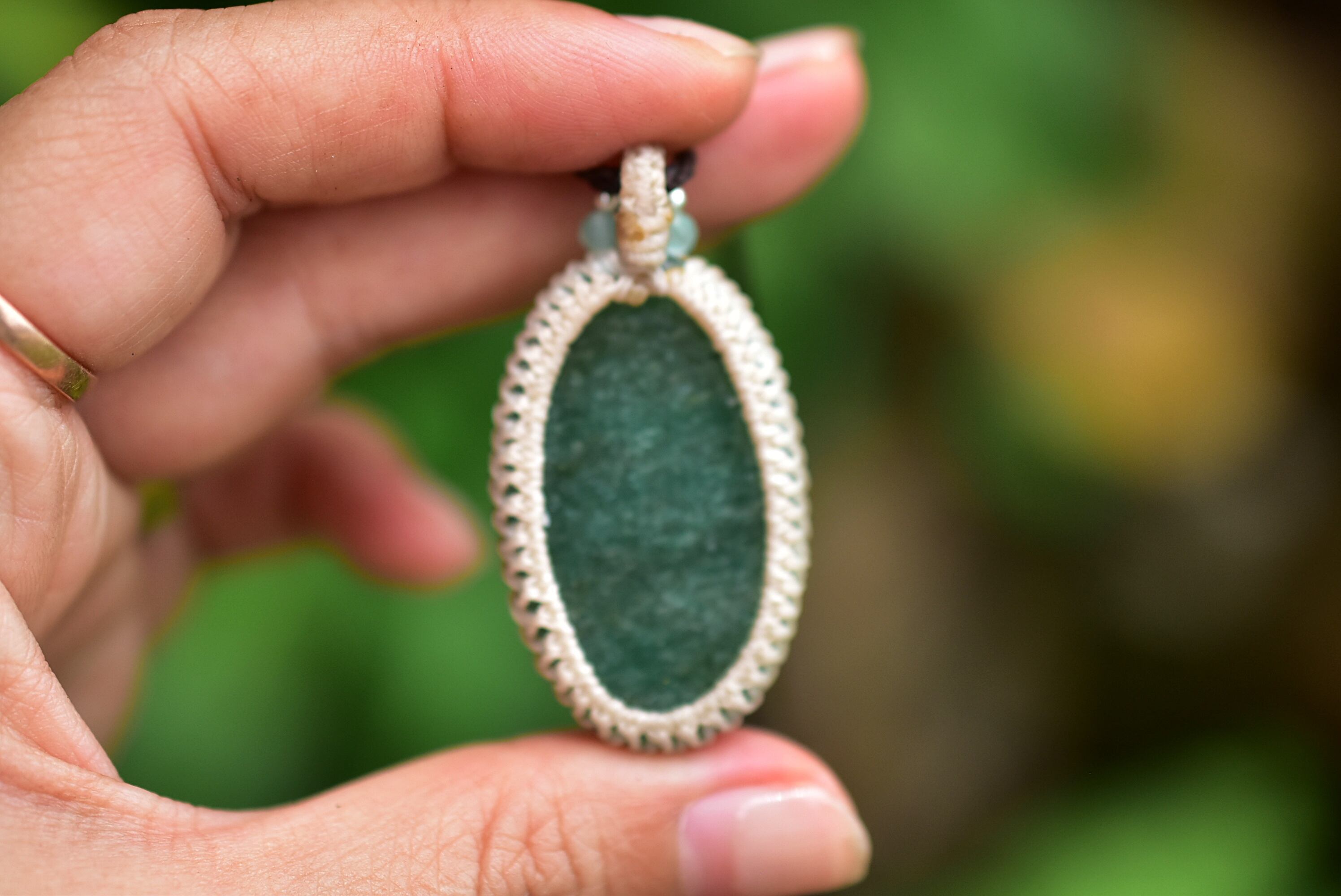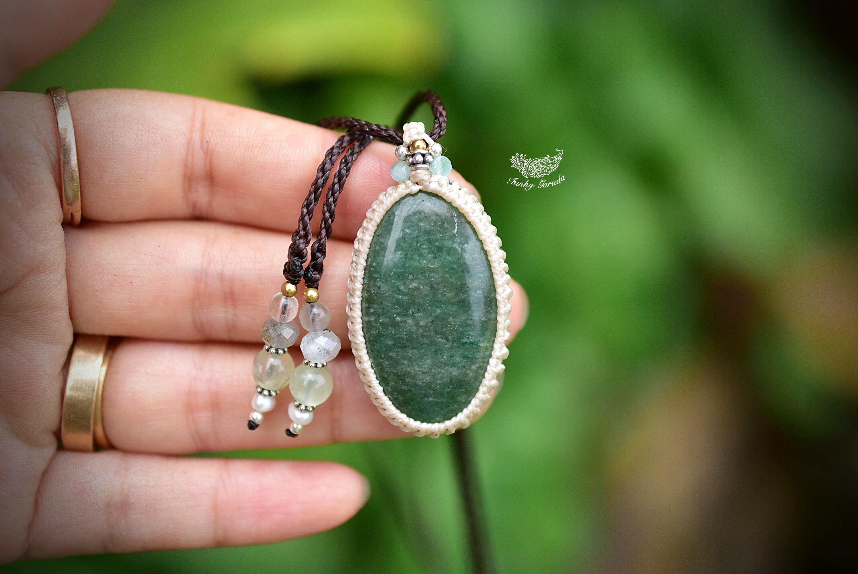 緑茶葉★グリーンアゲート マクラメペンダント653