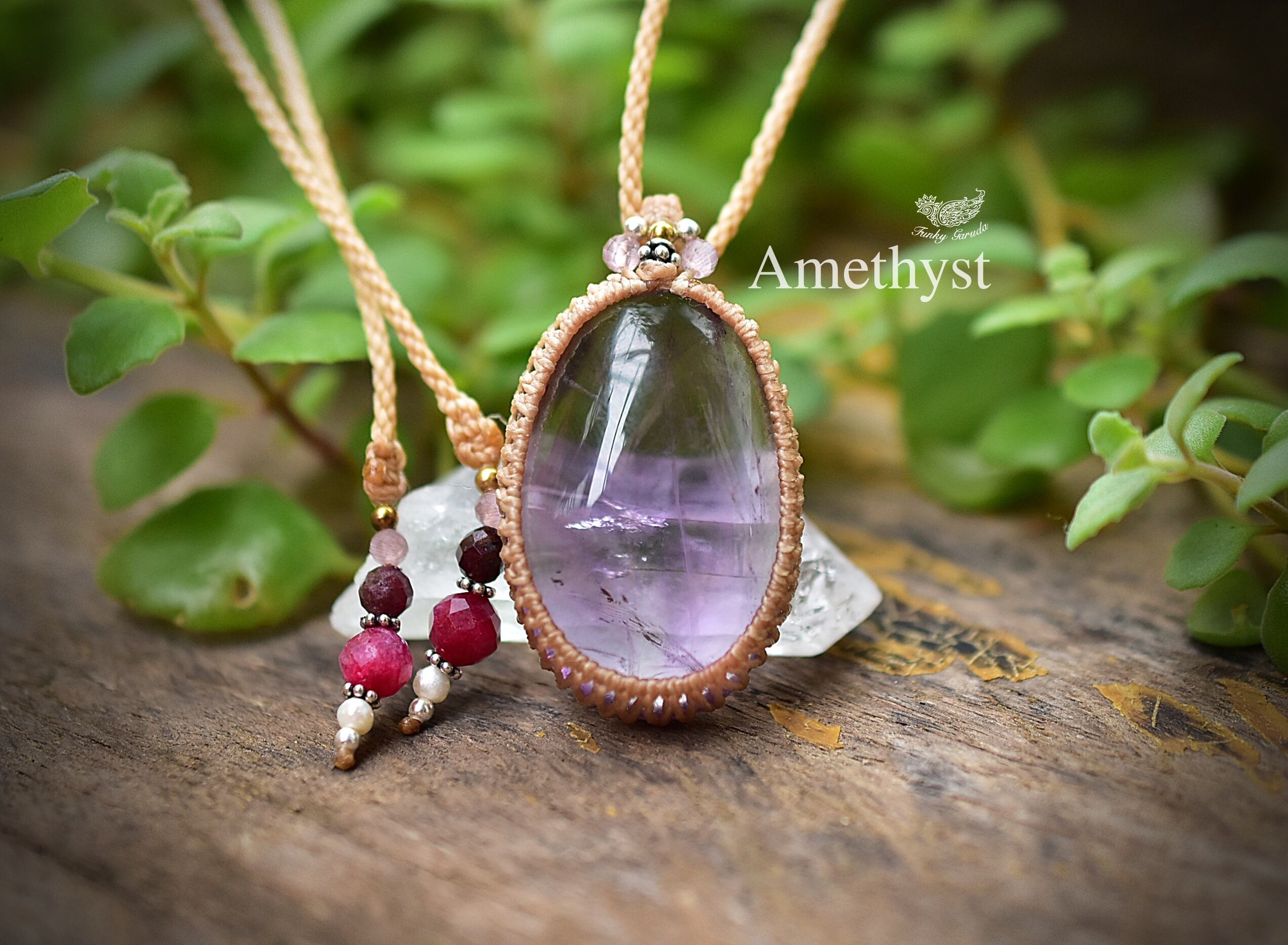 ほんのりファントム★アメジスト マクラメペンダント657