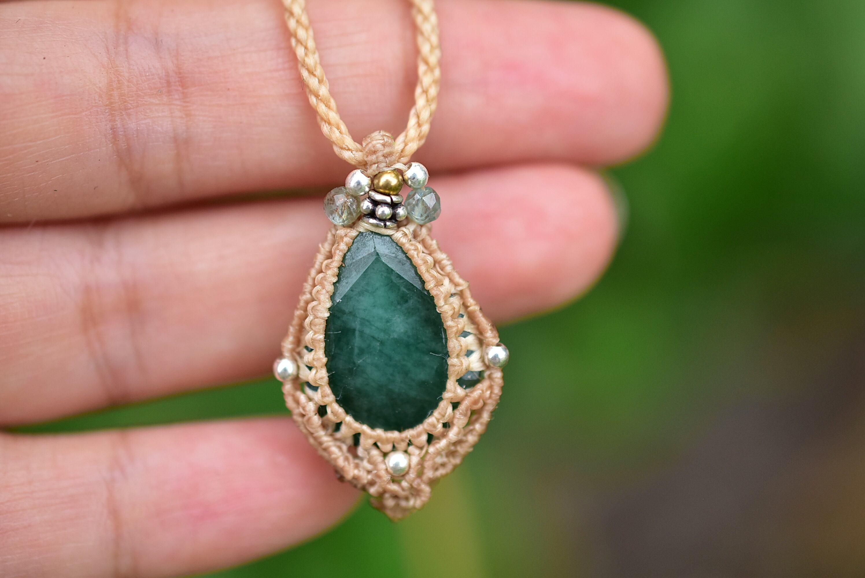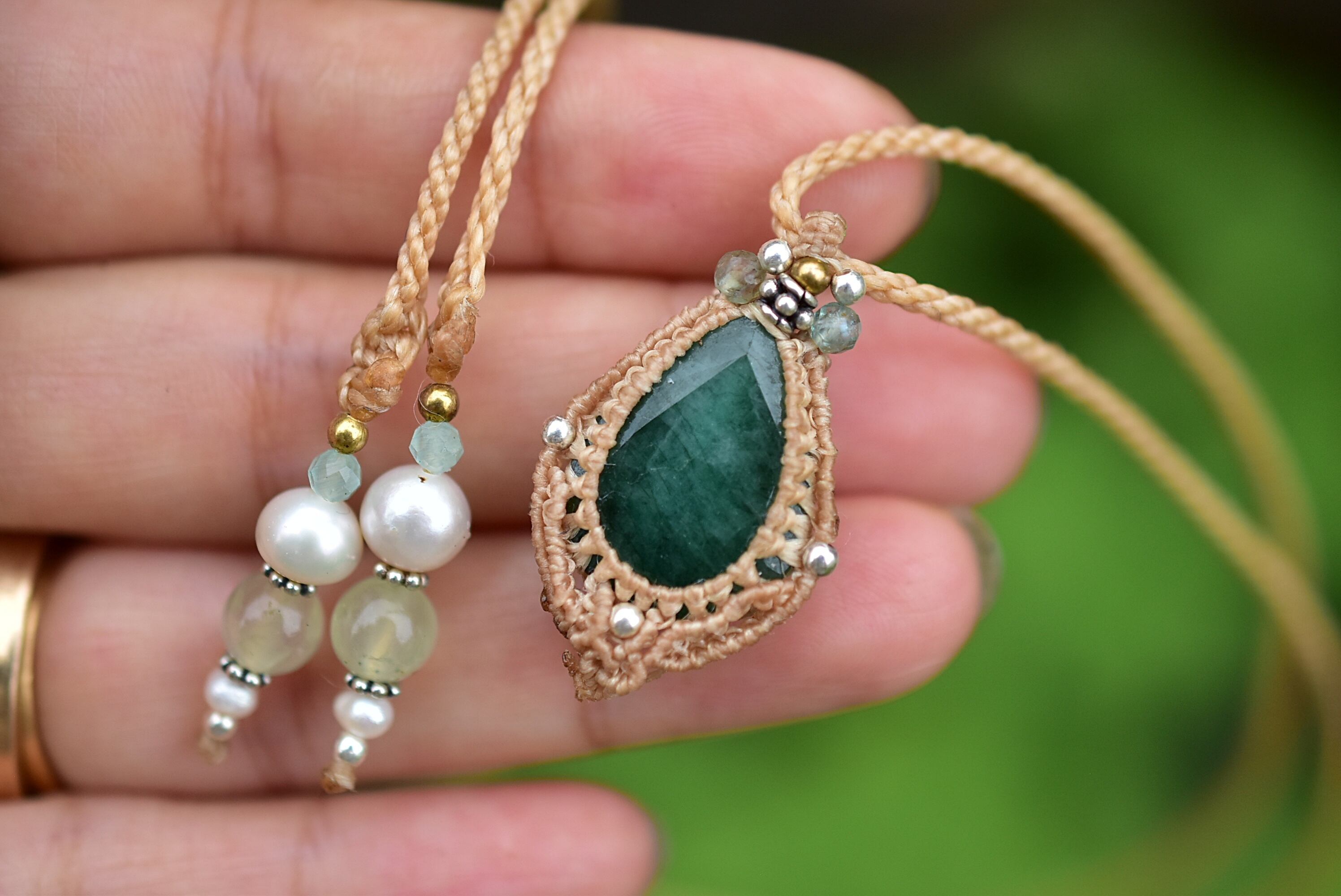 緑の大地★エメラルド★マクラメペンダント664