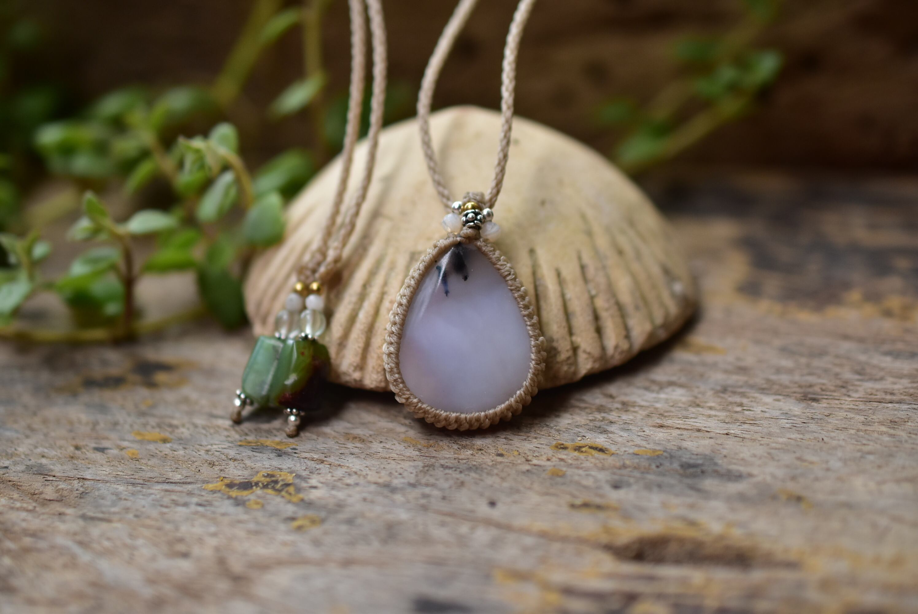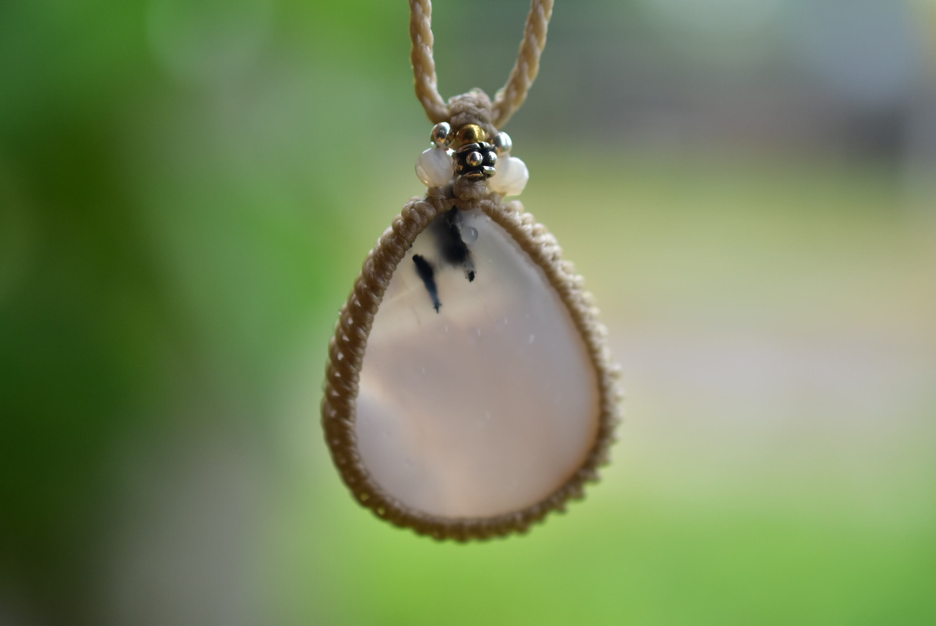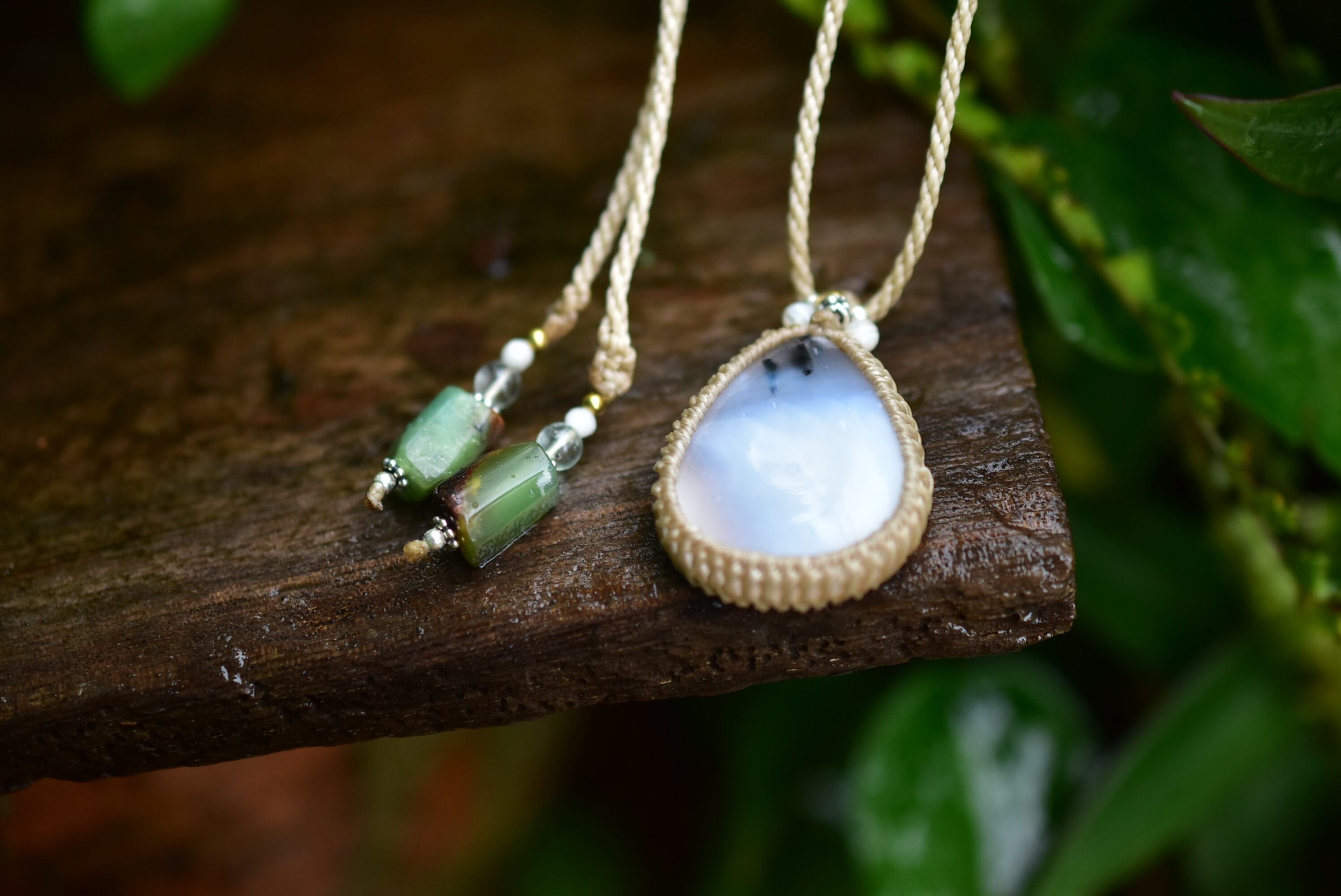 白い雪奇跡★デンドライトオパール マクラメペンダント669