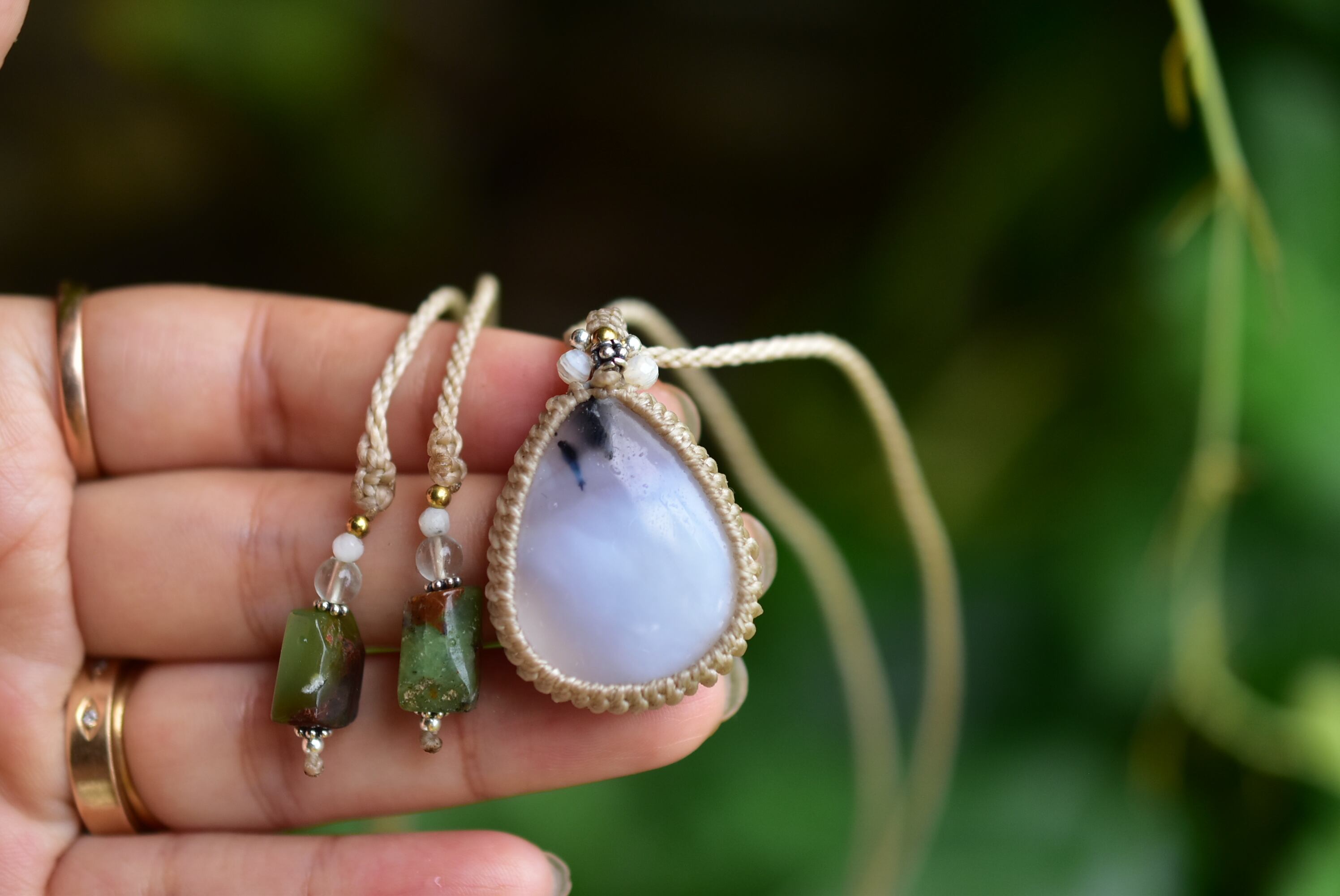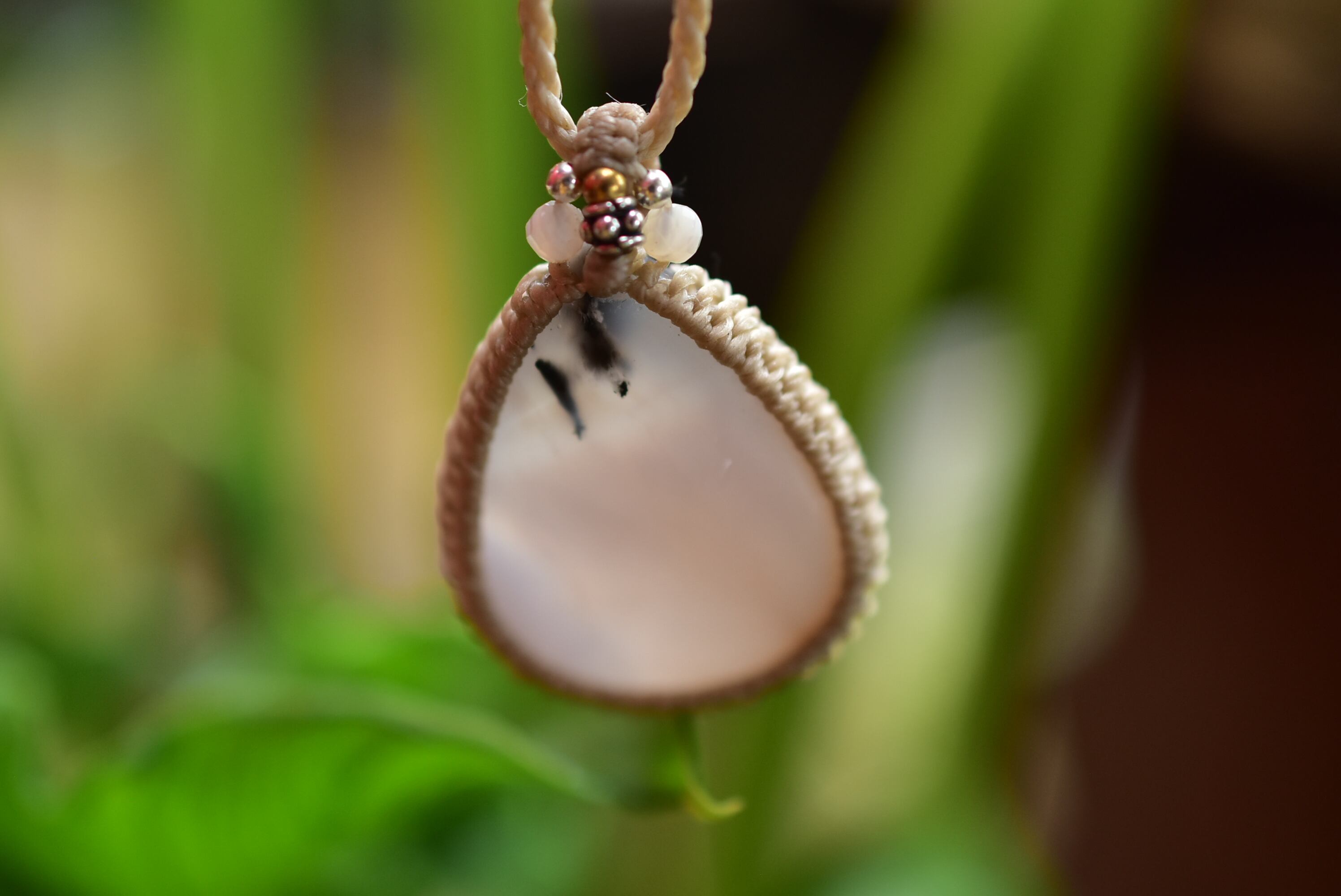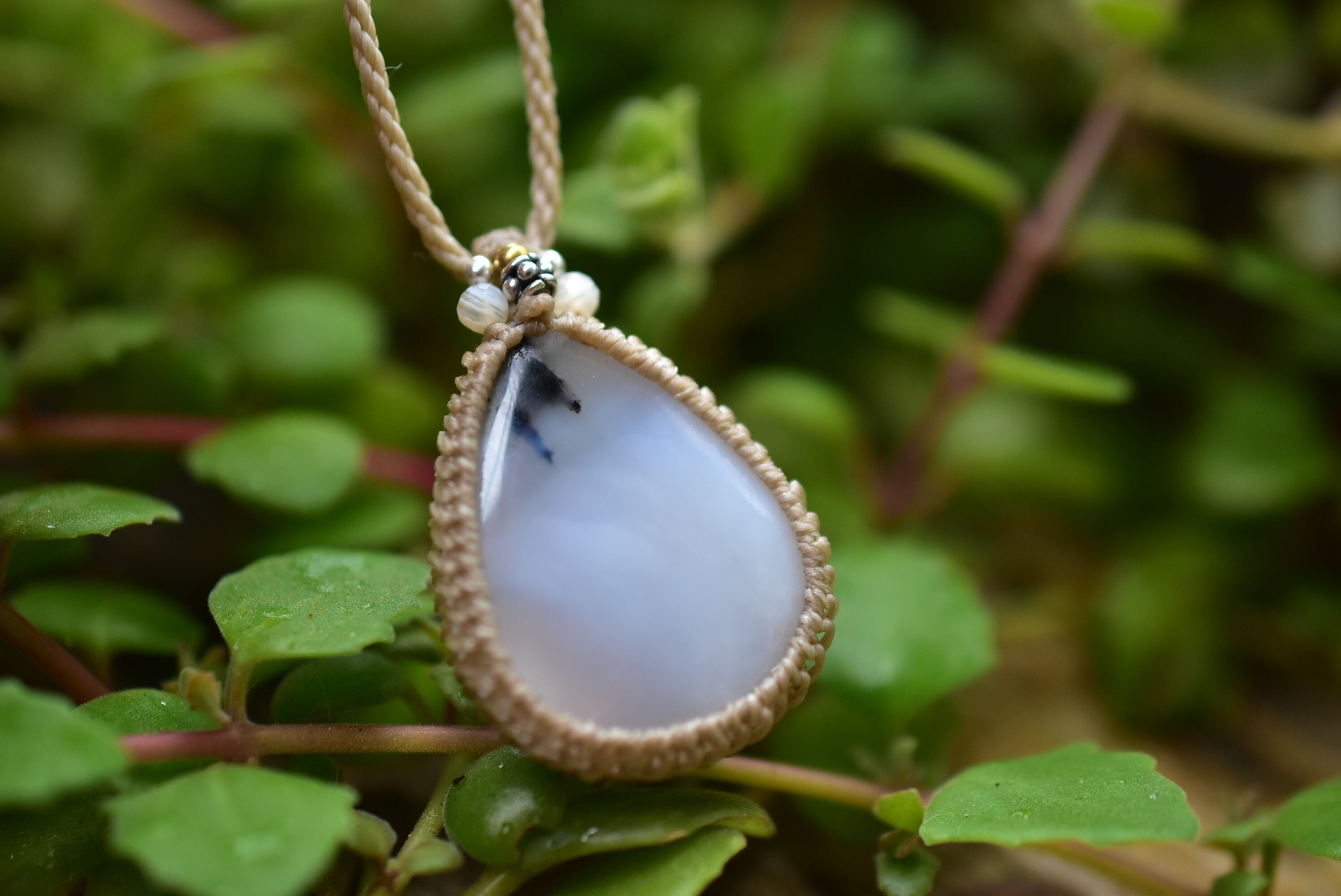 白い雪奇跡★デンドライトオパール マクラメペンダント669