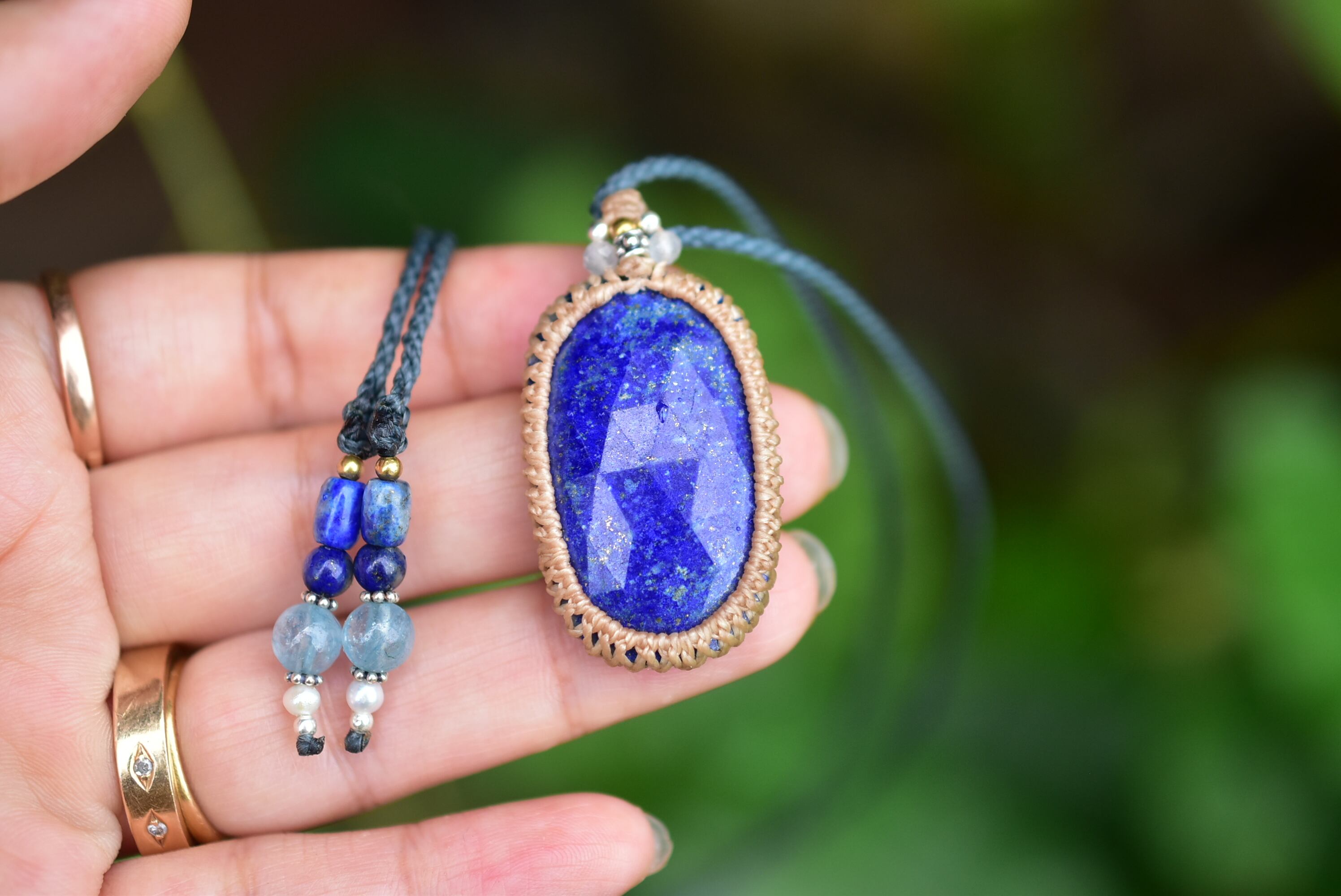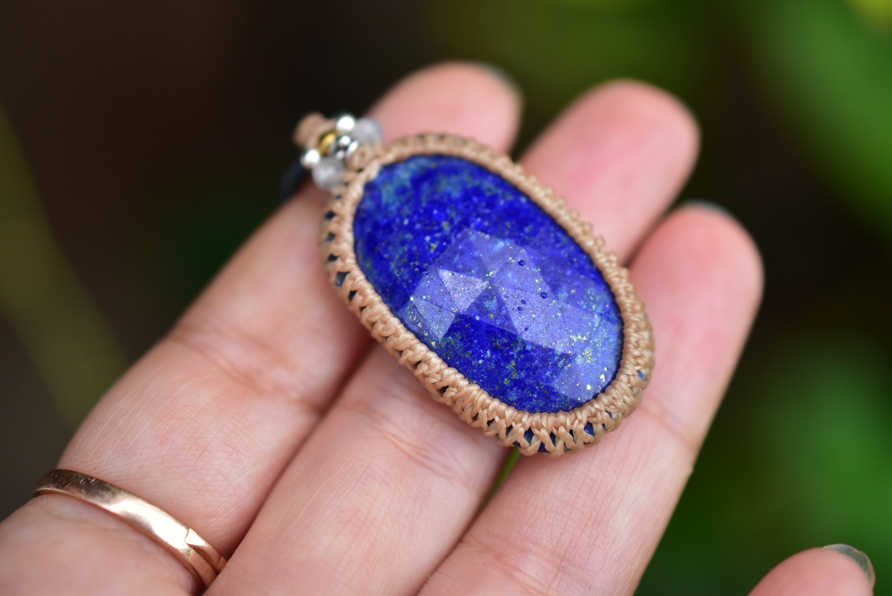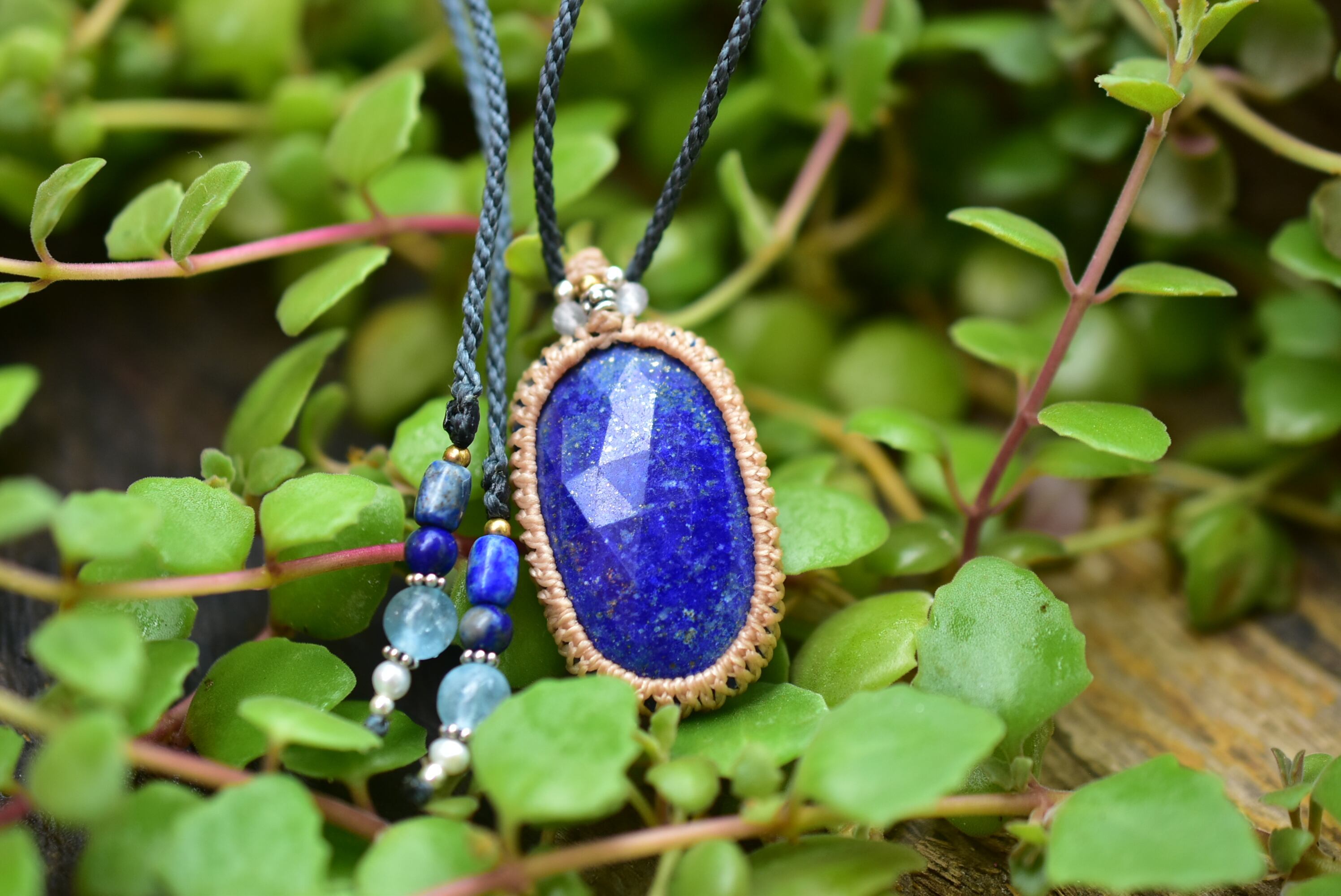 豪華なファセット★ラピスラズリ マクラメペンダントネックレス670