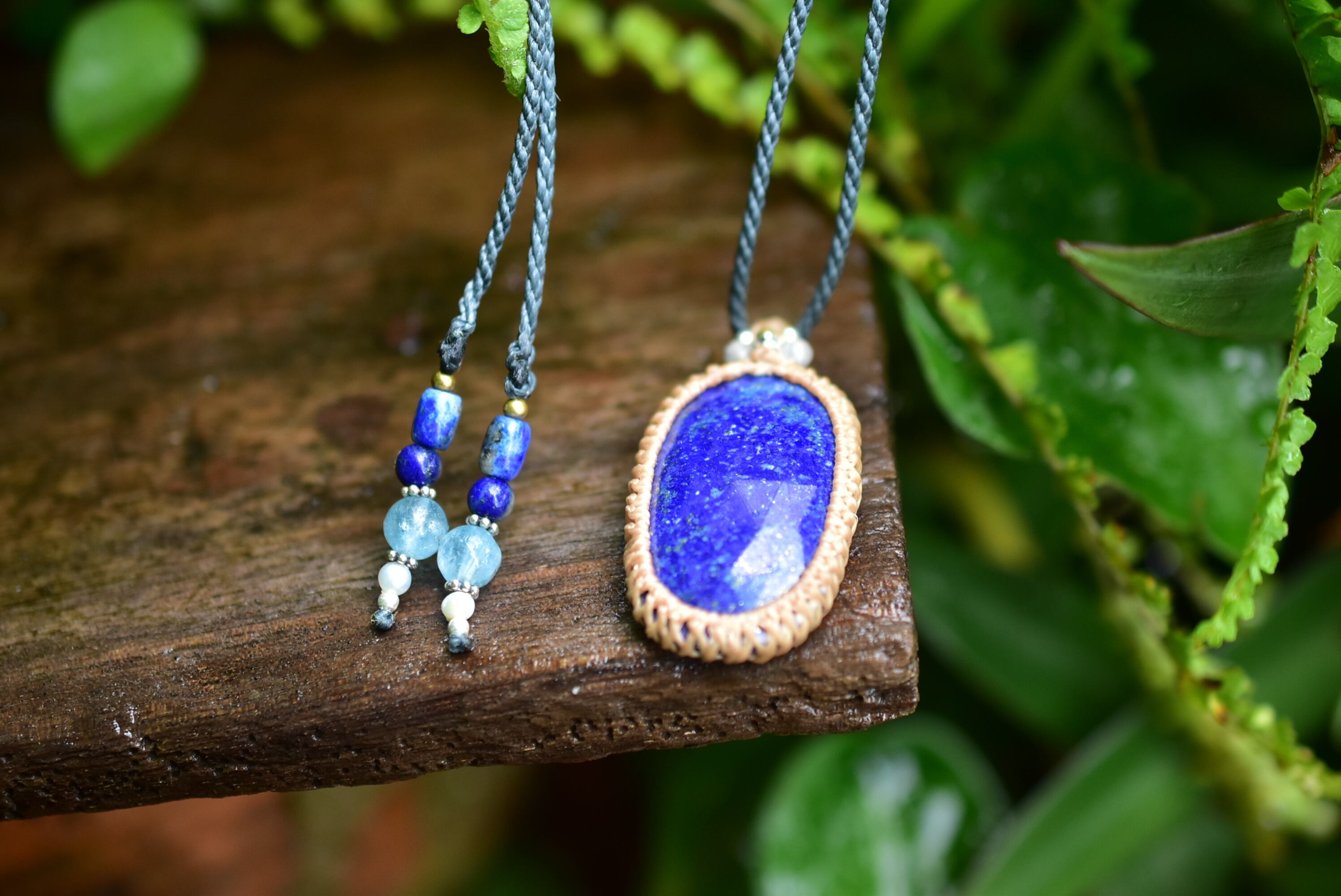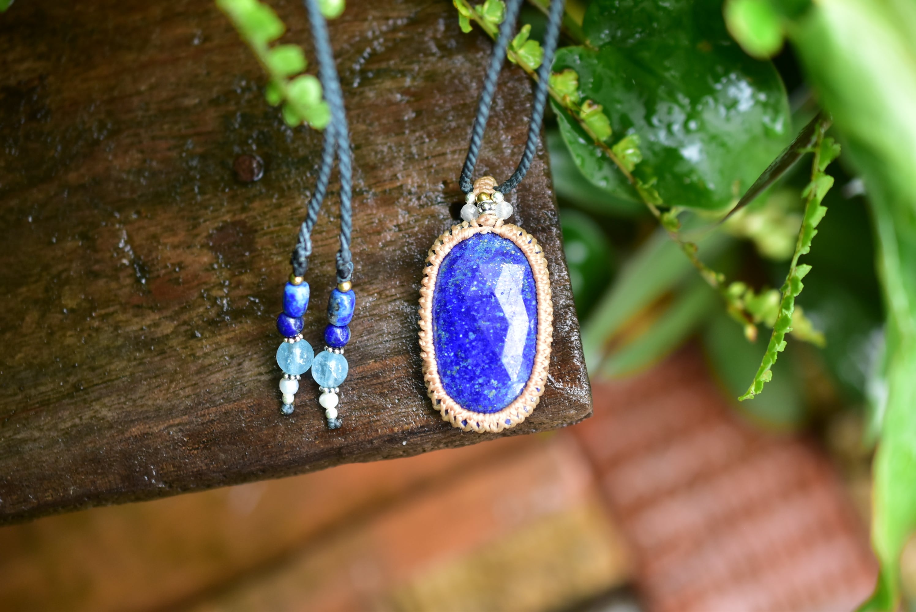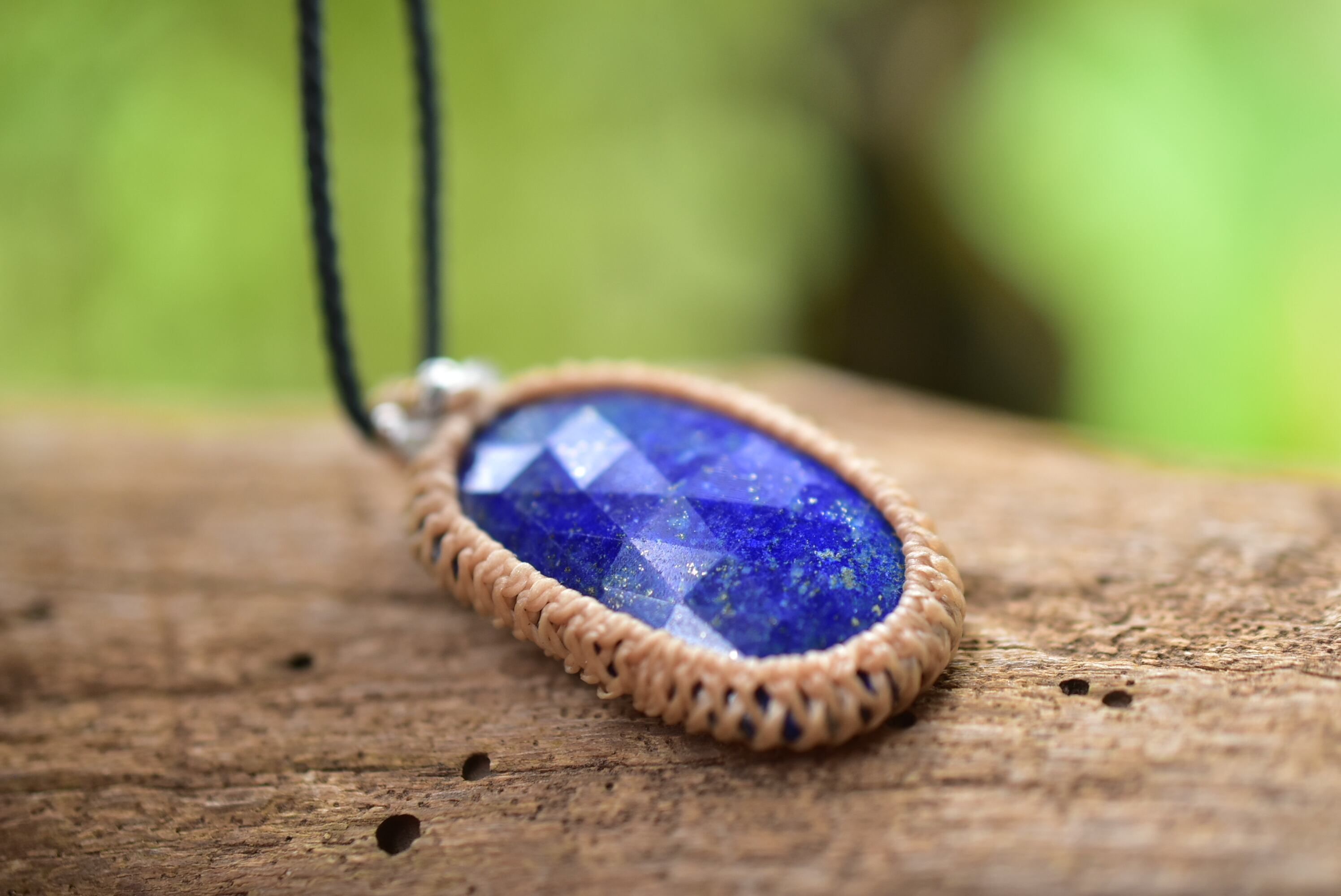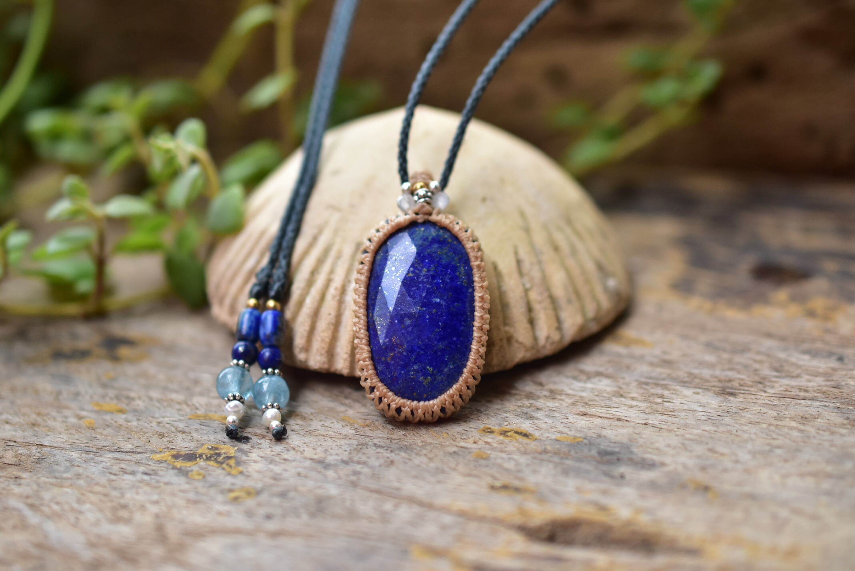 豪華なファセット★ラピスラズリ マクラメペンダントネックレス670