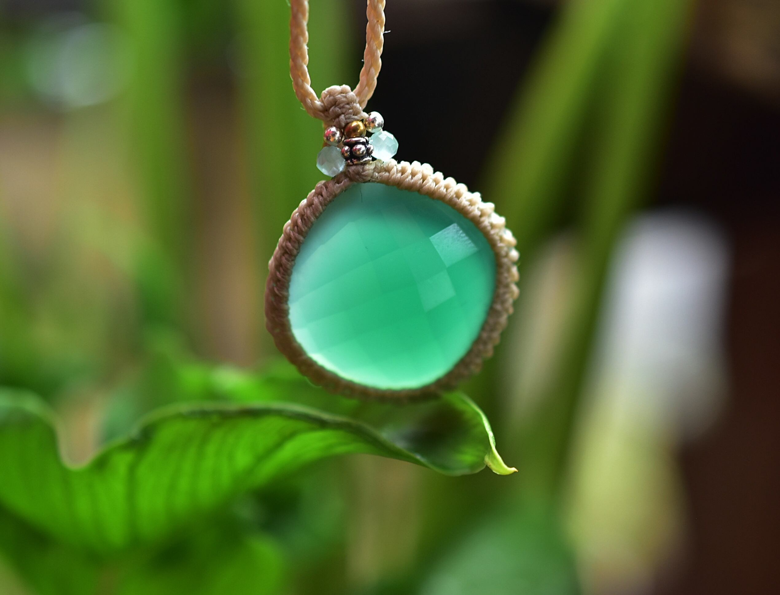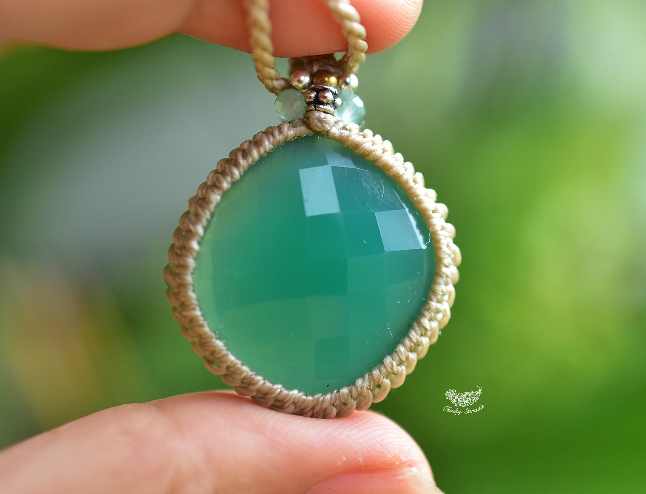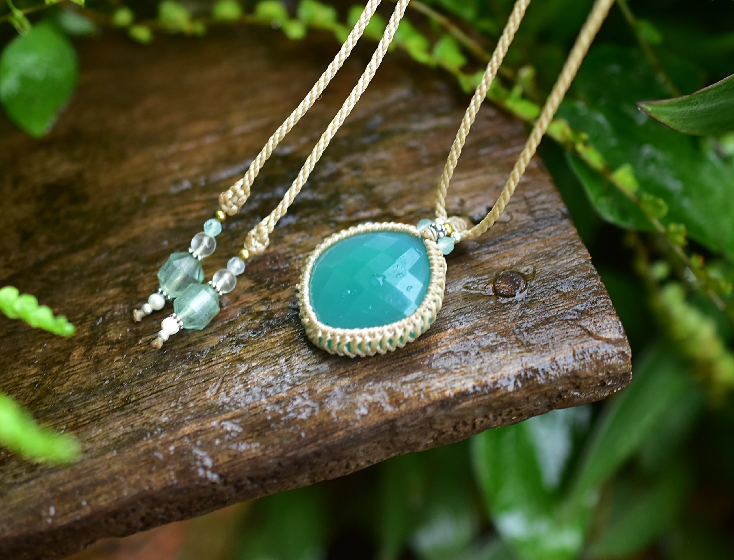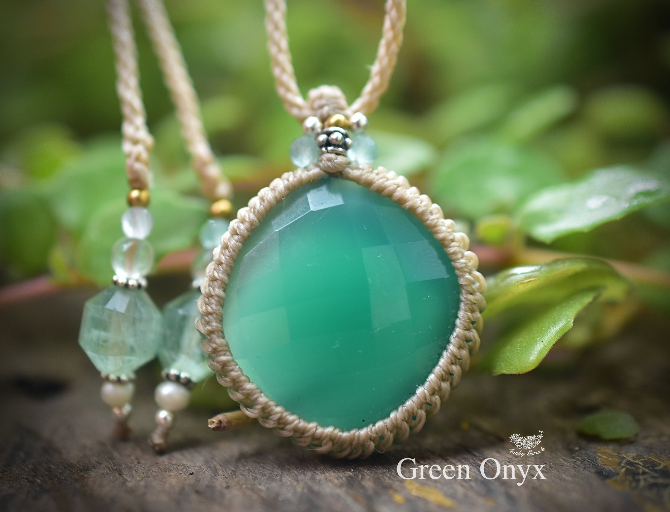 ファセットカット★グリーンオニキス マクラメペンダント679