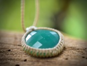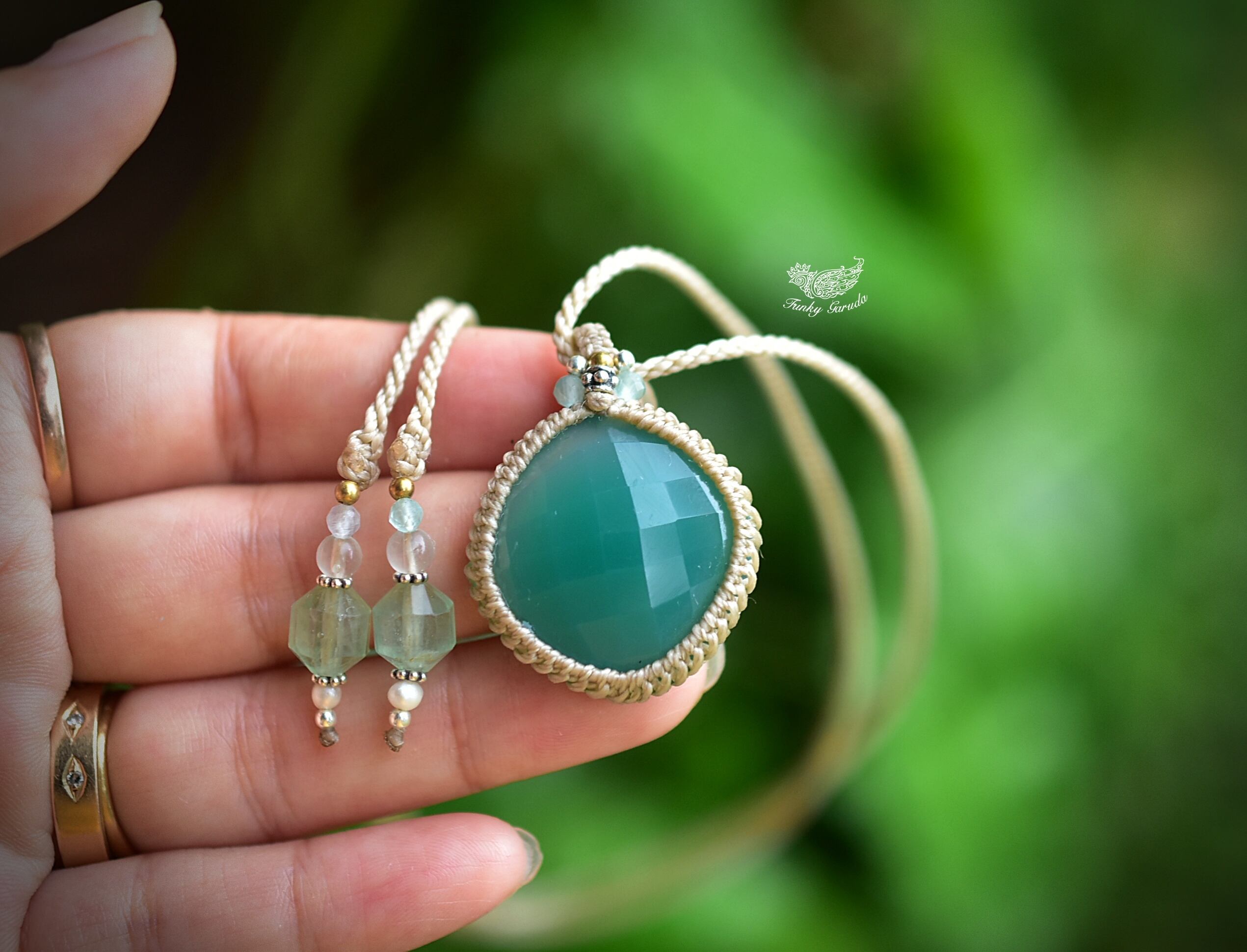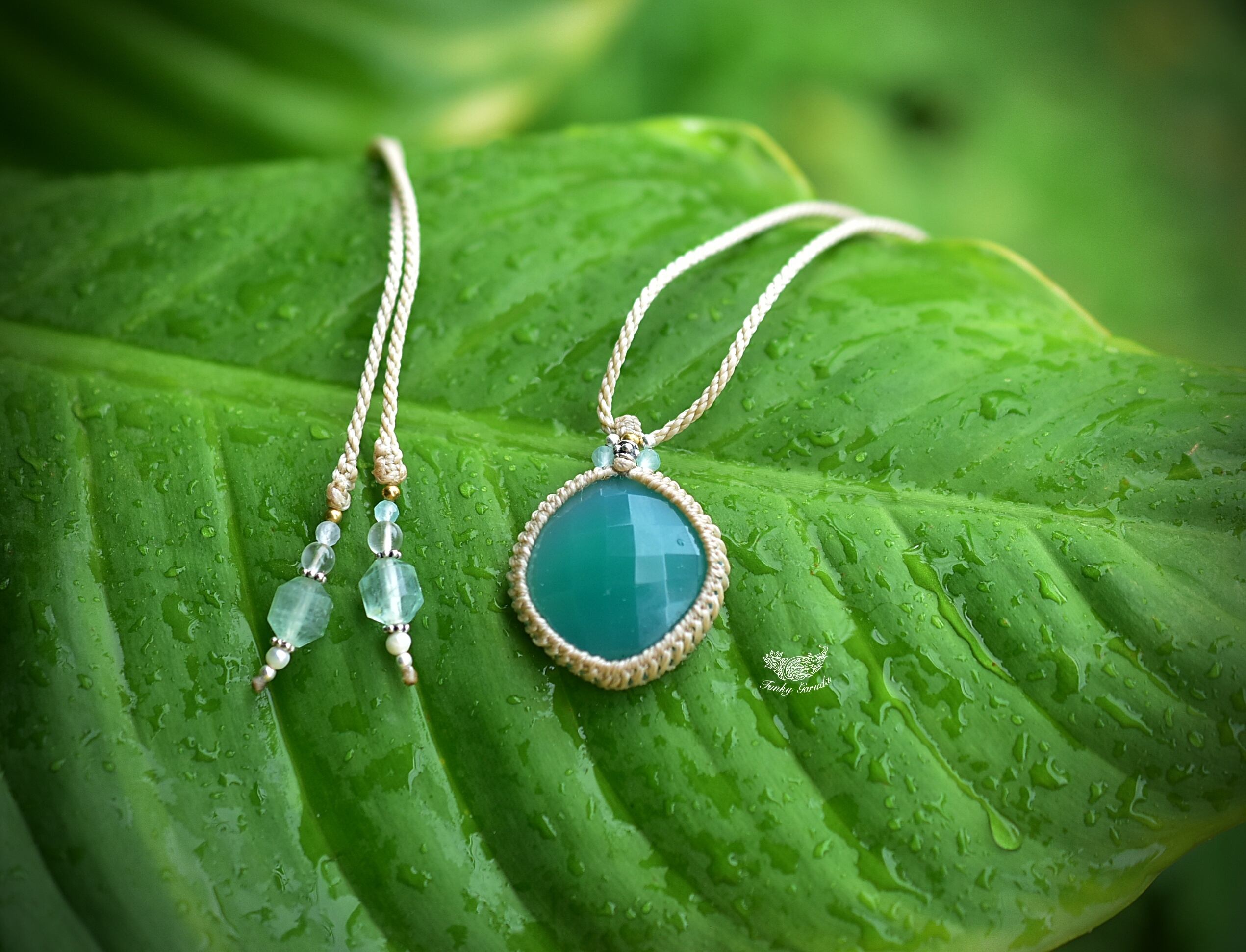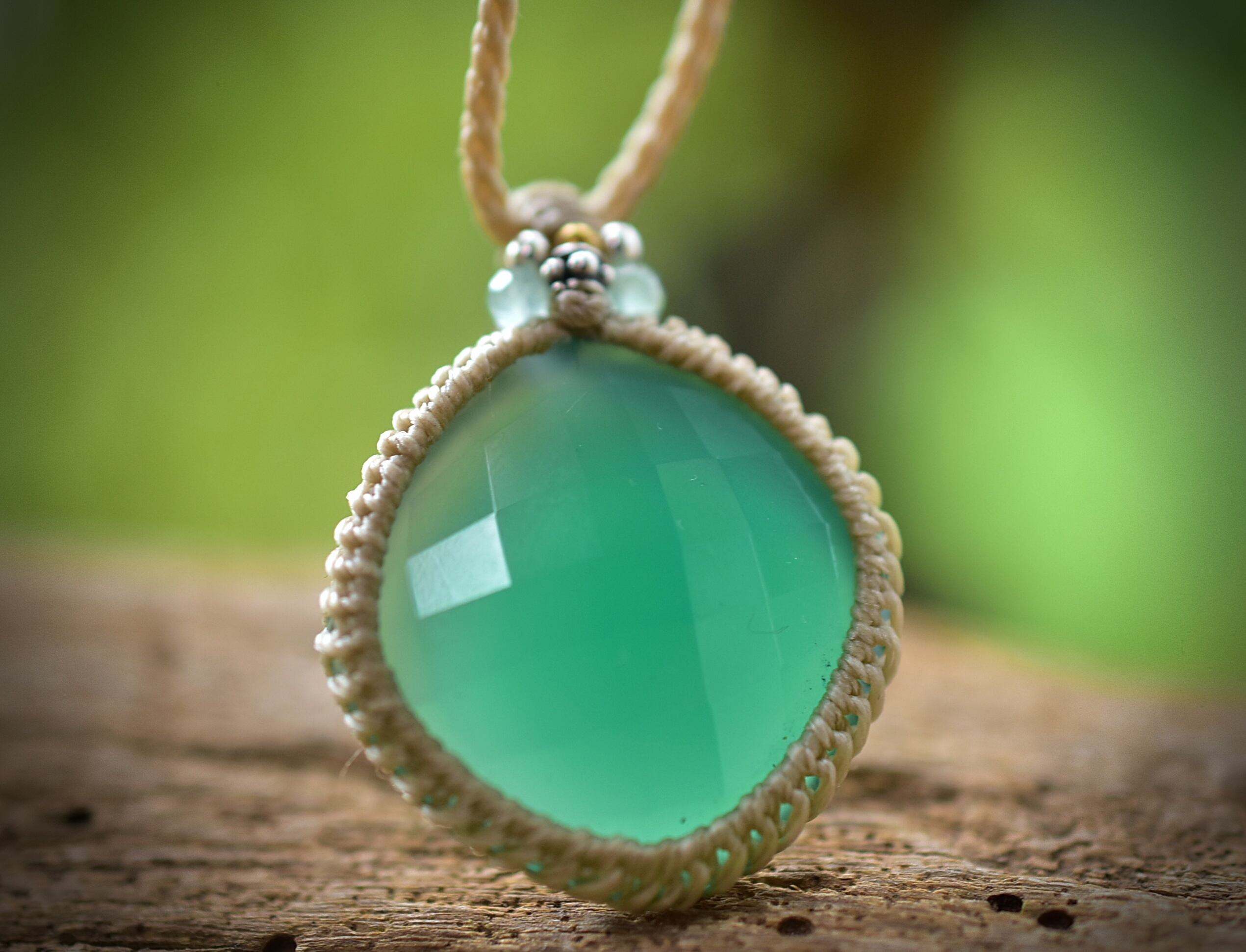 ファセットカット★グリーンオニキス マクラメペンダント679