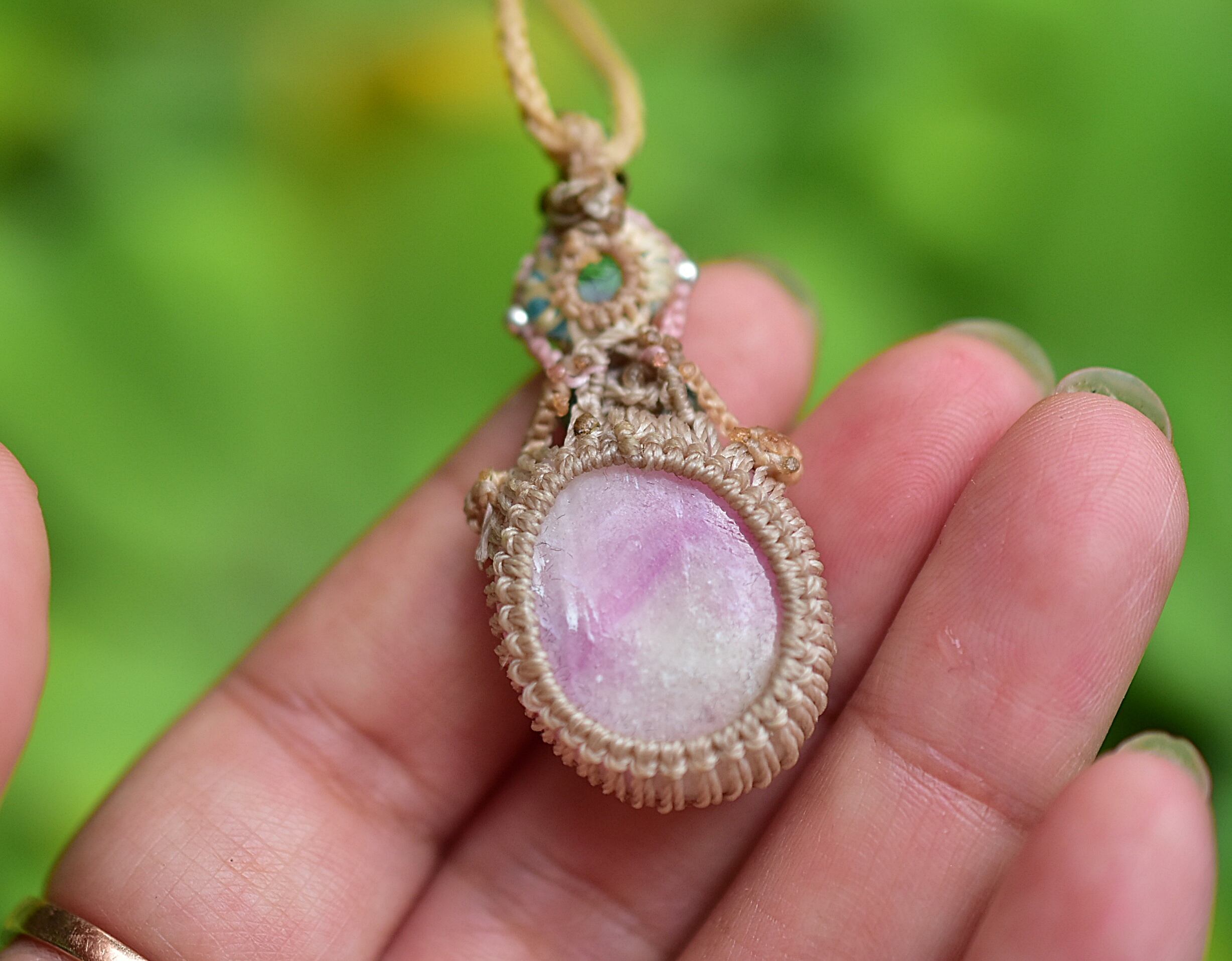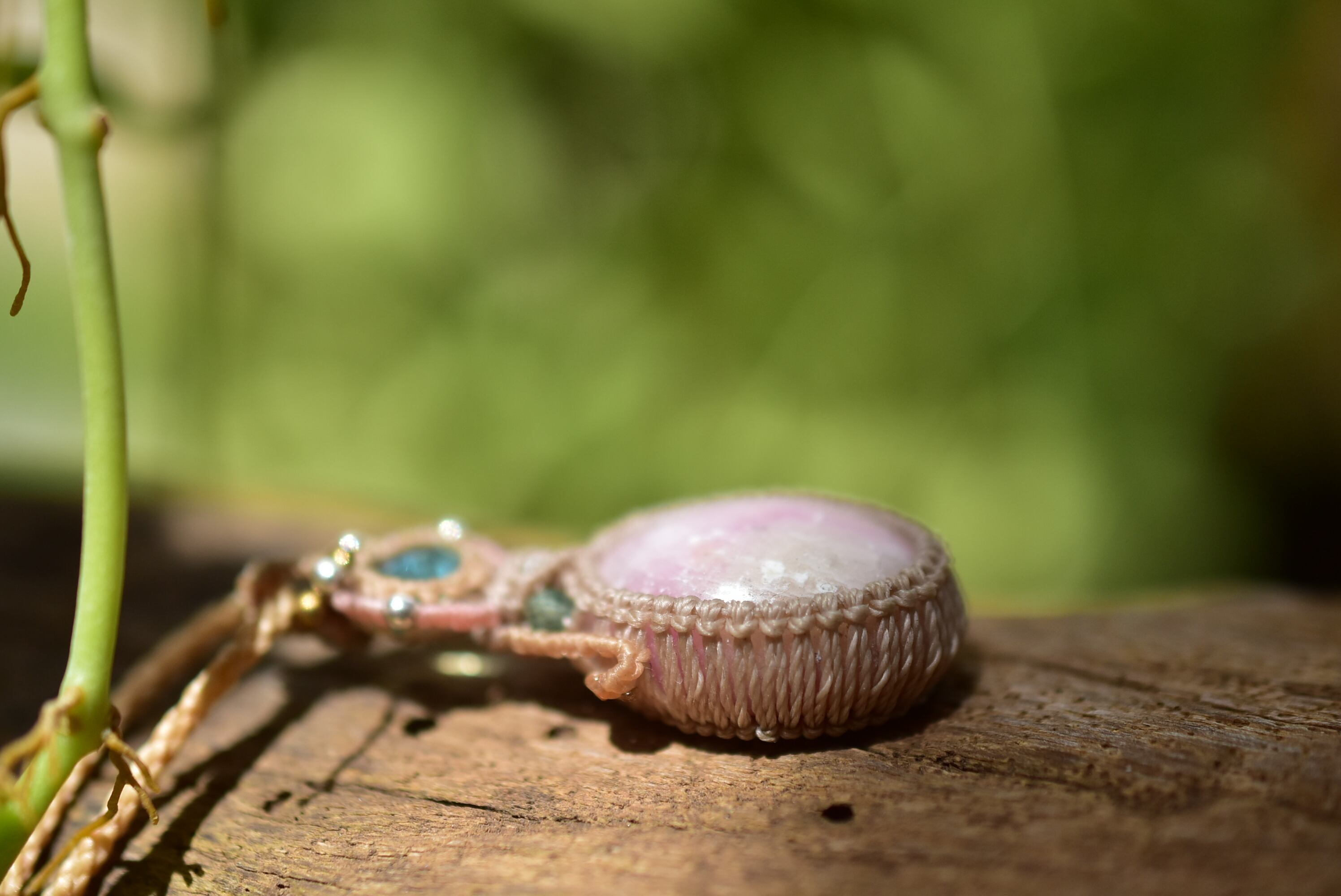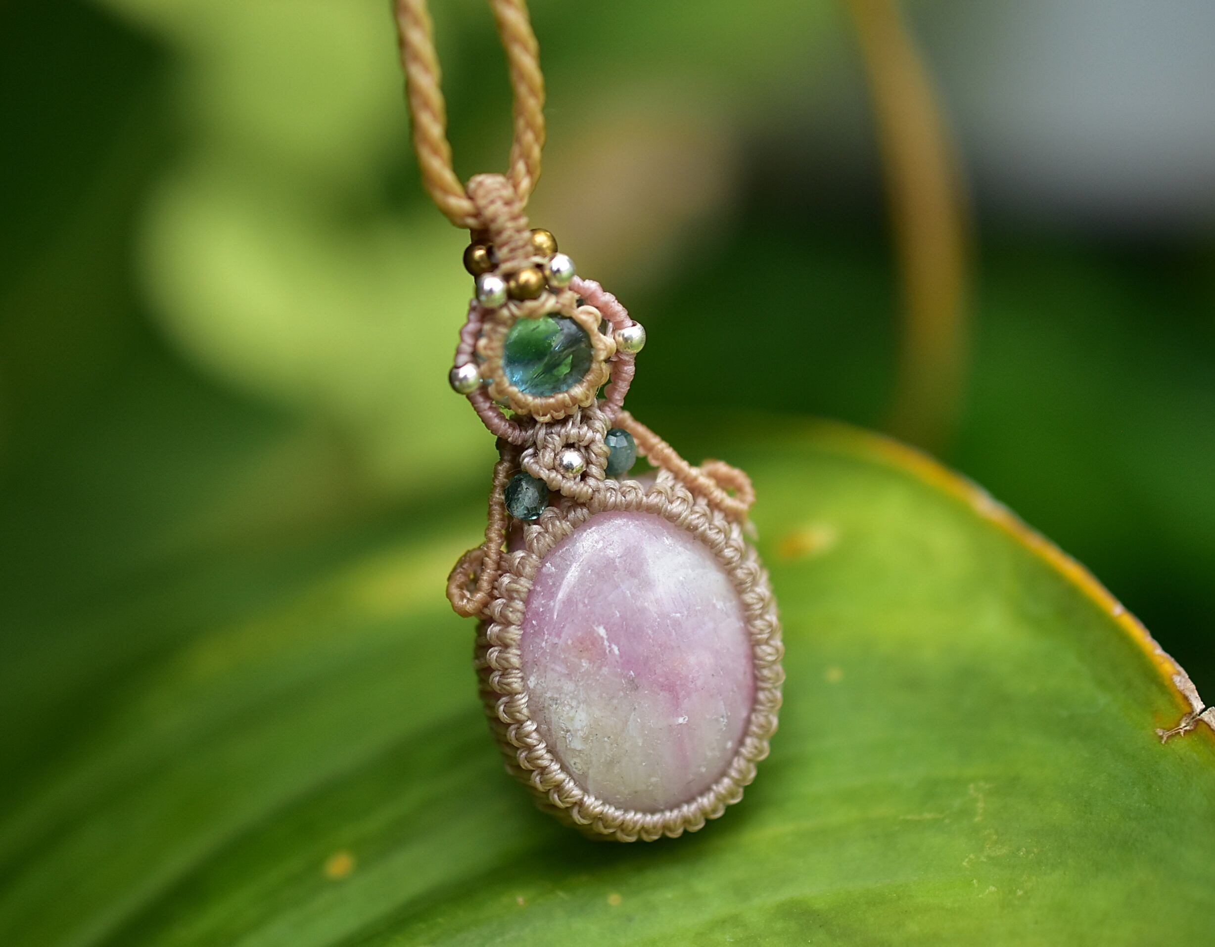 ピンクとブルーの馴れそめ★アパタイト★ピンクサファイア マクラメペンダント688