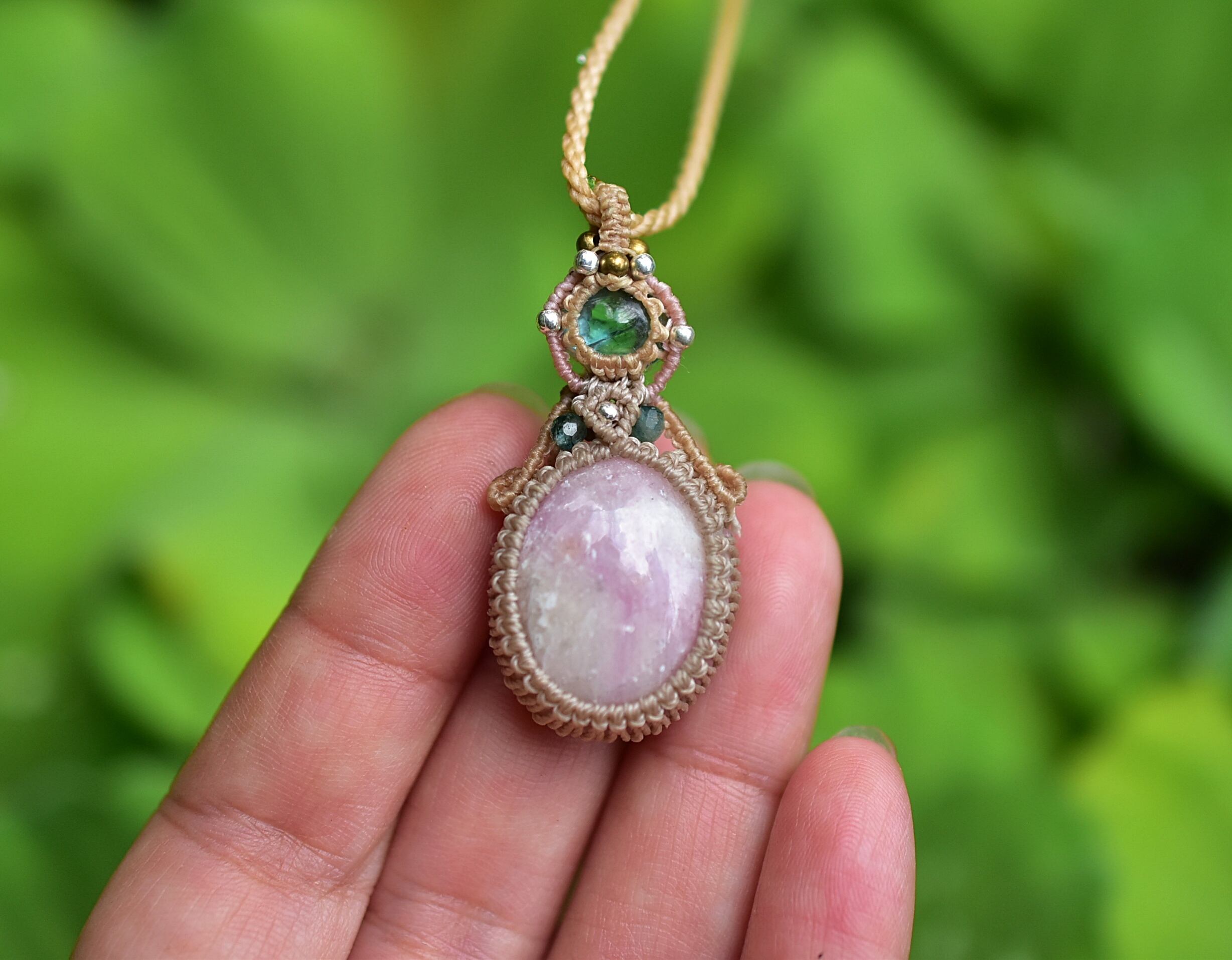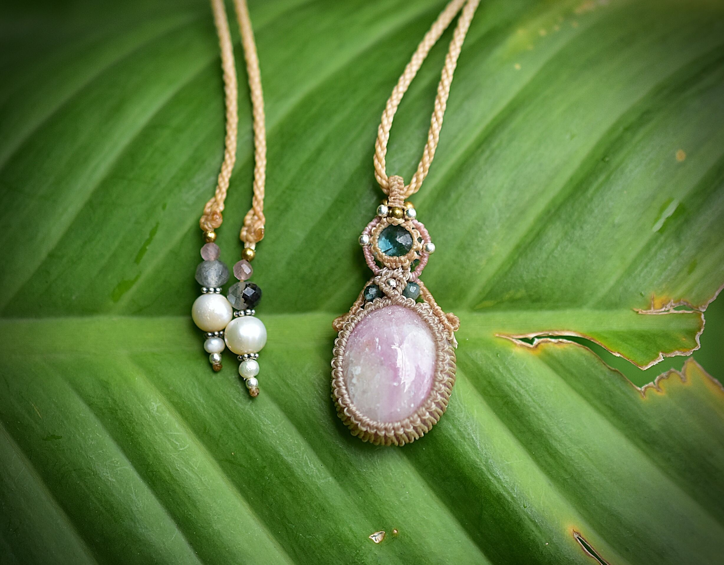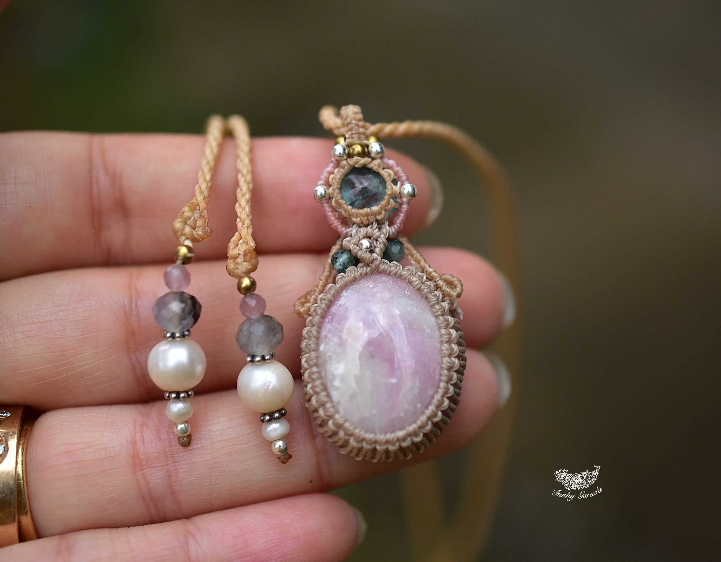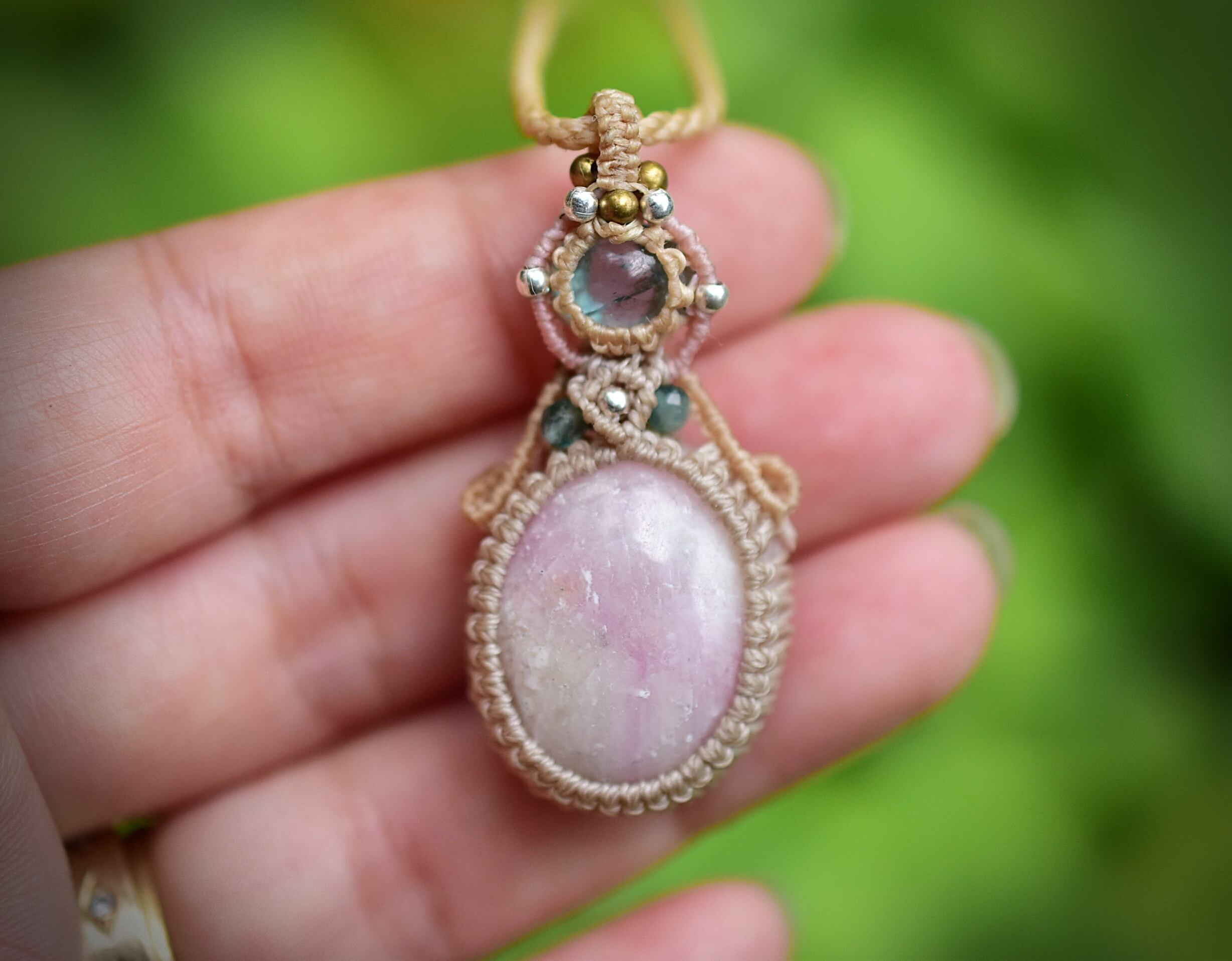 ピンクとブルーの馴れそめ★アパタイト★ピンクサファイア マクラメペンダント688