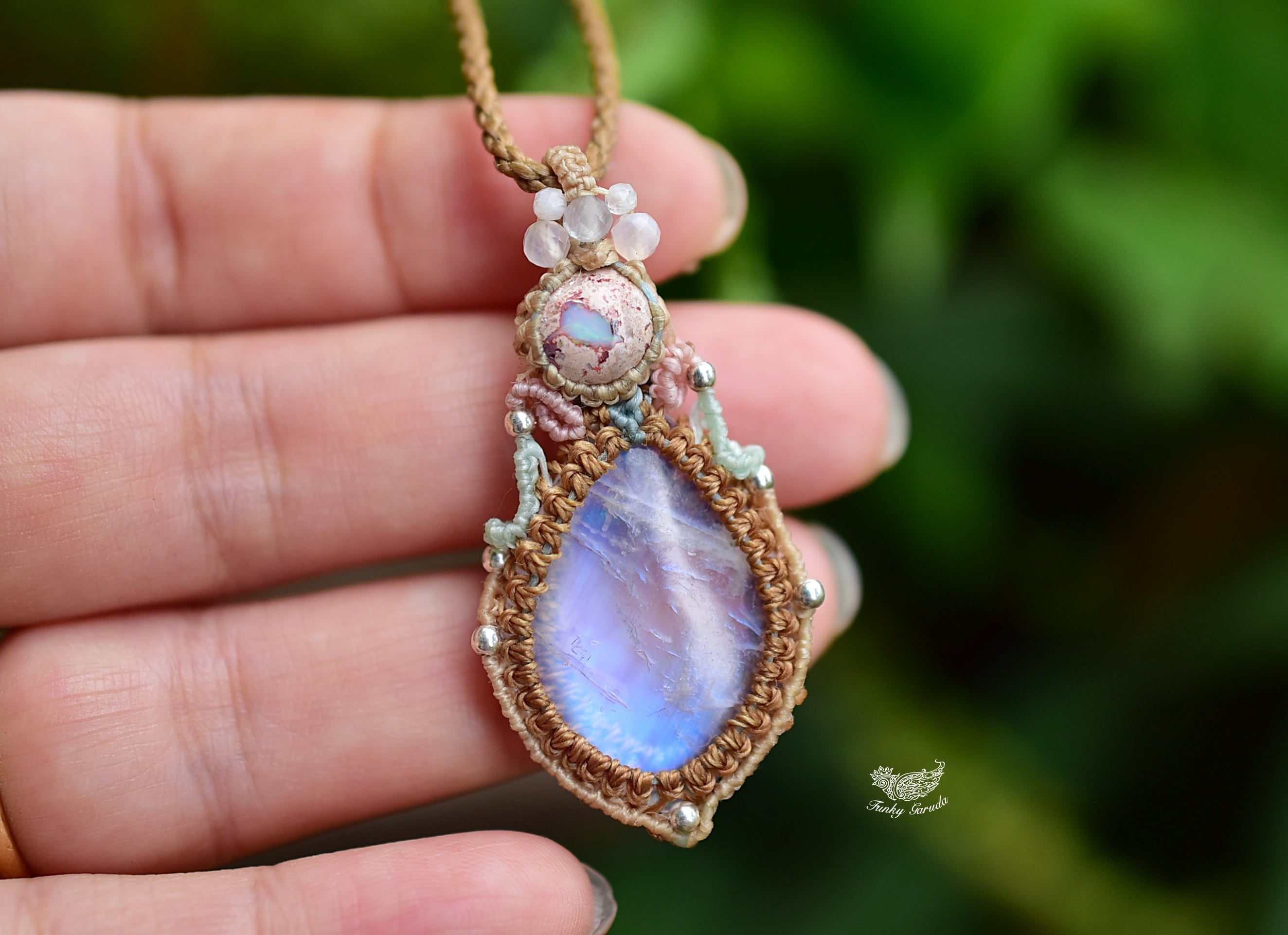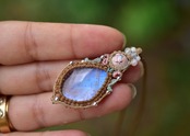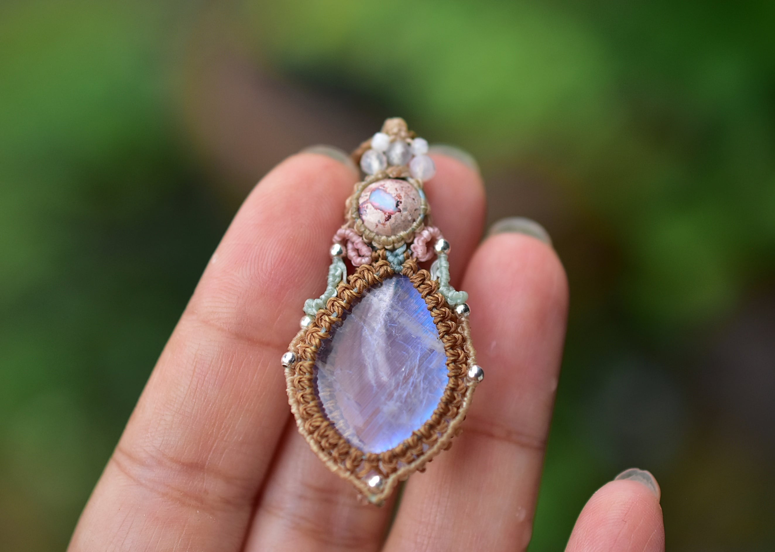 虹プリズムと月の面影★カンテラオパール★レインボームーンストーン マクラメペンダント691
