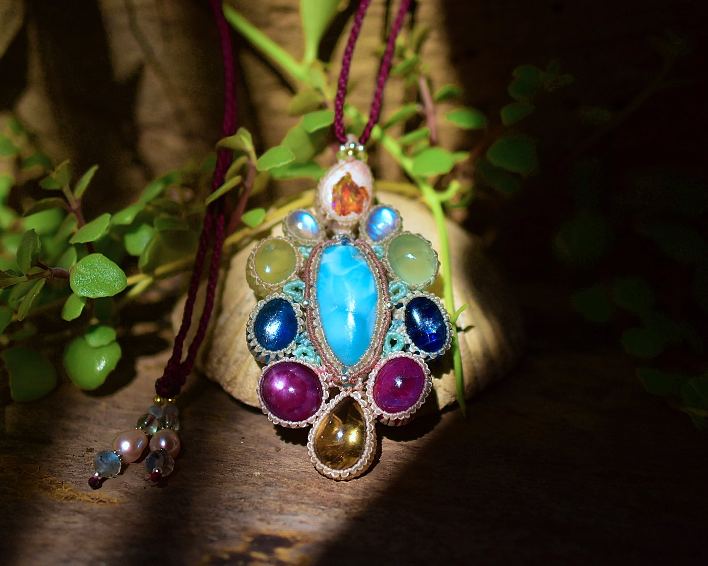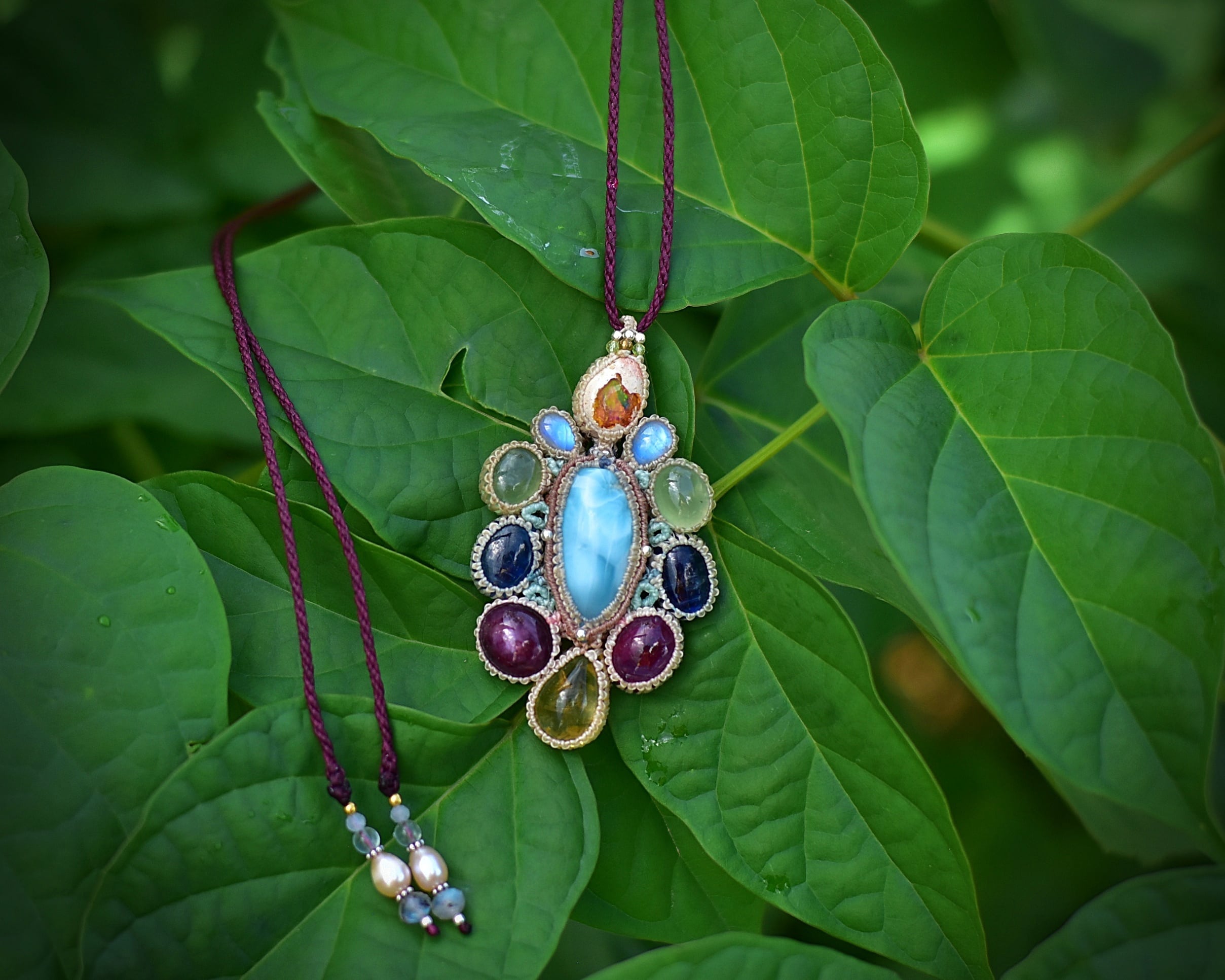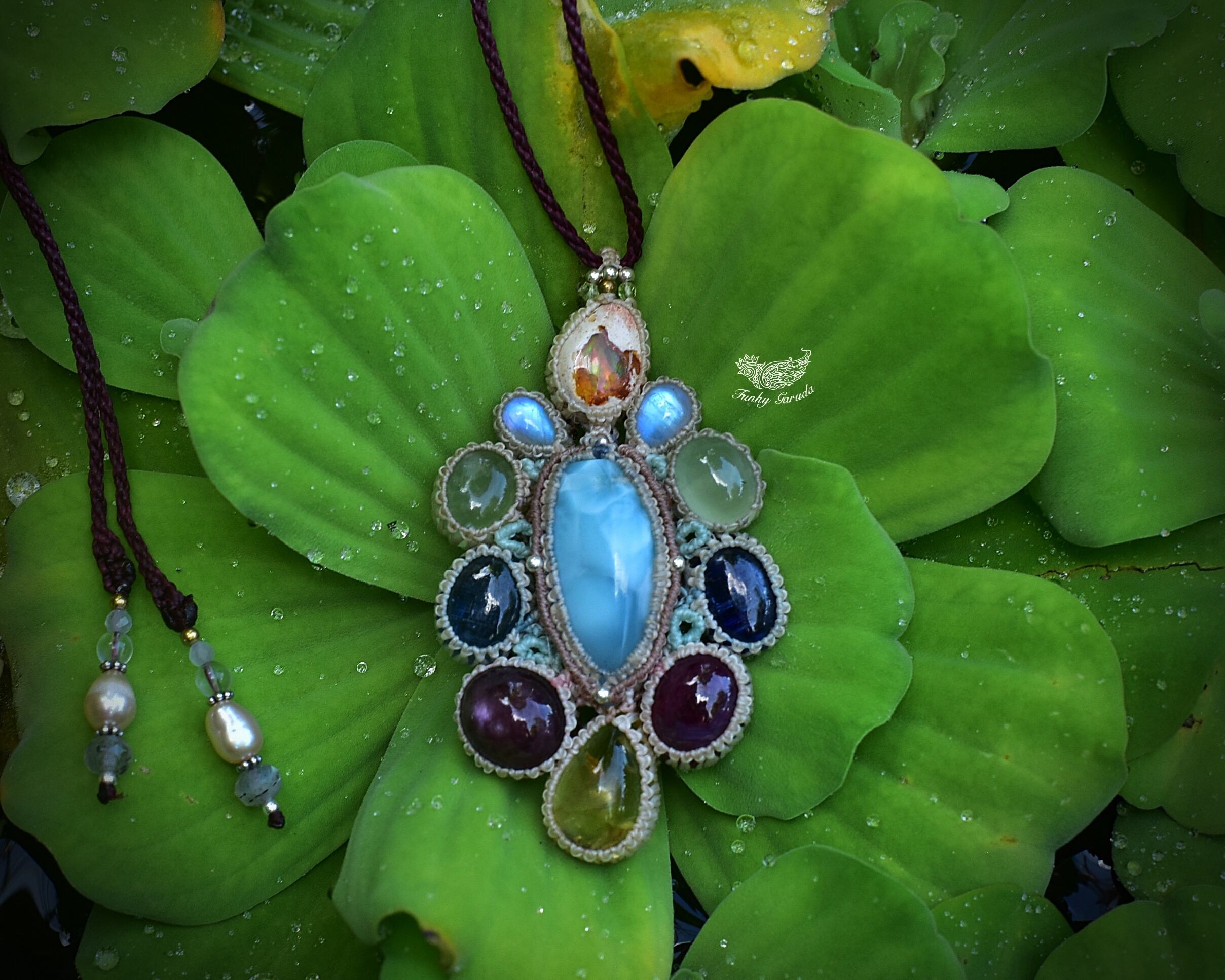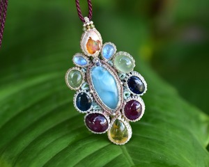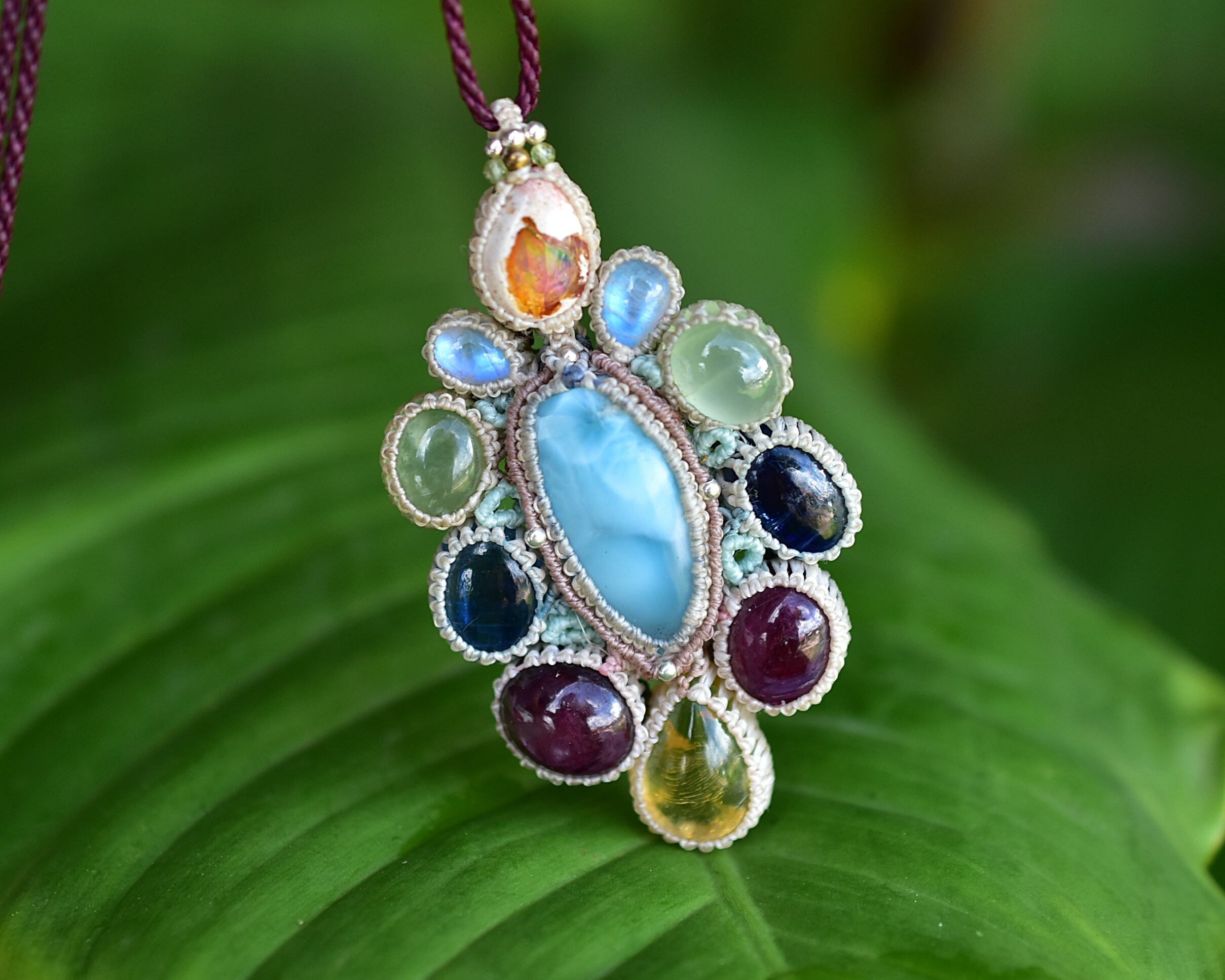 台風の花★ラリマー カンテラオパール マクラメペンダント692