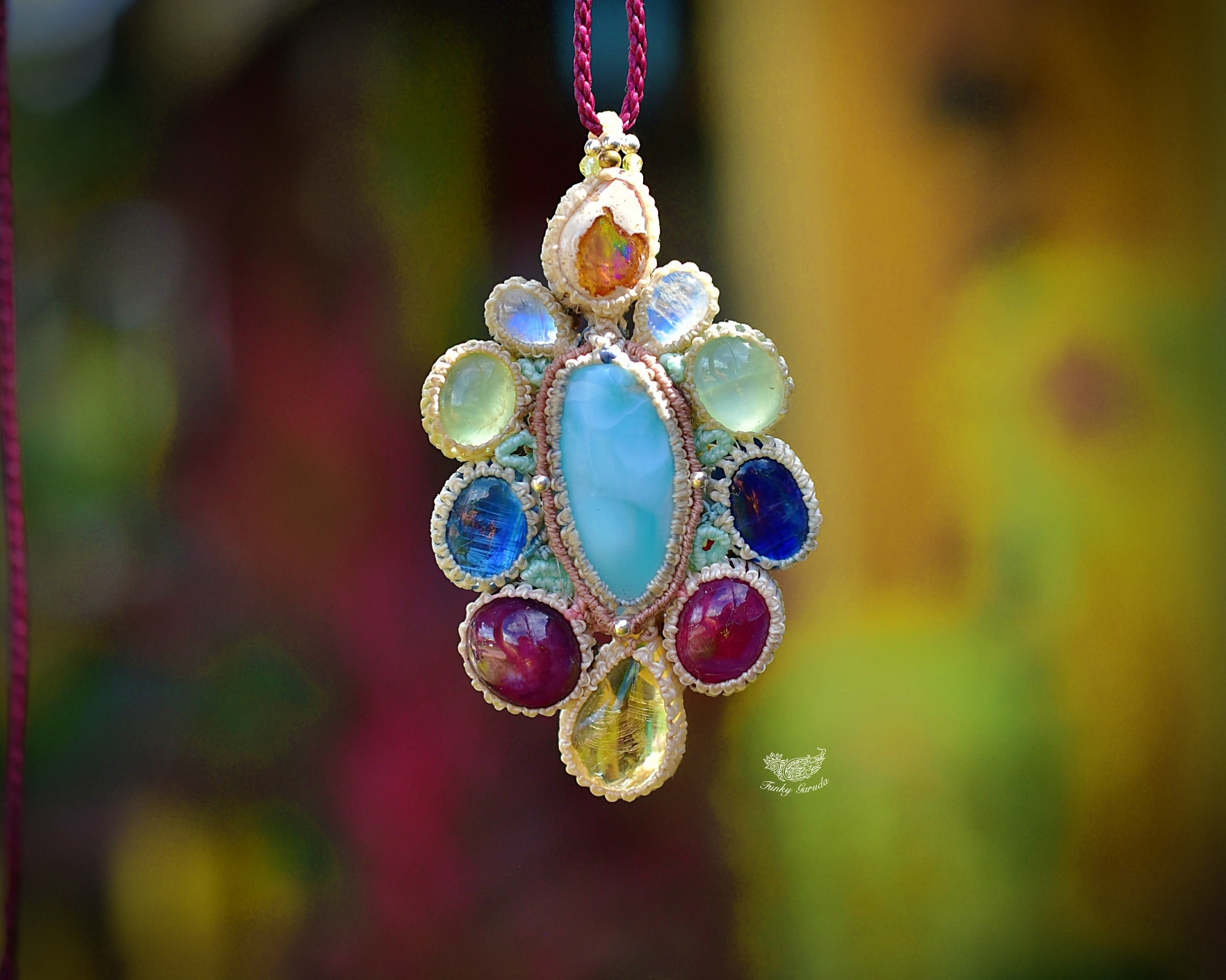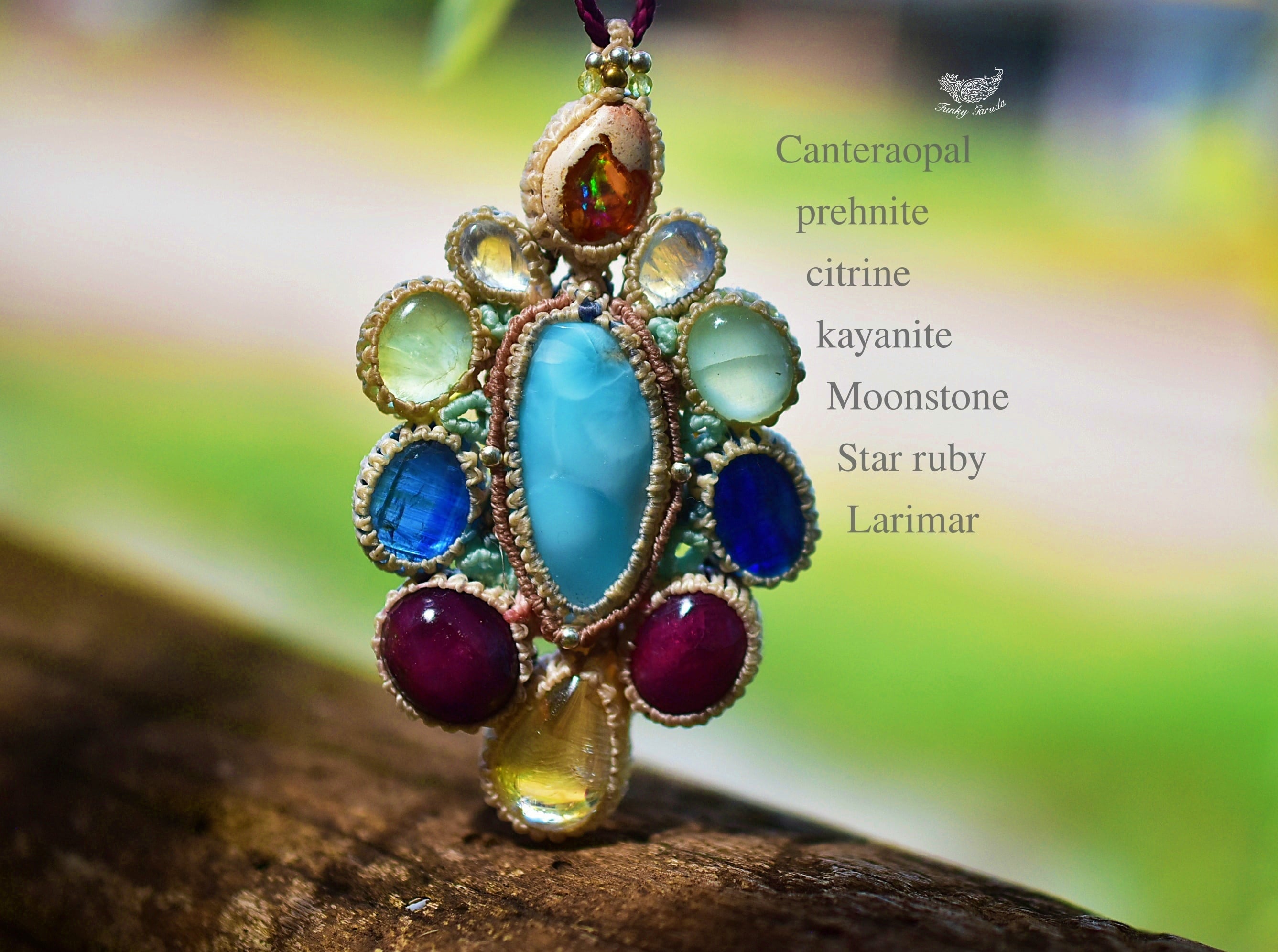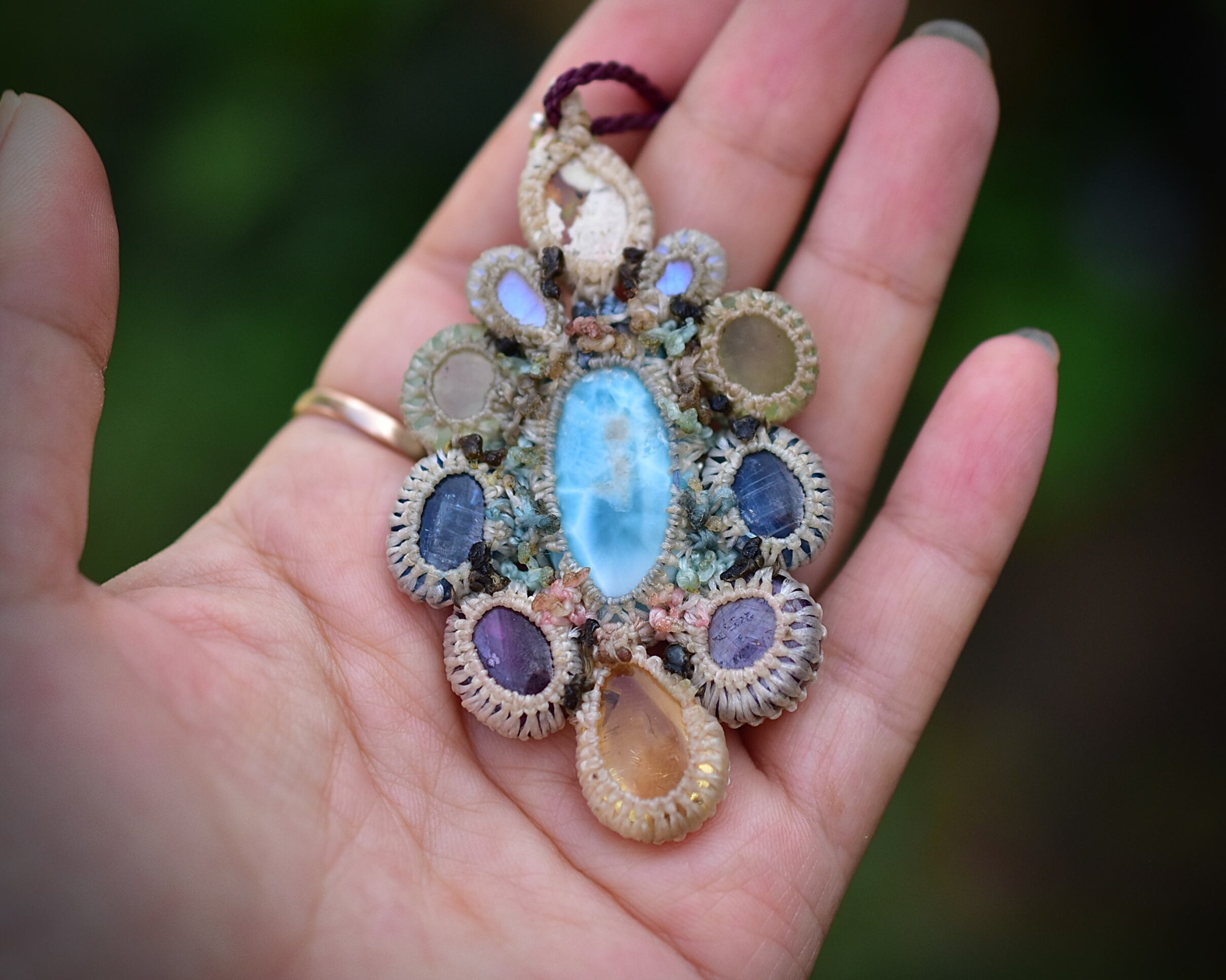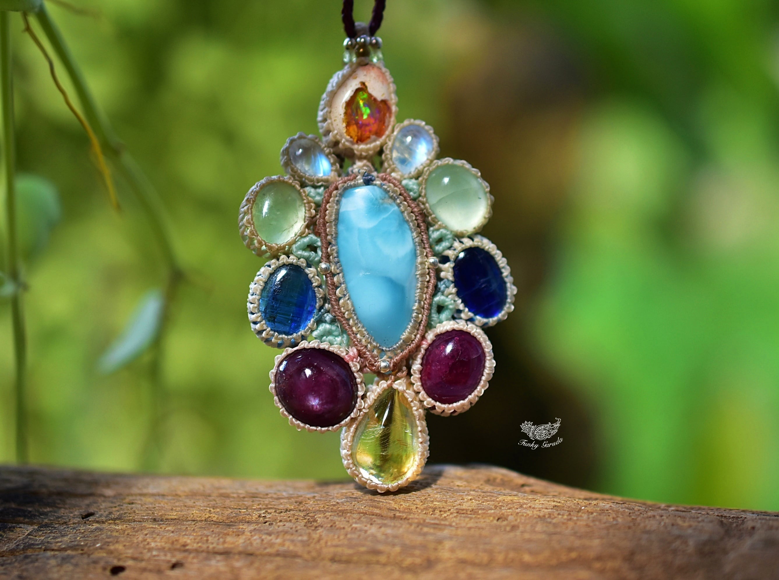 台風の花★ラリマー カンテラオパール マクラメペンダント692