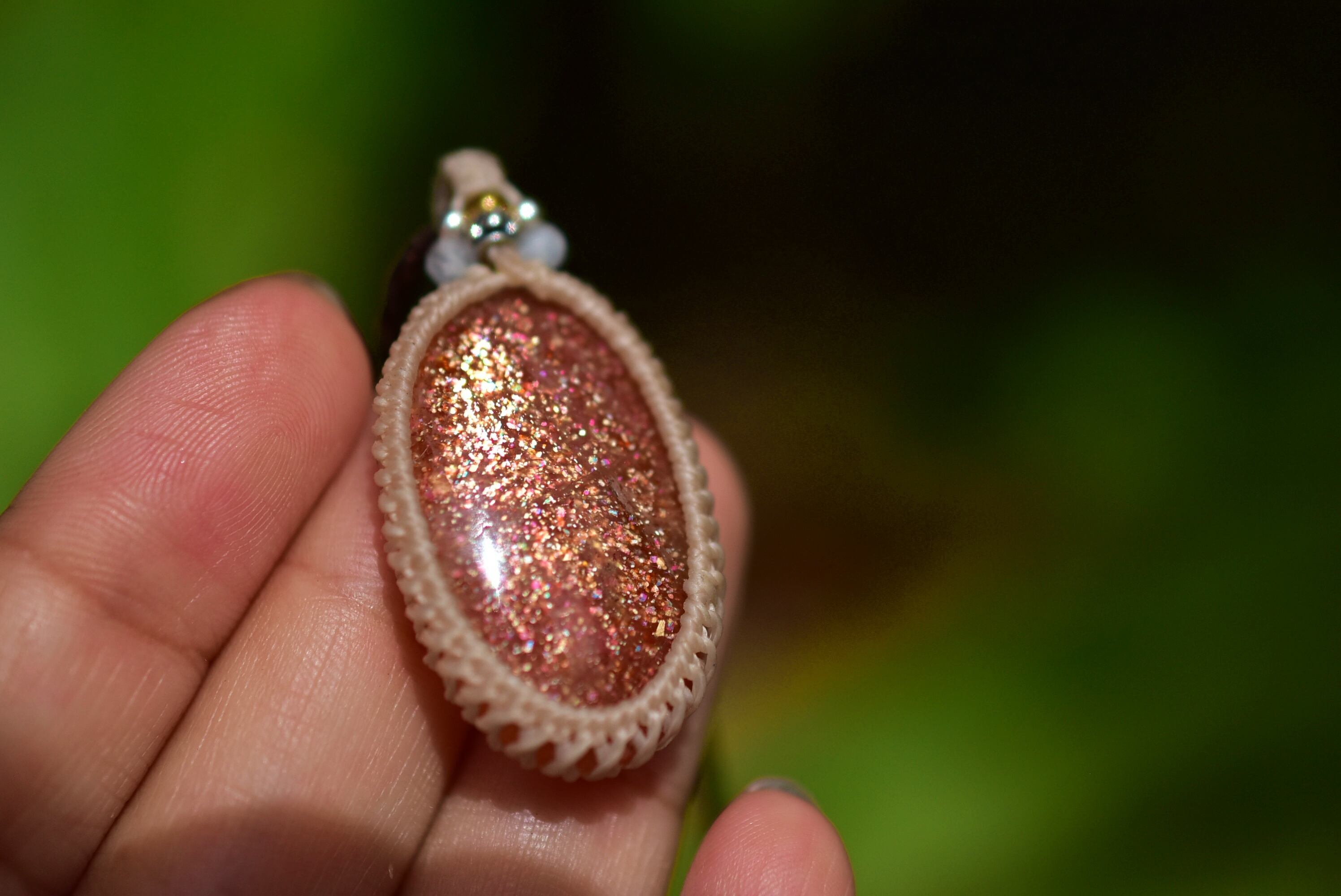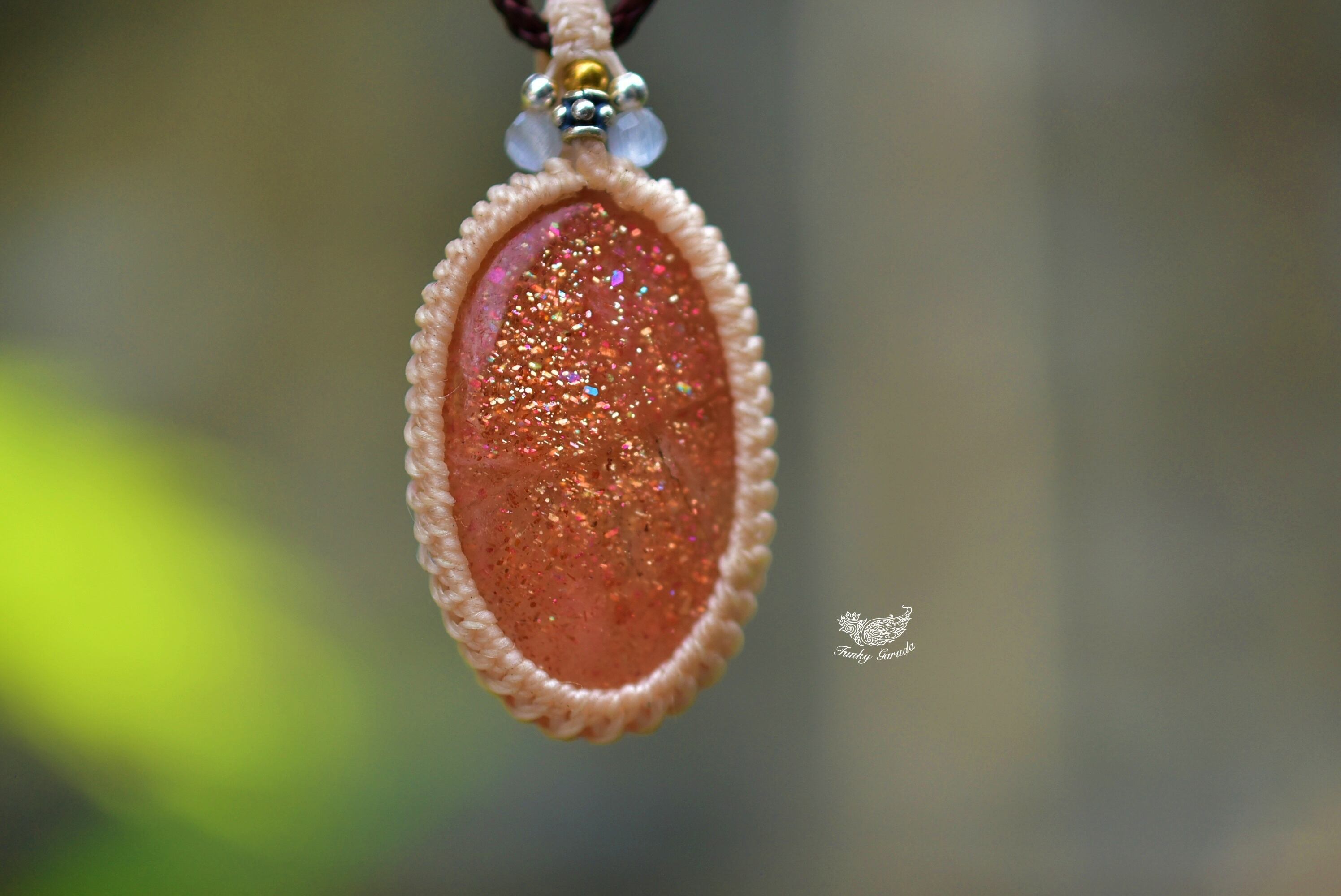 オレンジの光★サンストーン マクラメペンダント 693