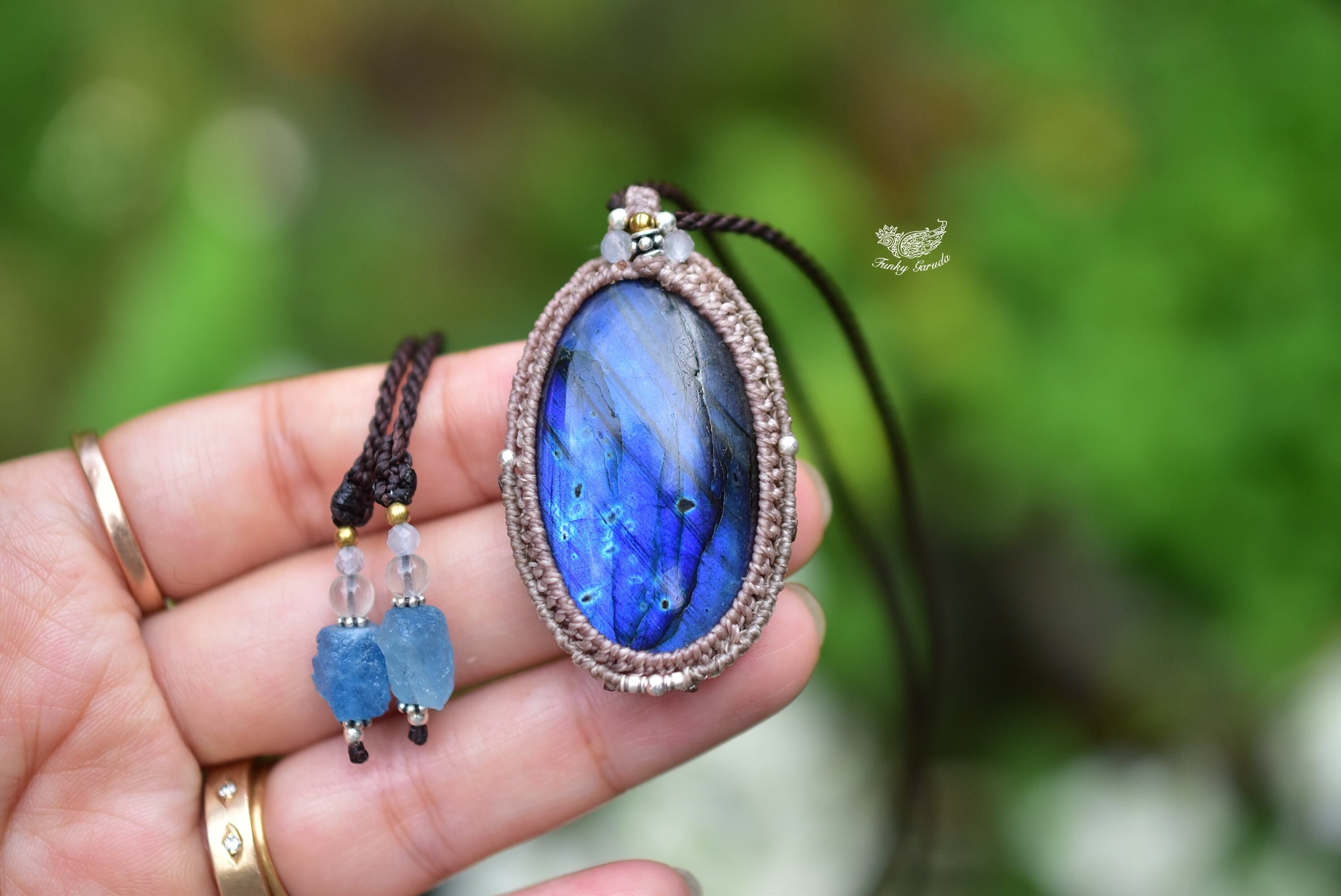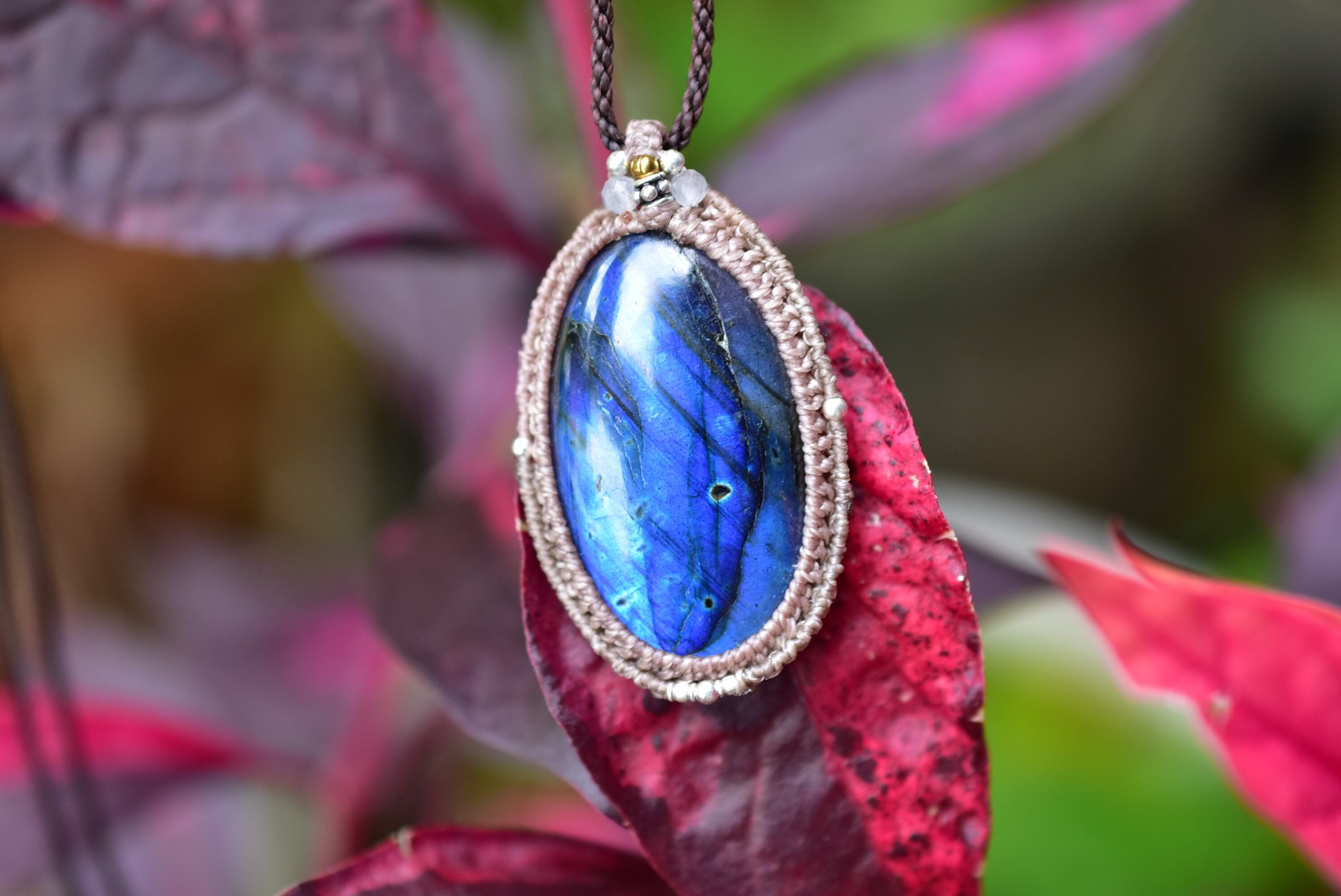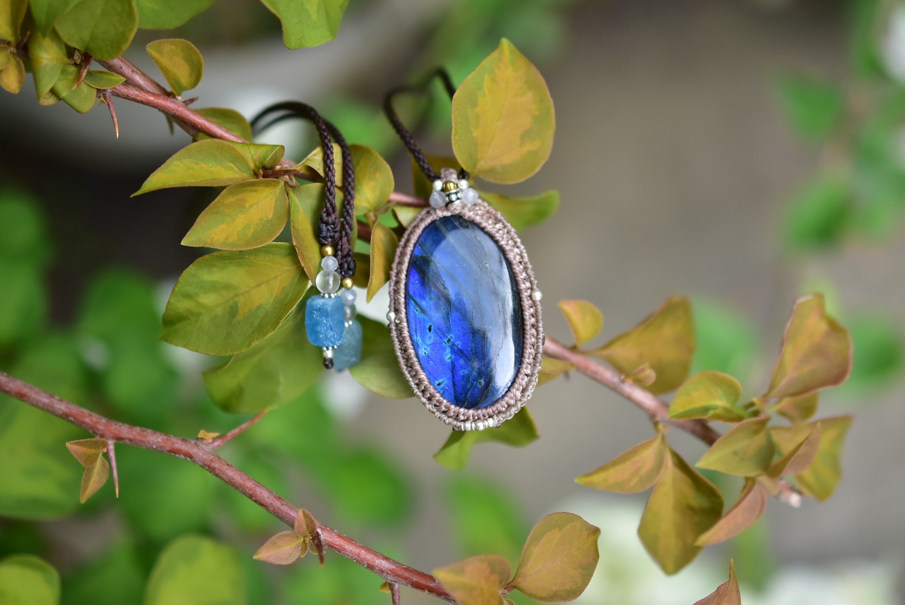 鮮やか宇宙★高品質★ブルーラブラドライト マクラメネックレス 699