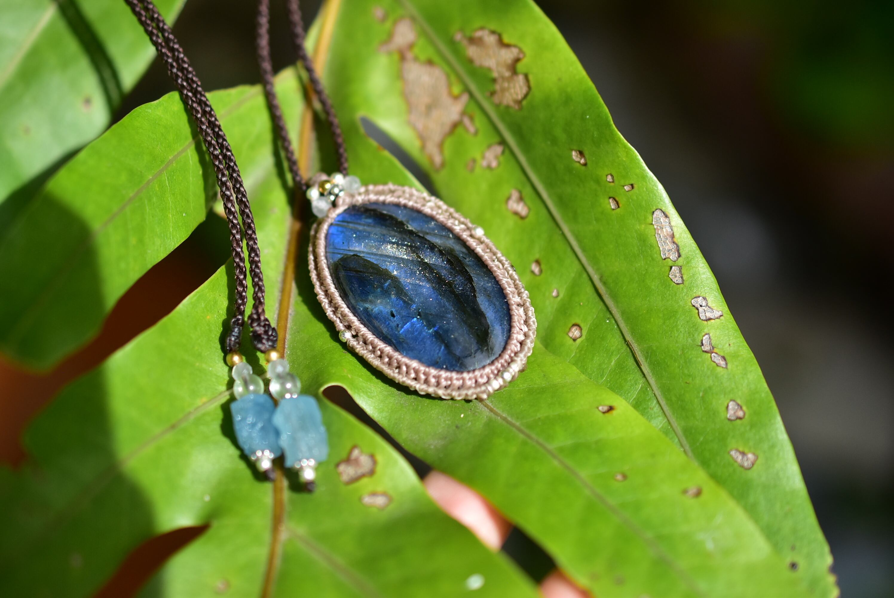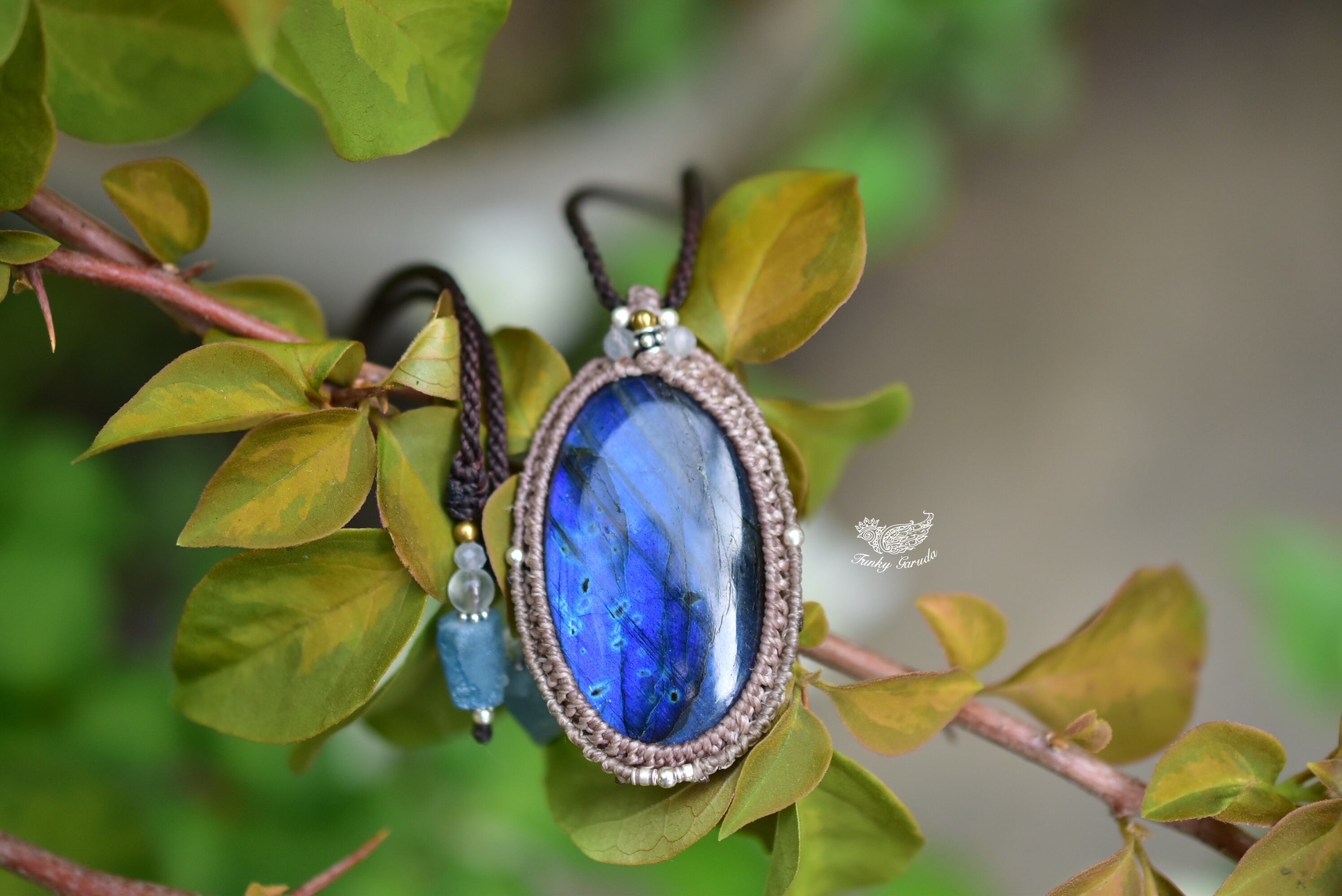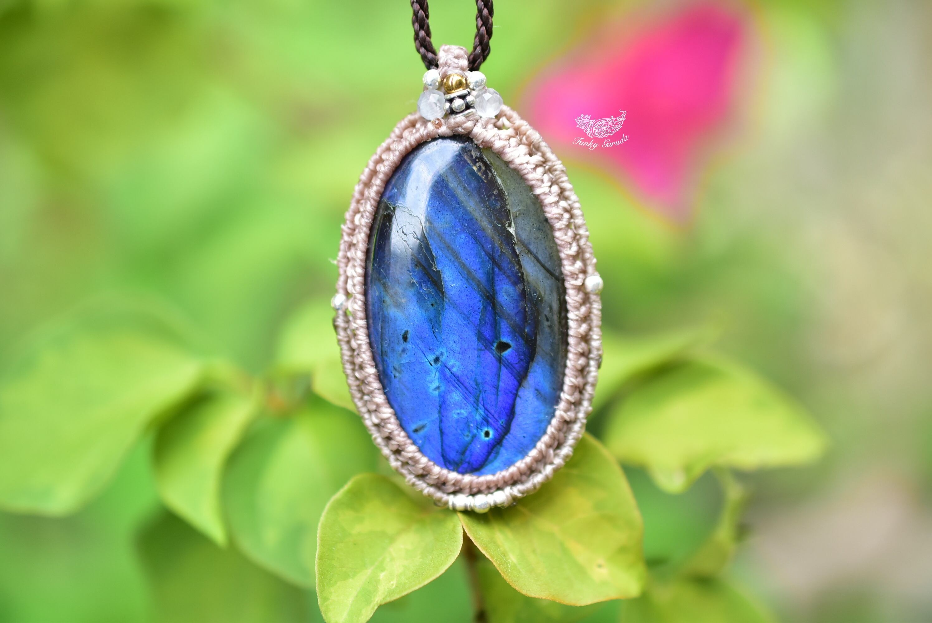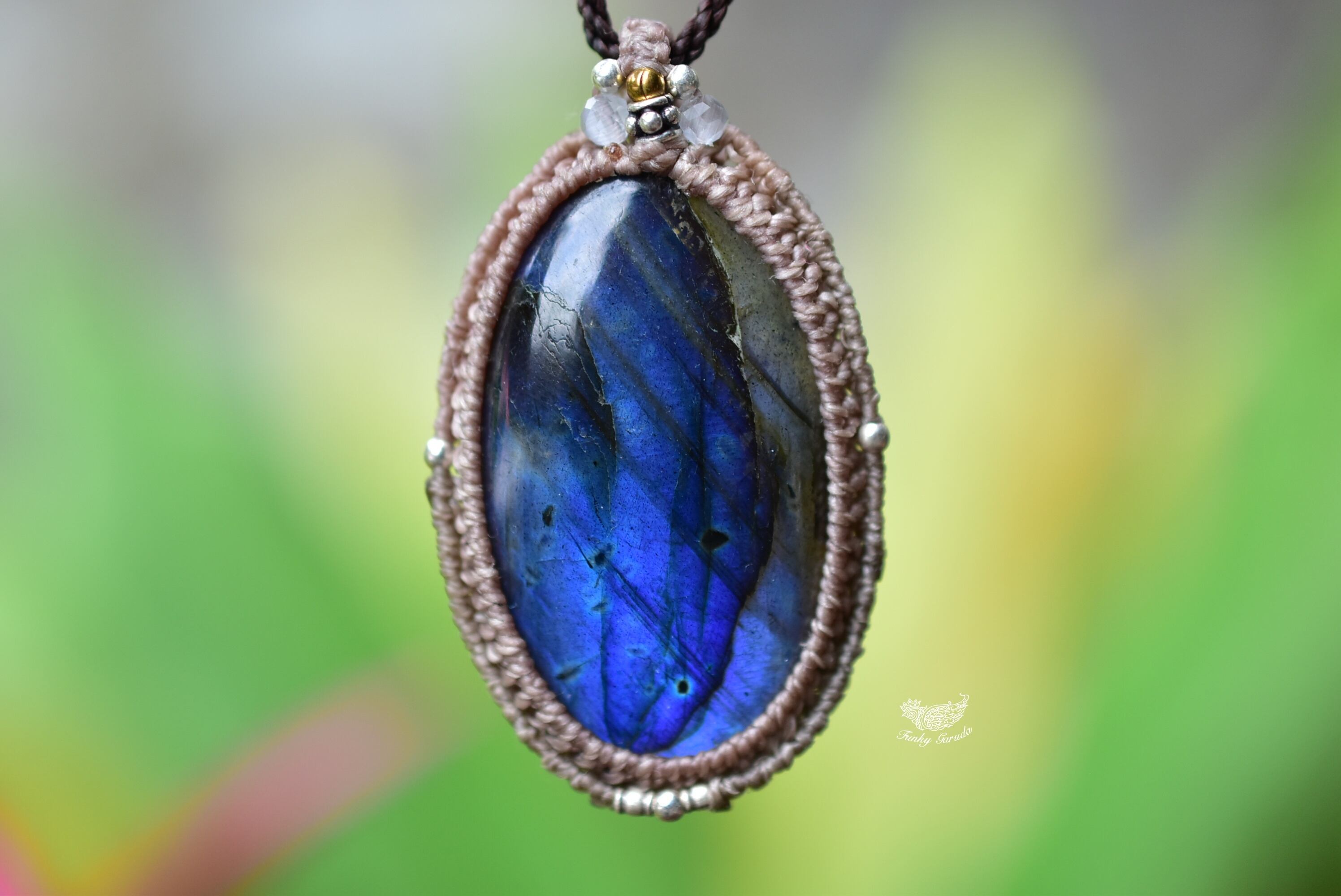 鮮やか宇宙★高品質★ブルーラブラドライト マクラメネックレス 699