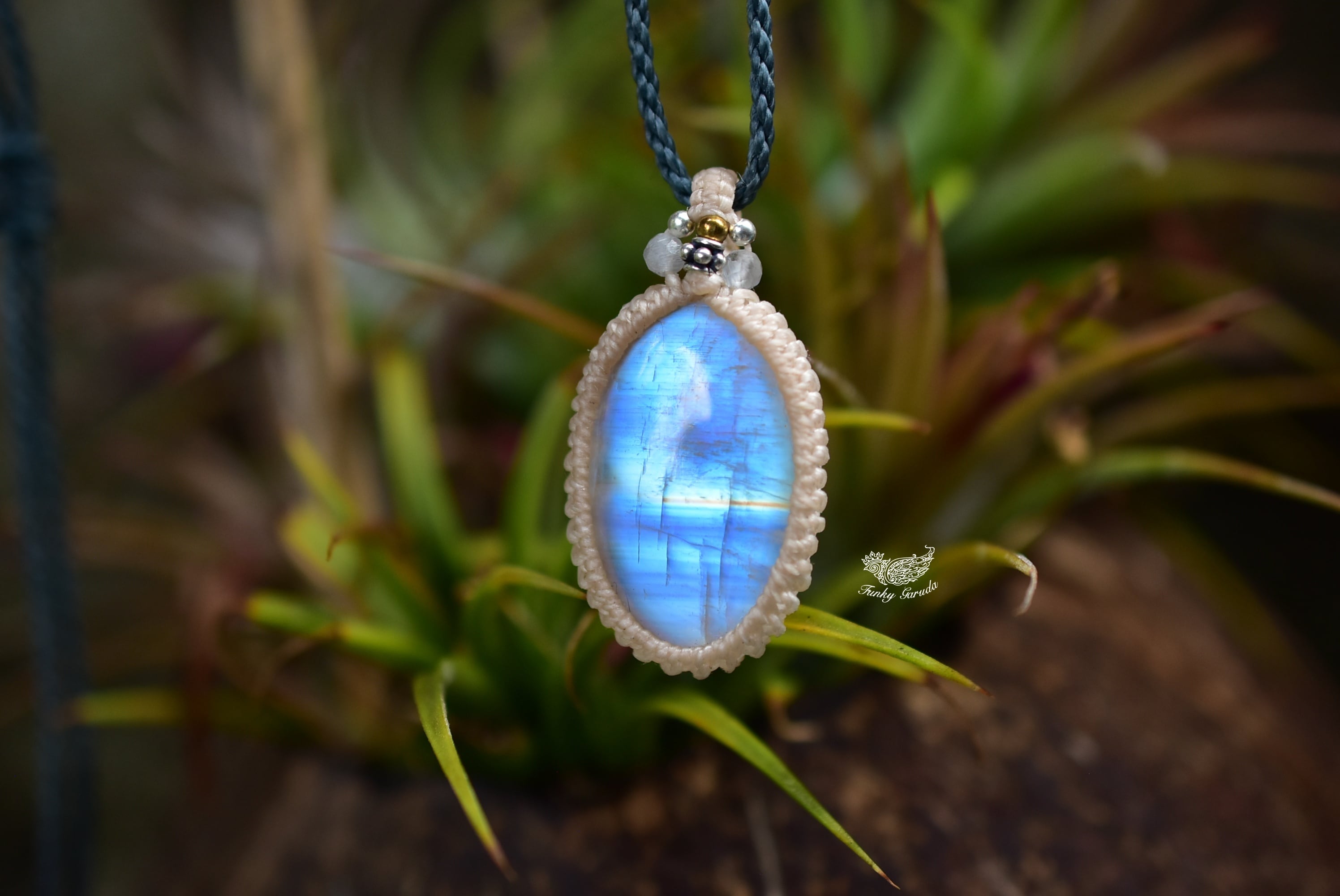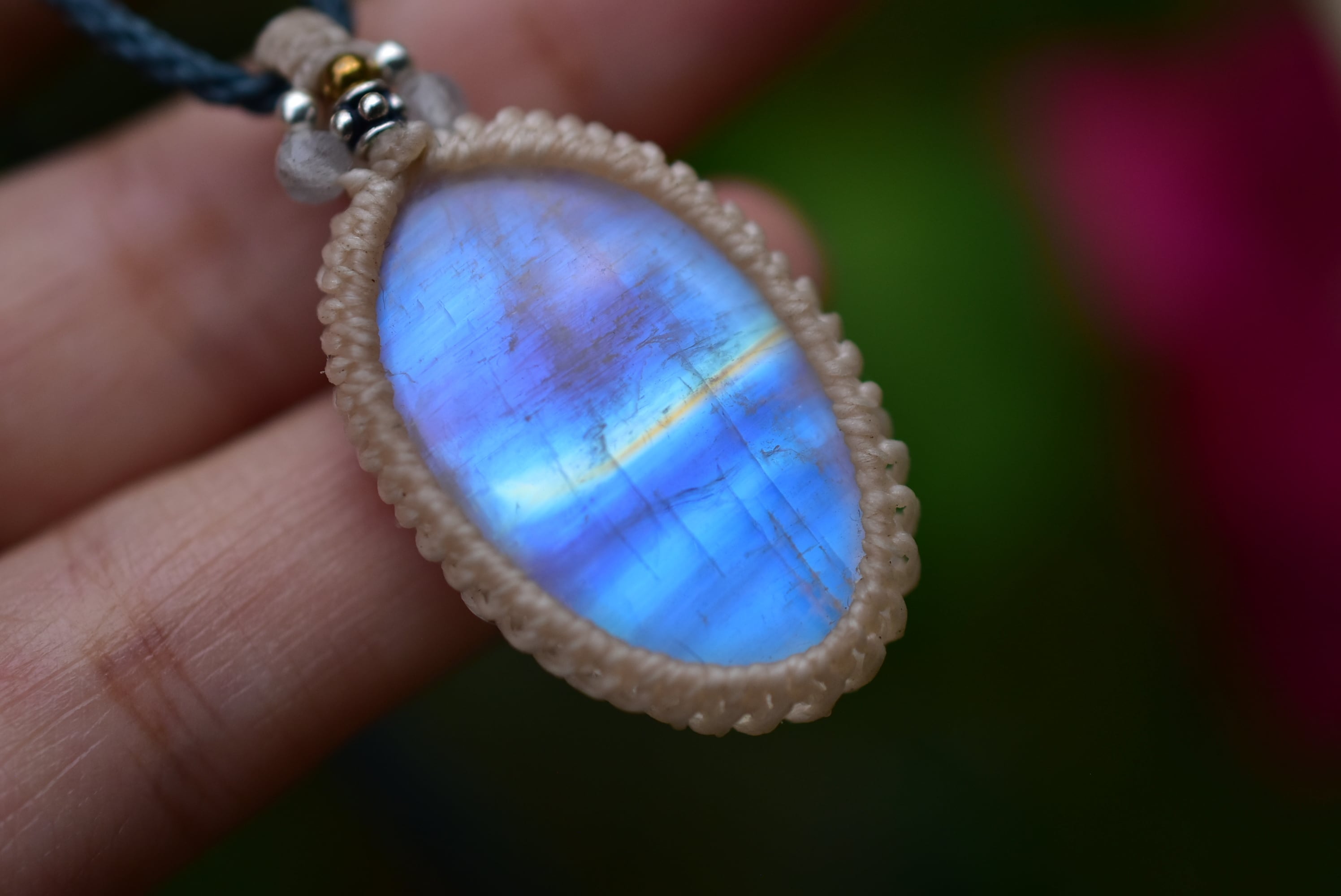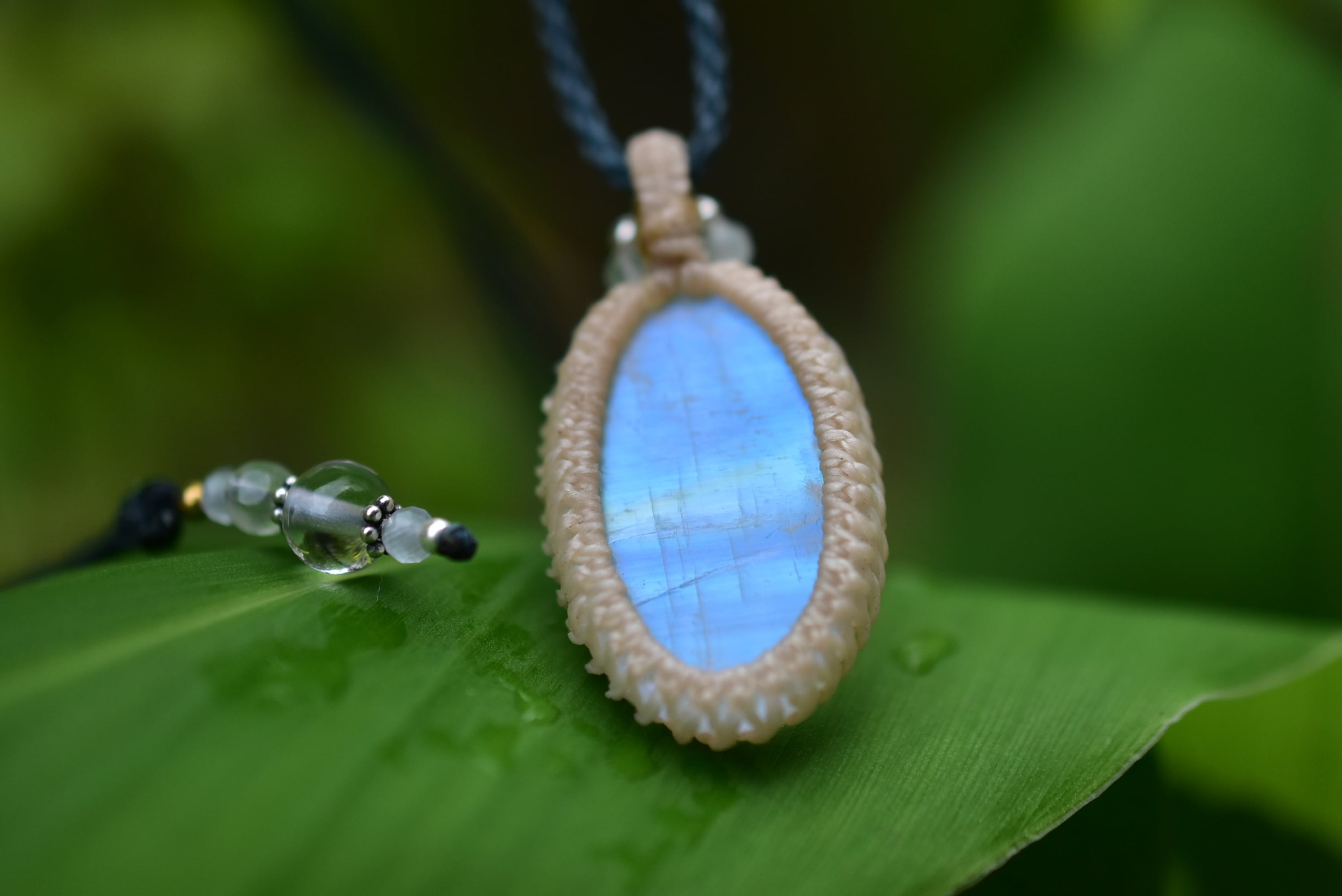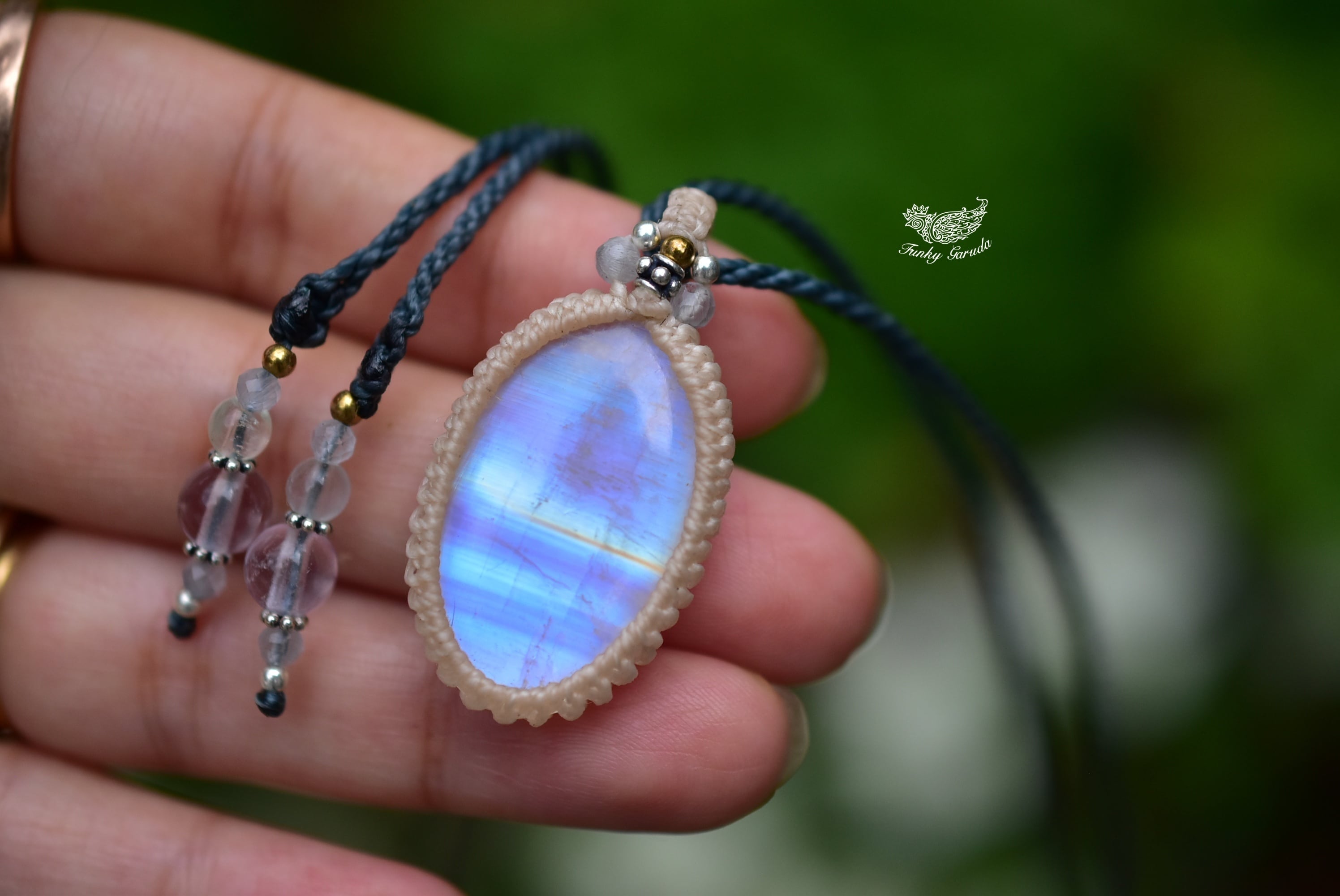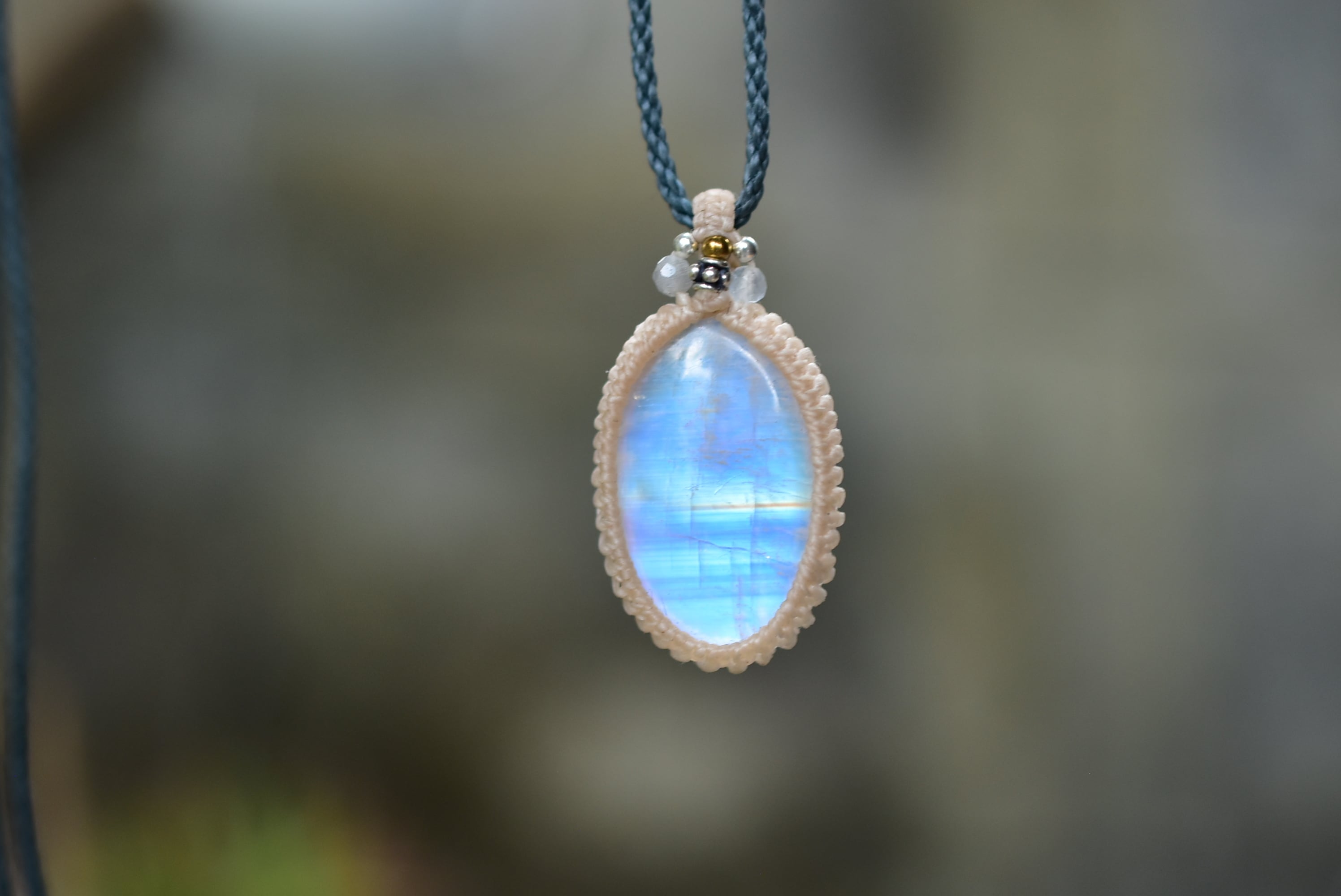 虹色グラデーション★高品質★レインボームーンストーン マクラメネックレス700
