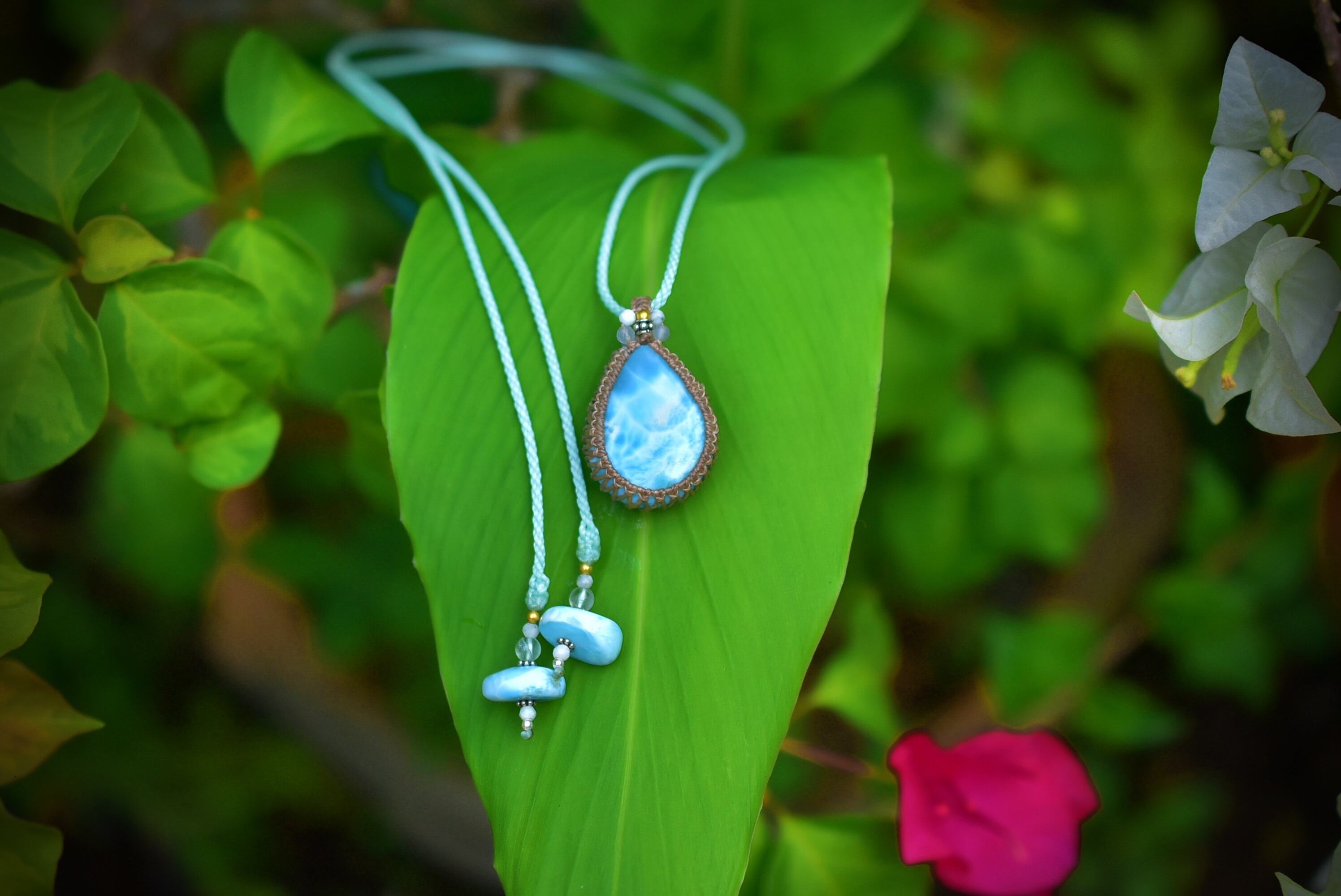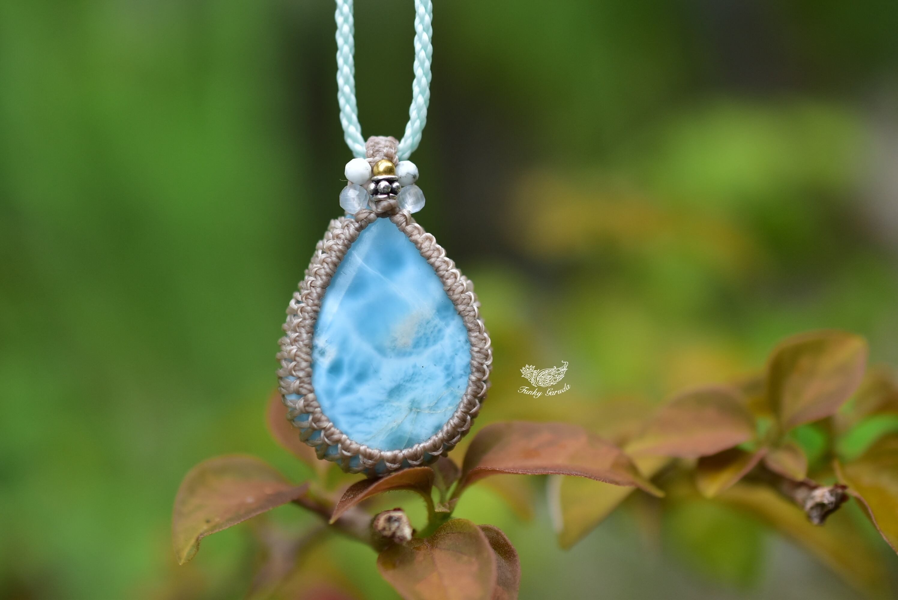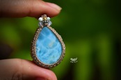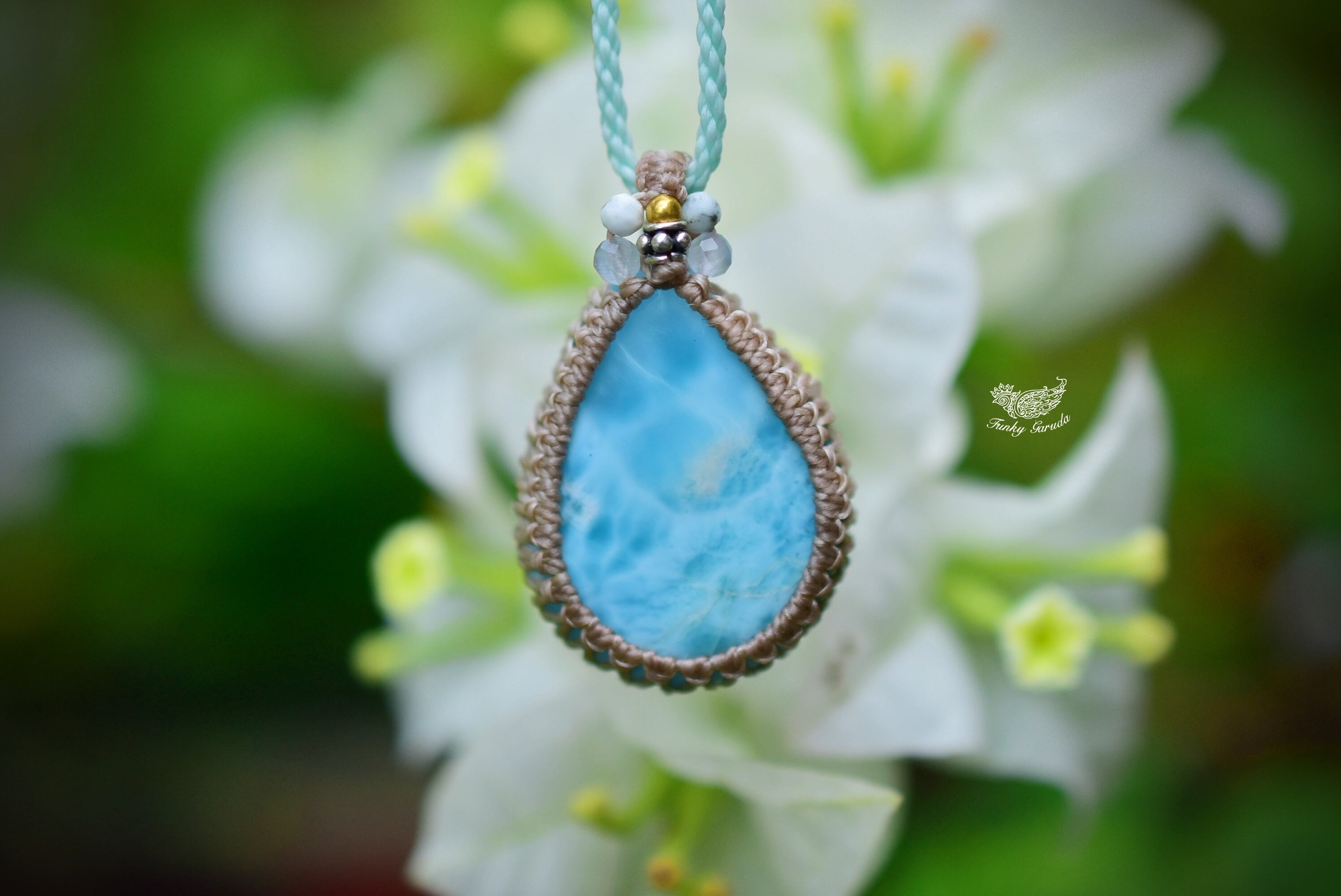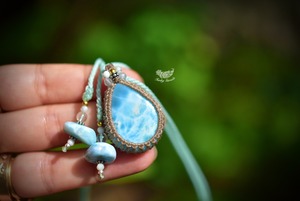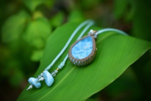 ラリマー特有のシャトヤンシー、グリーンカラー、ブルーの模様