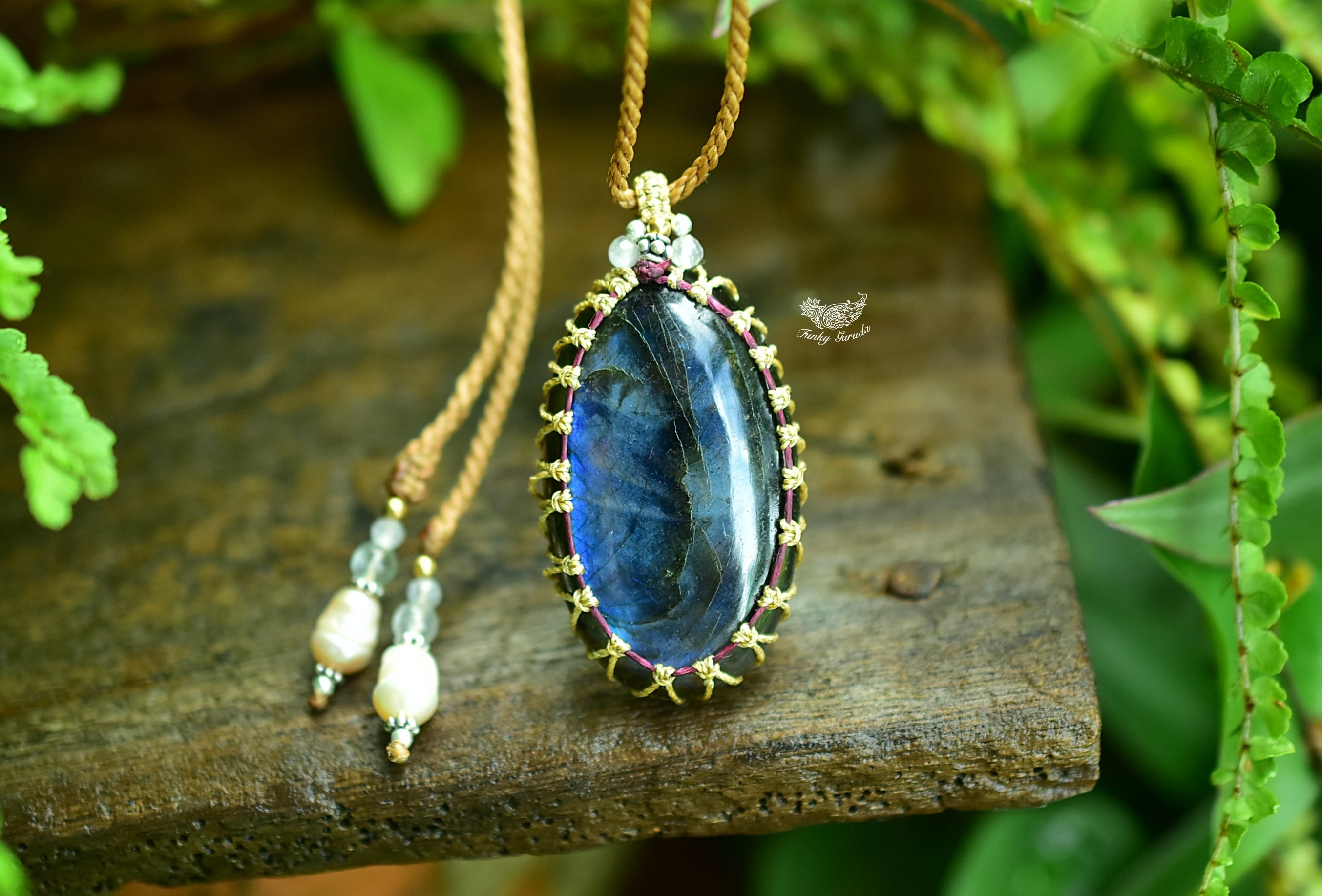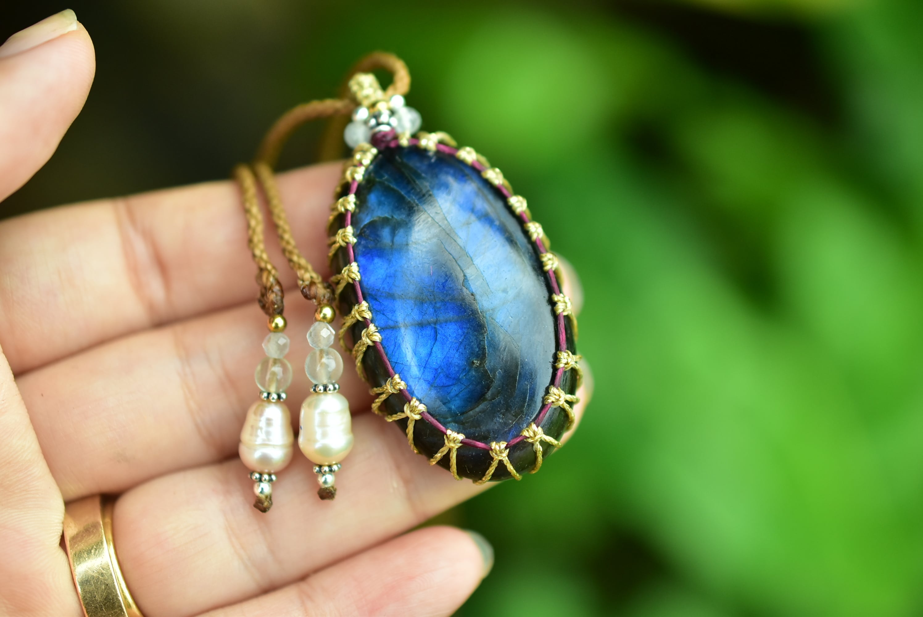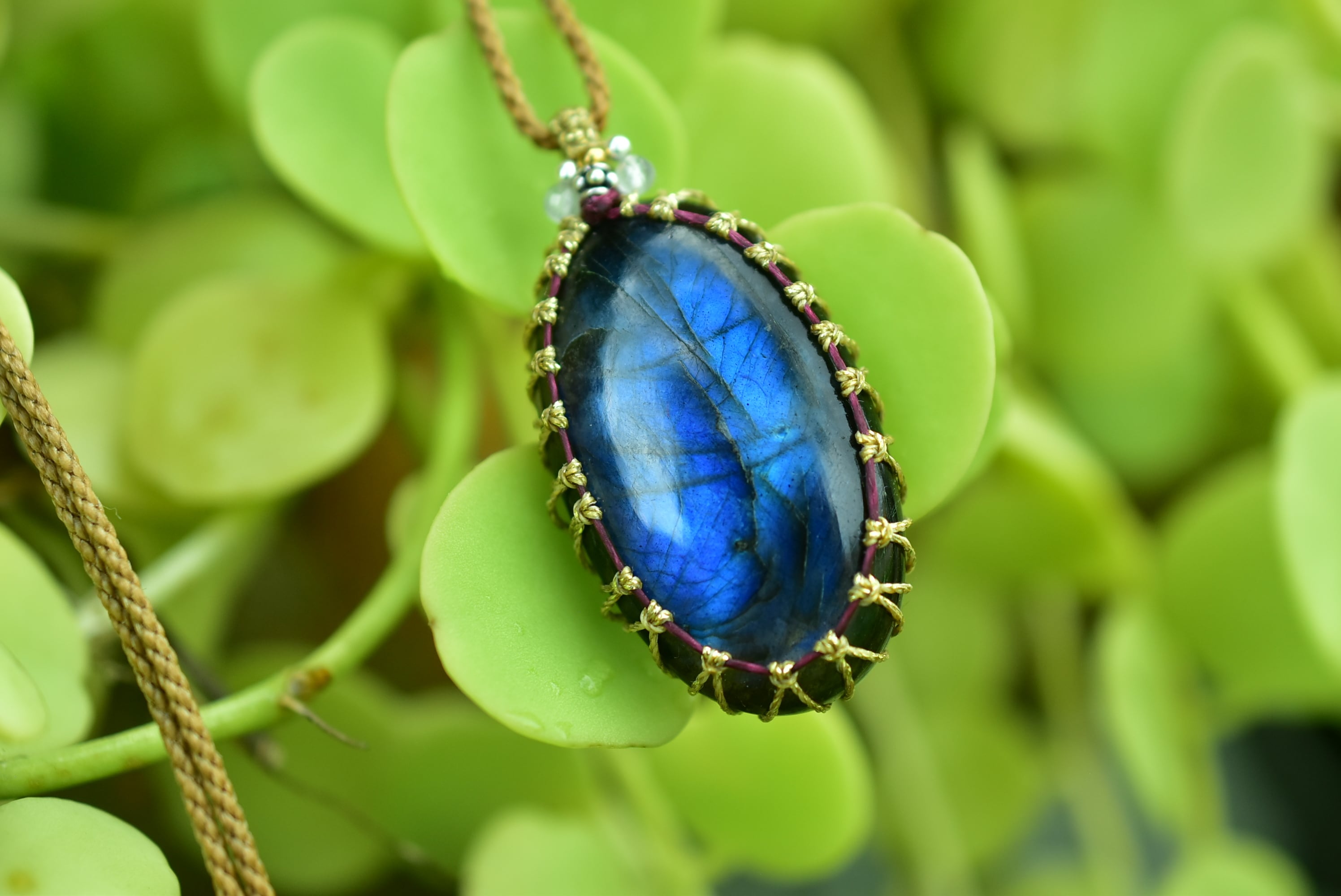 鮮やか気質★高品質★ブルーラブラドライト マクラメネックレス708