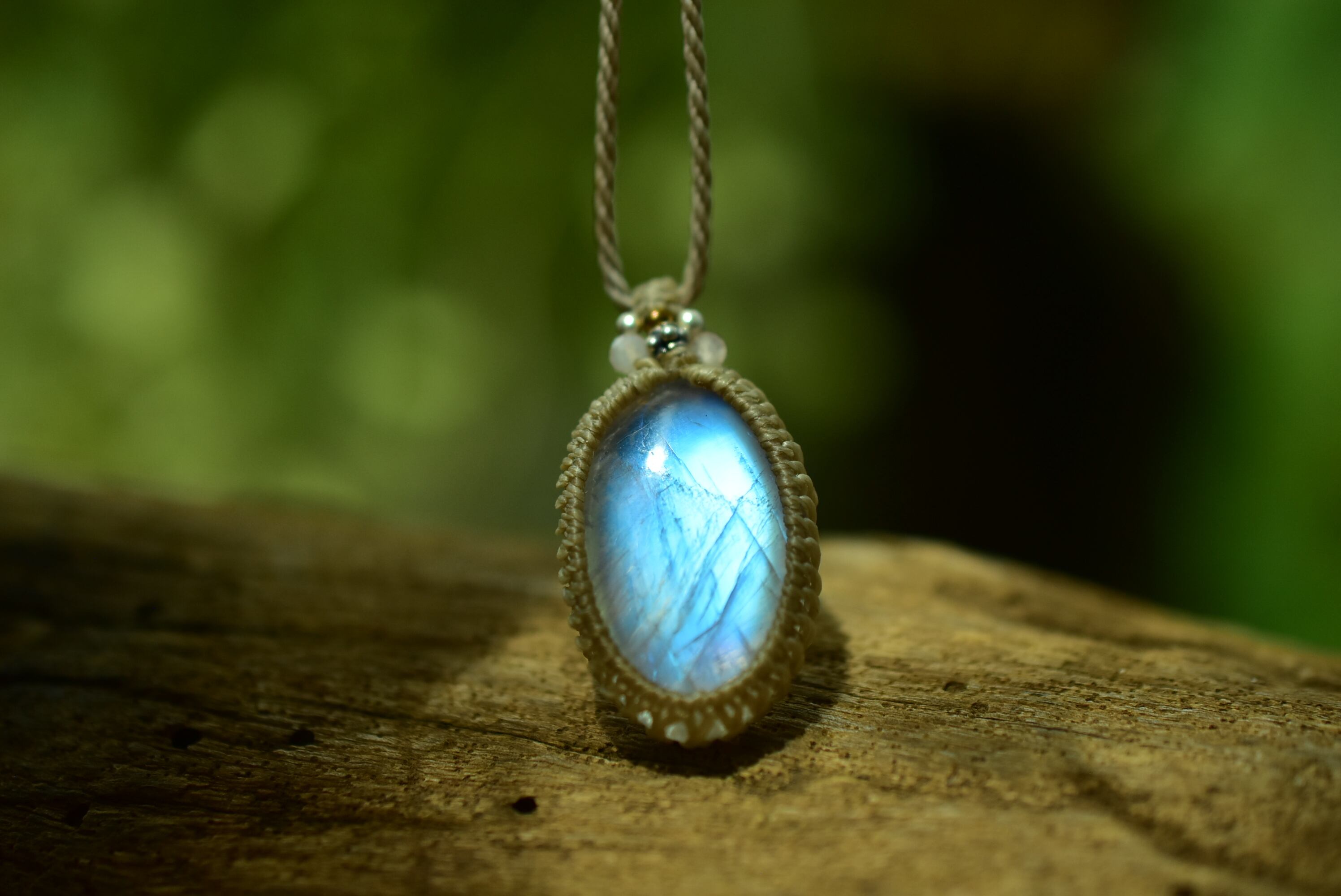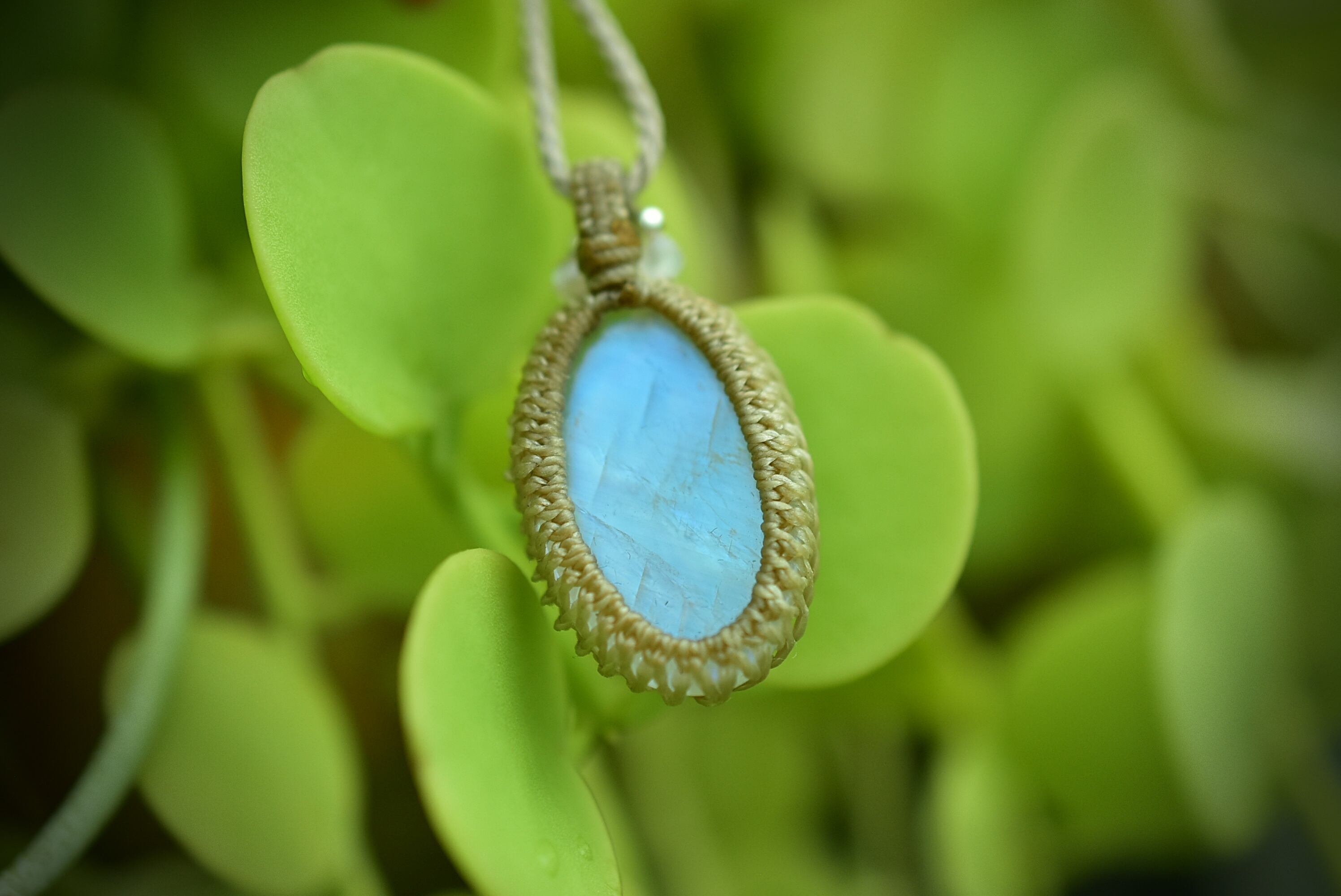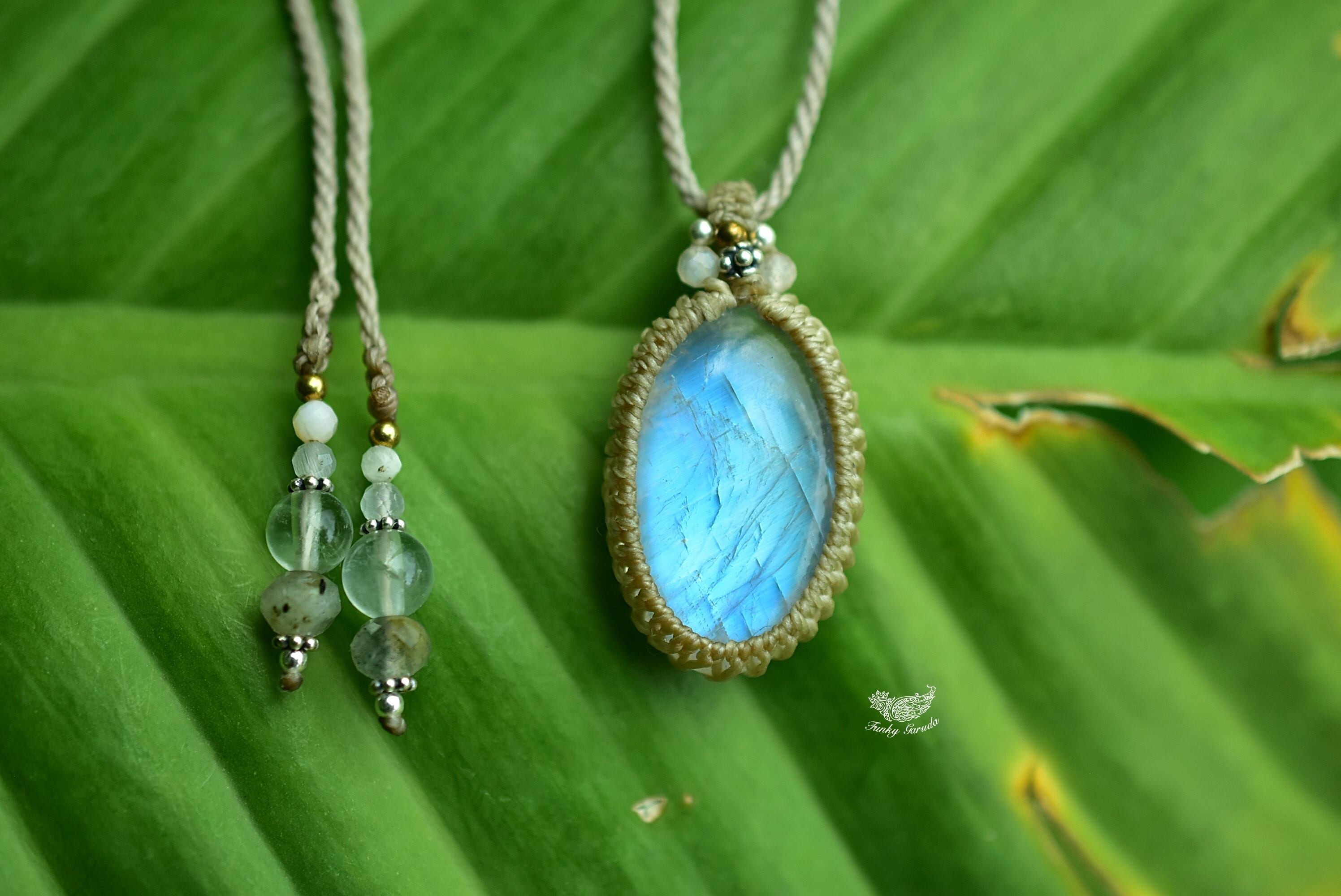 幻想ブルー★高品質★レインボームーンストーン マクラメペンダント714