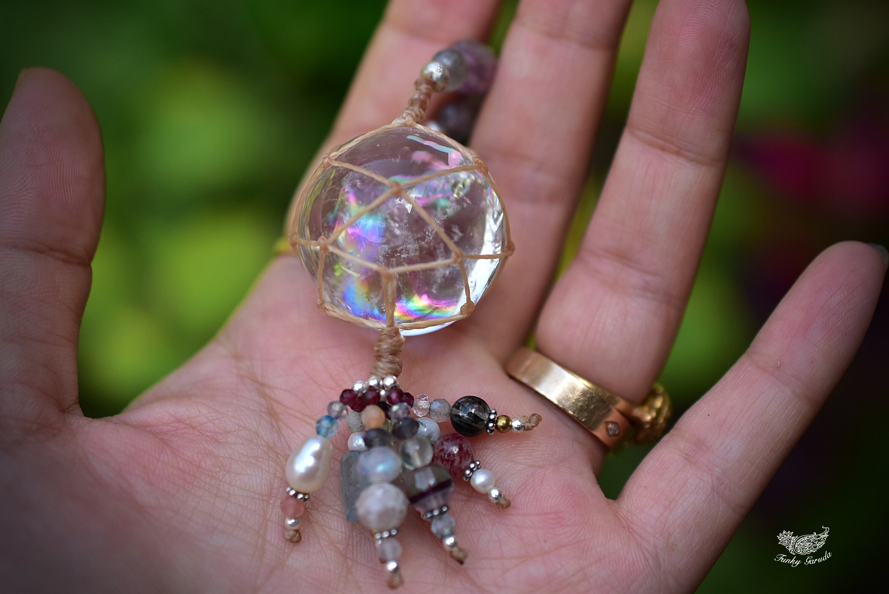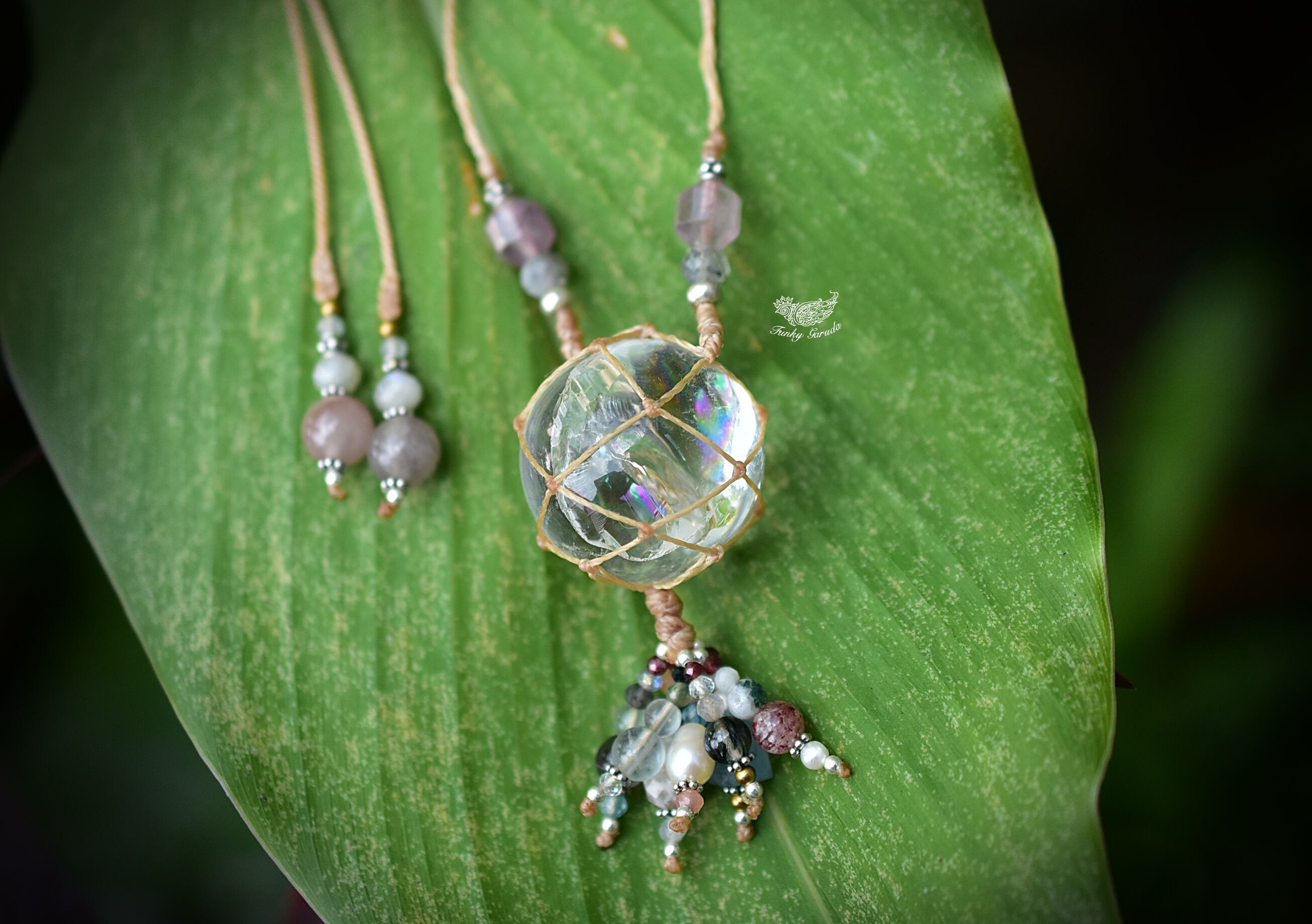 クリスタルボール★レインボークォーツ マクラメネックレス717
