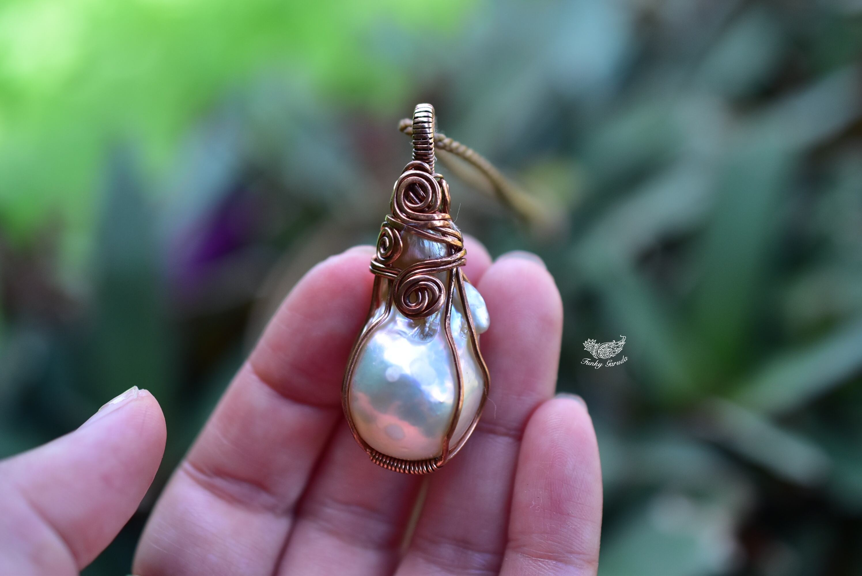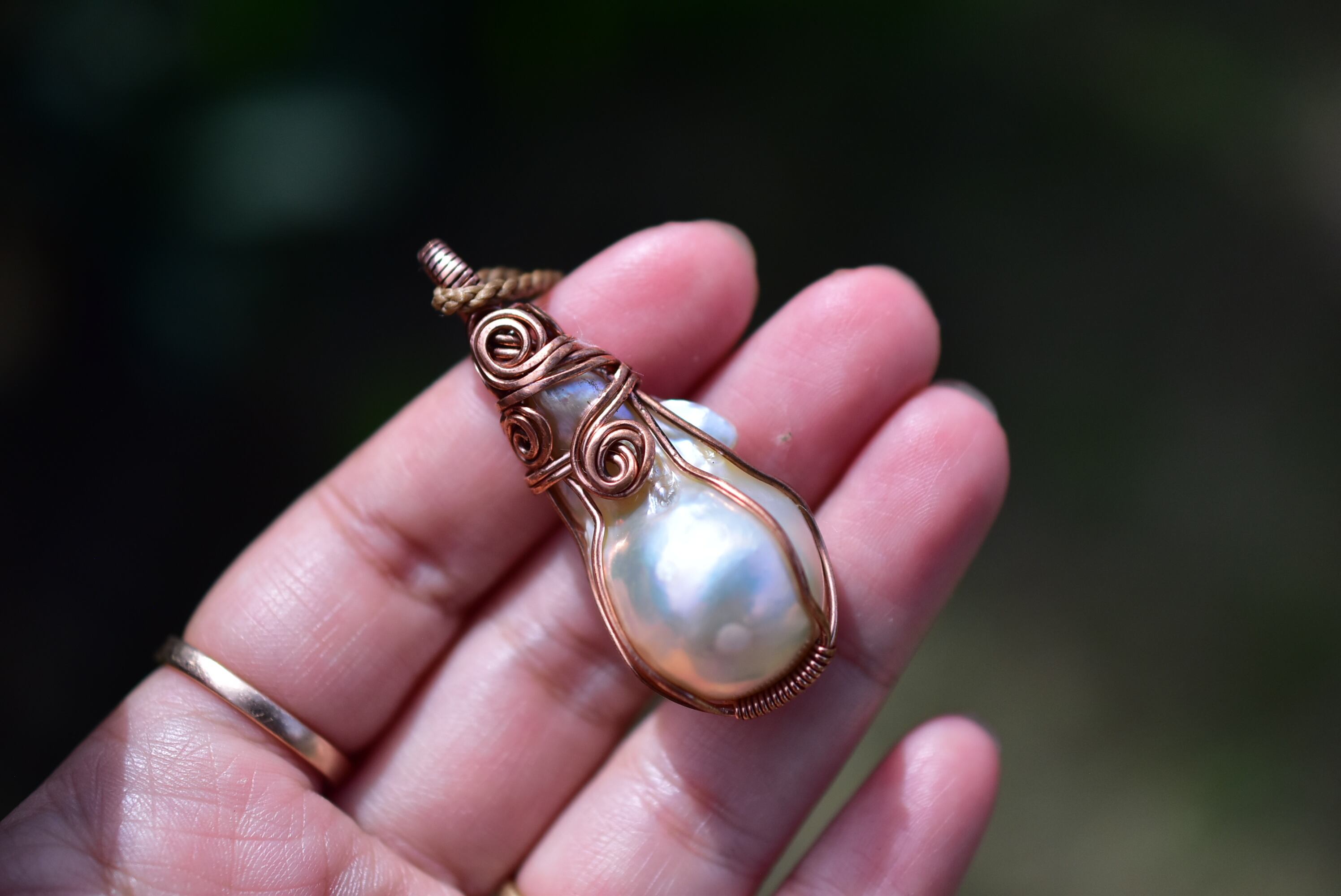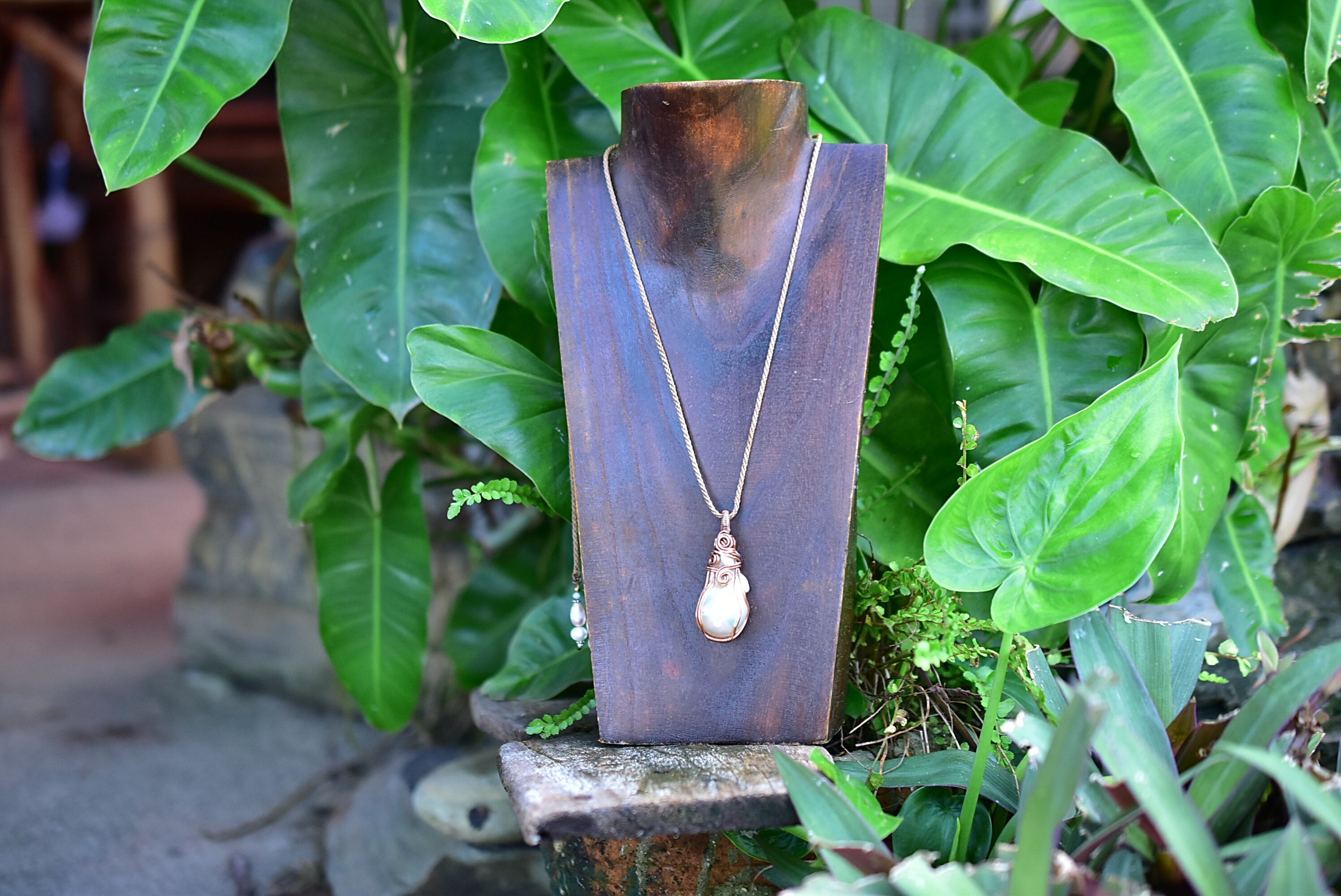 ナチュラルシェイプ★wire wrapping 大きな天然真珠ネックレス732
