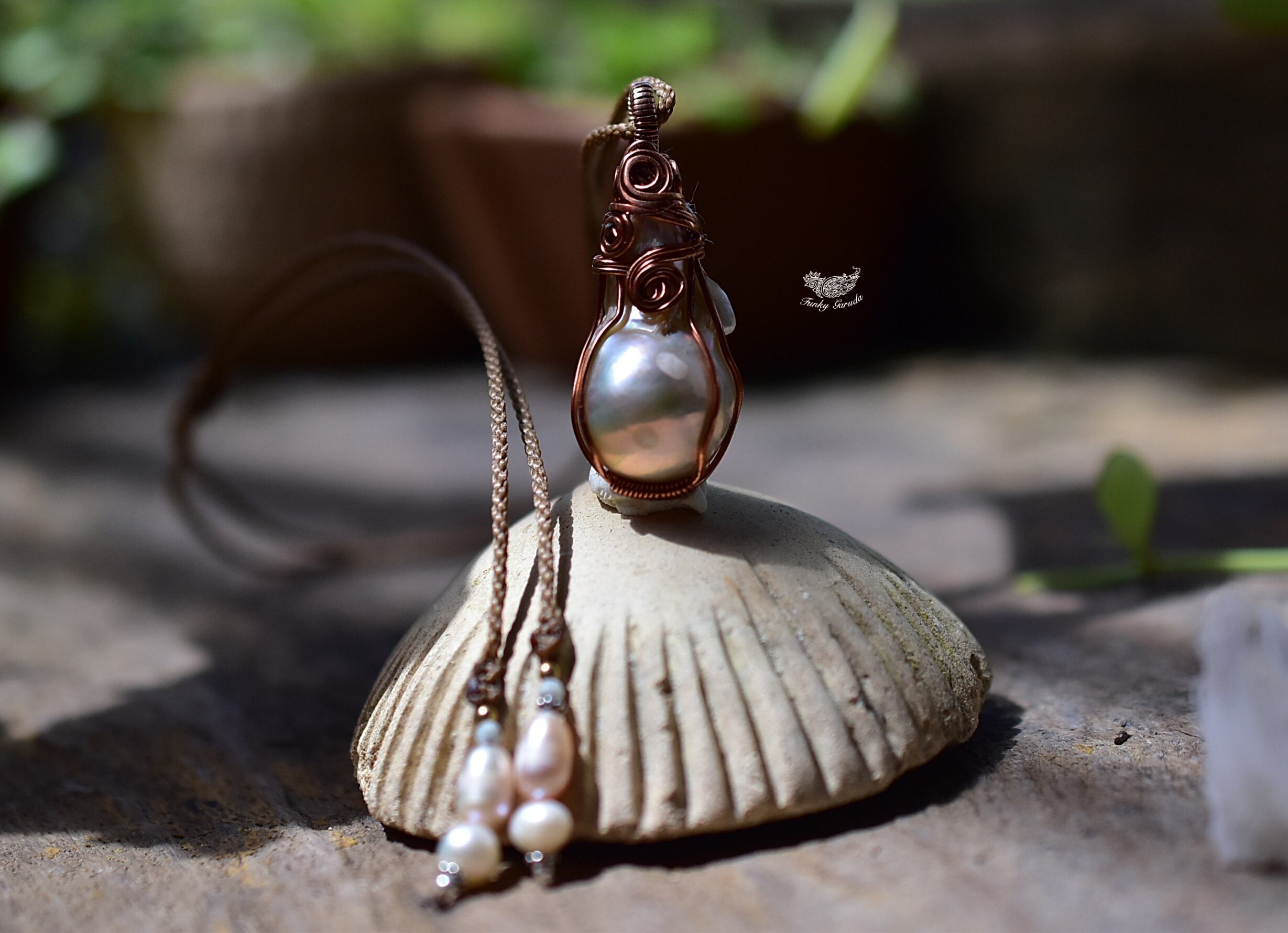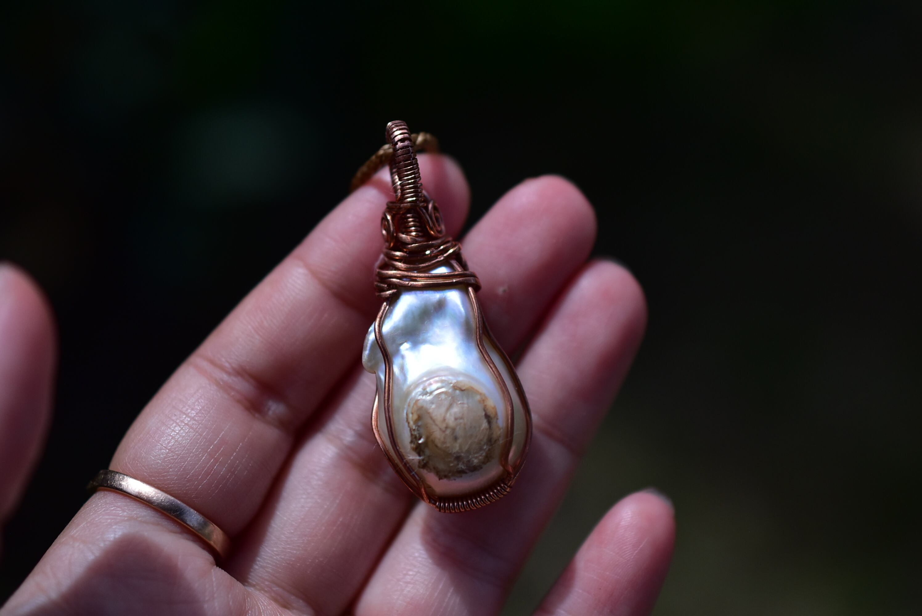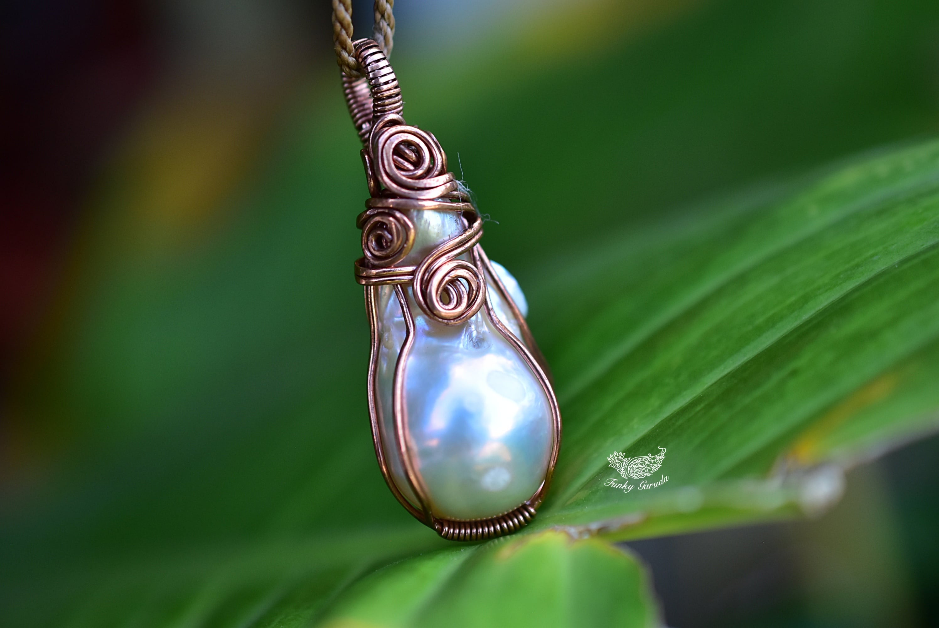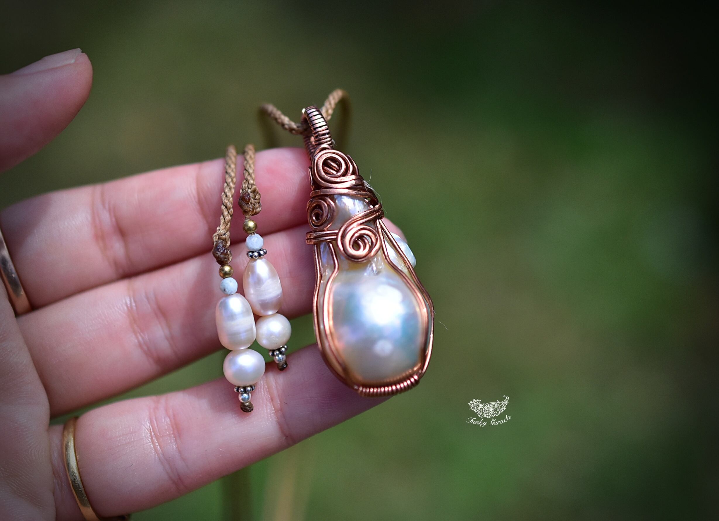 ナチュラルシェイプ★wire wrapping 大きな天然真珠ネックレス732