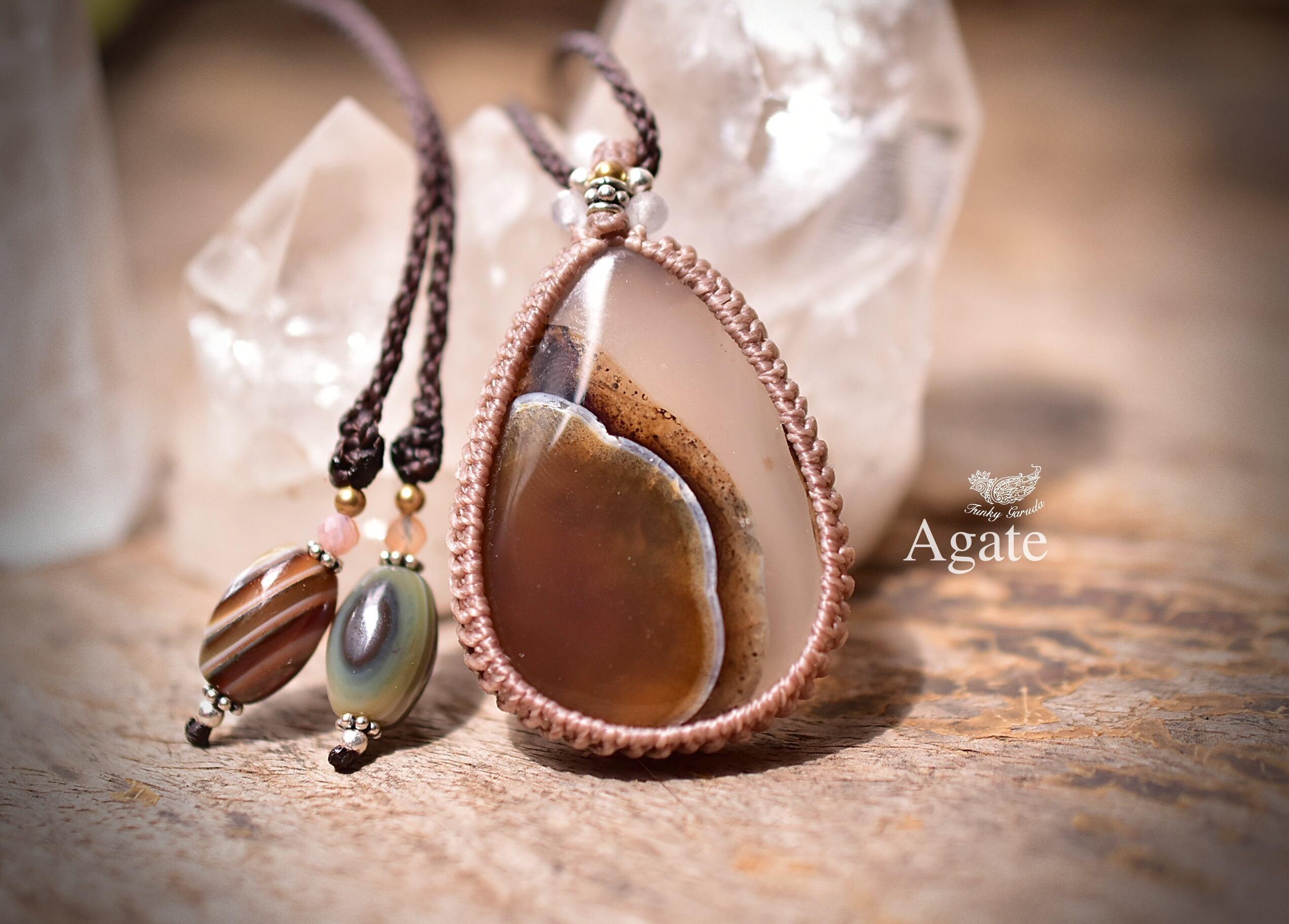 アゲードはあらゆることの結びつきを強める石と言われています。グループなどのまとまりを強くする為にも有益な石です。願望実現の石・子宝に恵まれる石とも言われています。アゲートは種類が多く、中には紫外線に弱いものがあります。