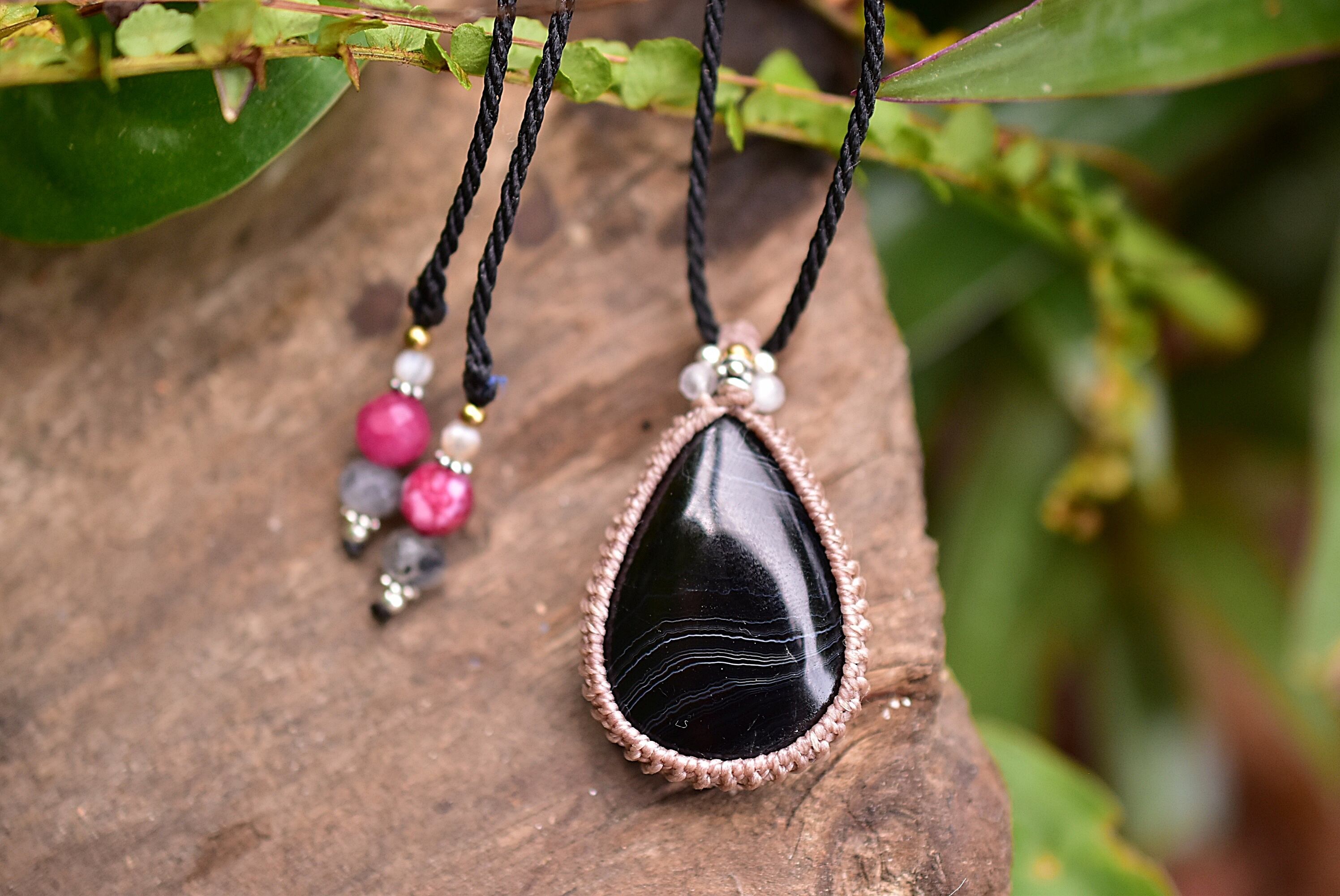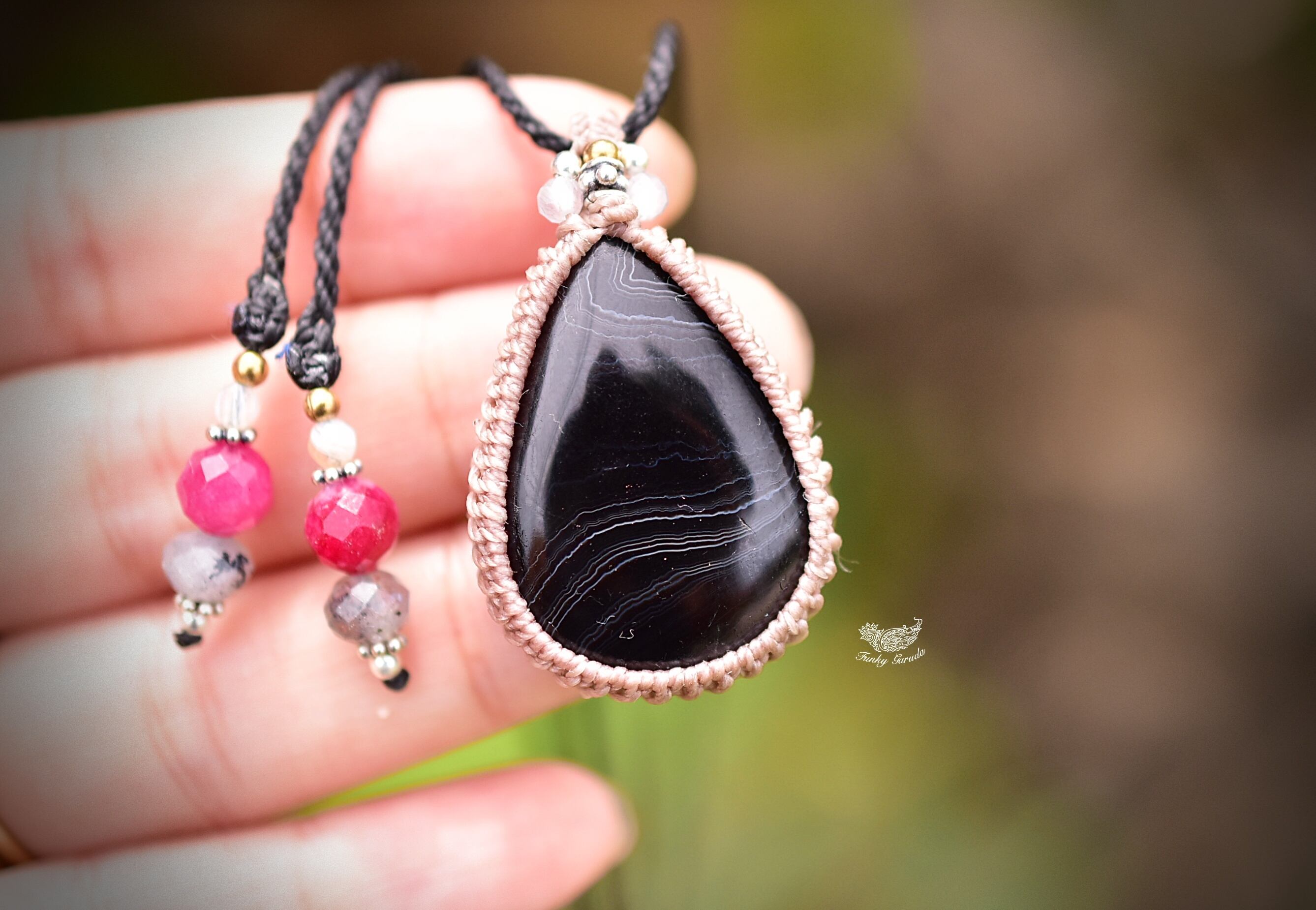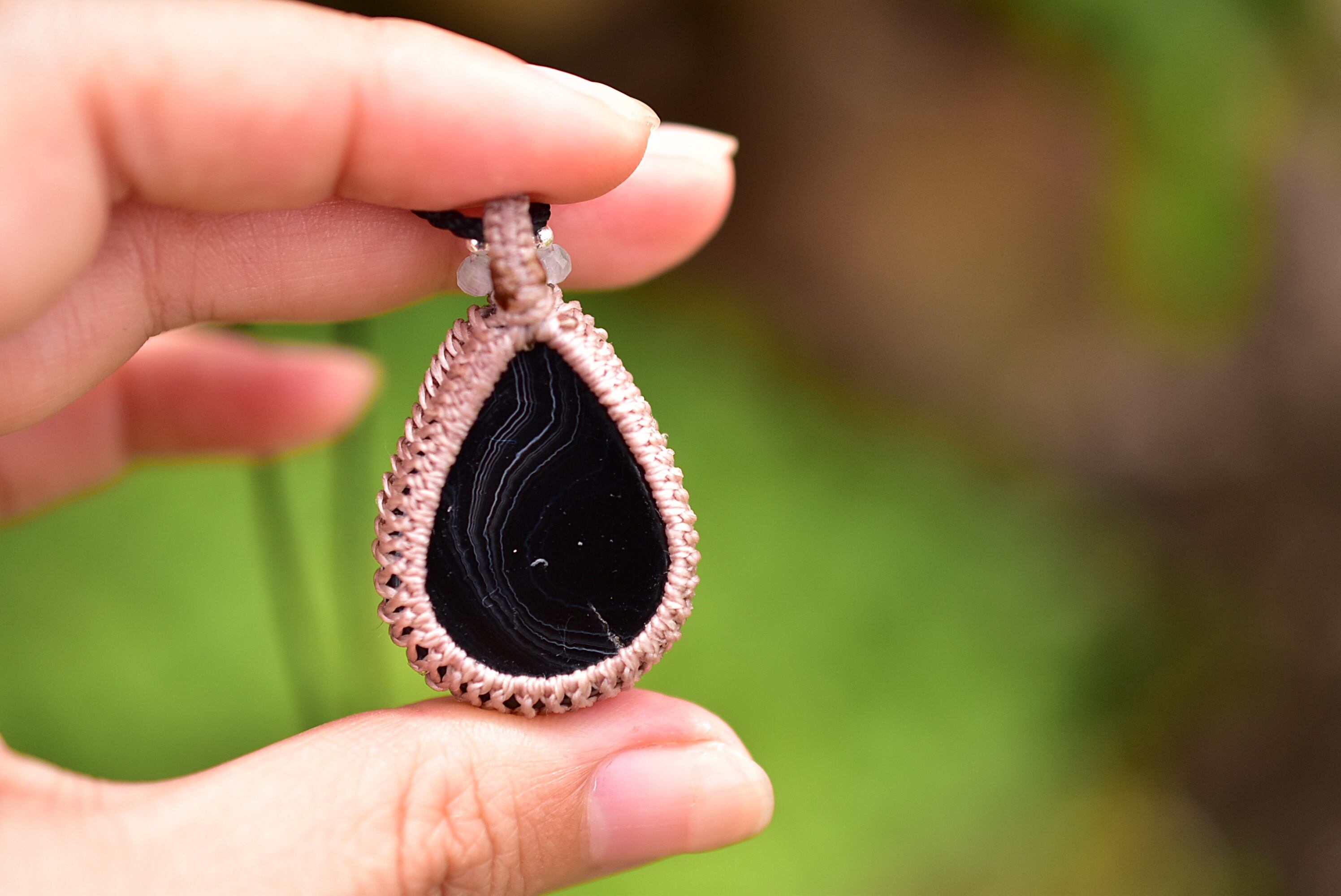 流れのアート★瑪瑙★ブラックアゲート マクラメネックレス736