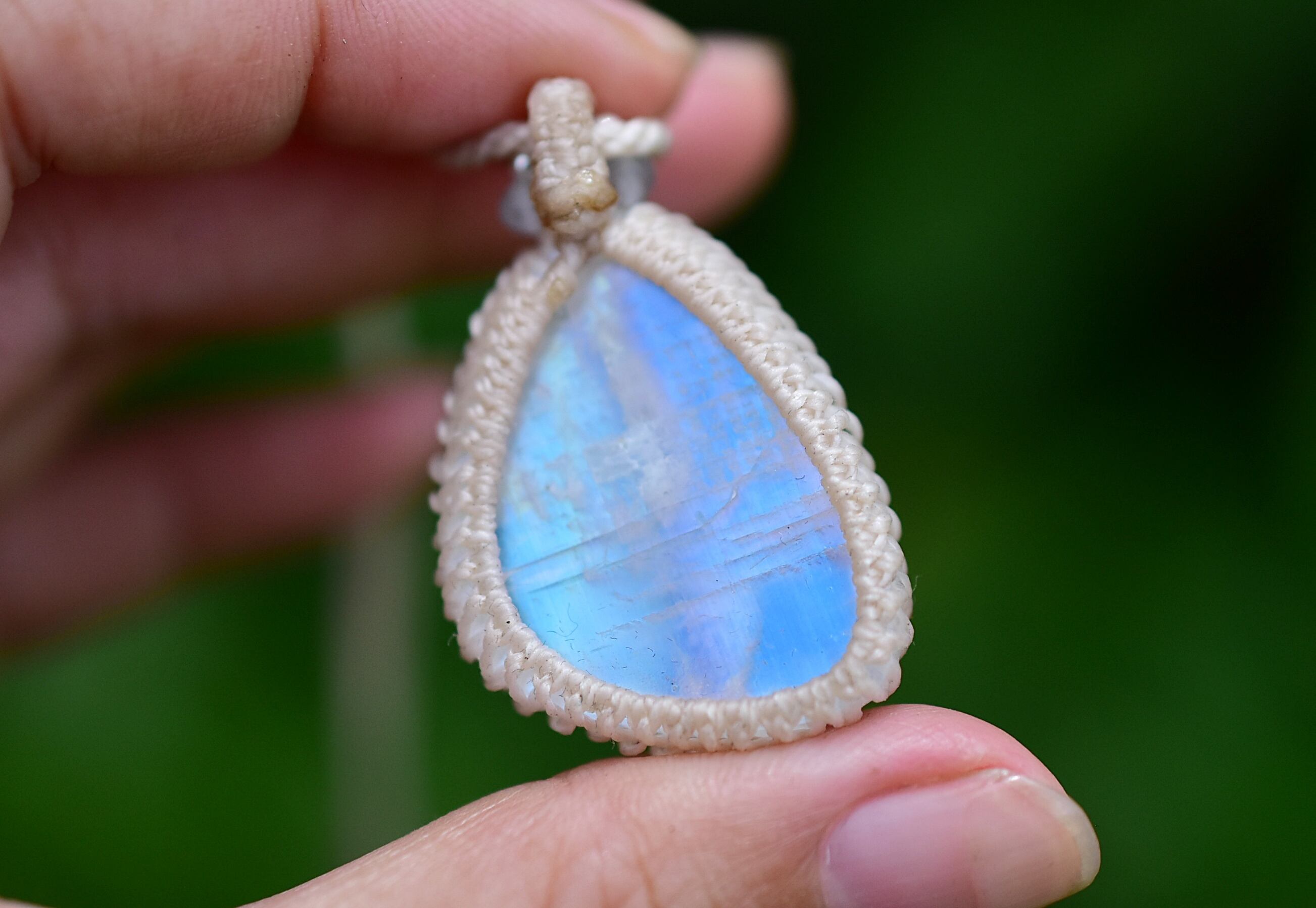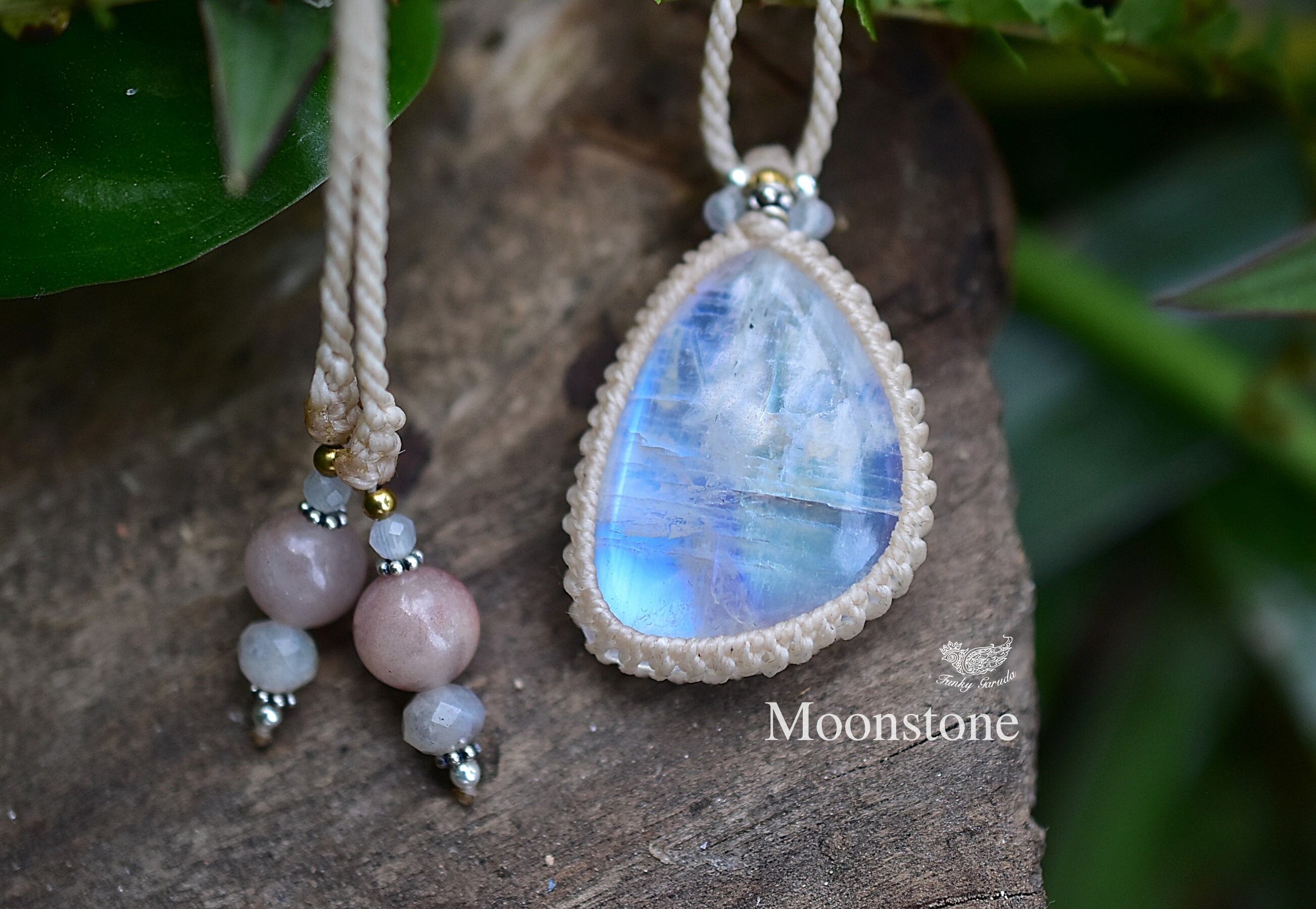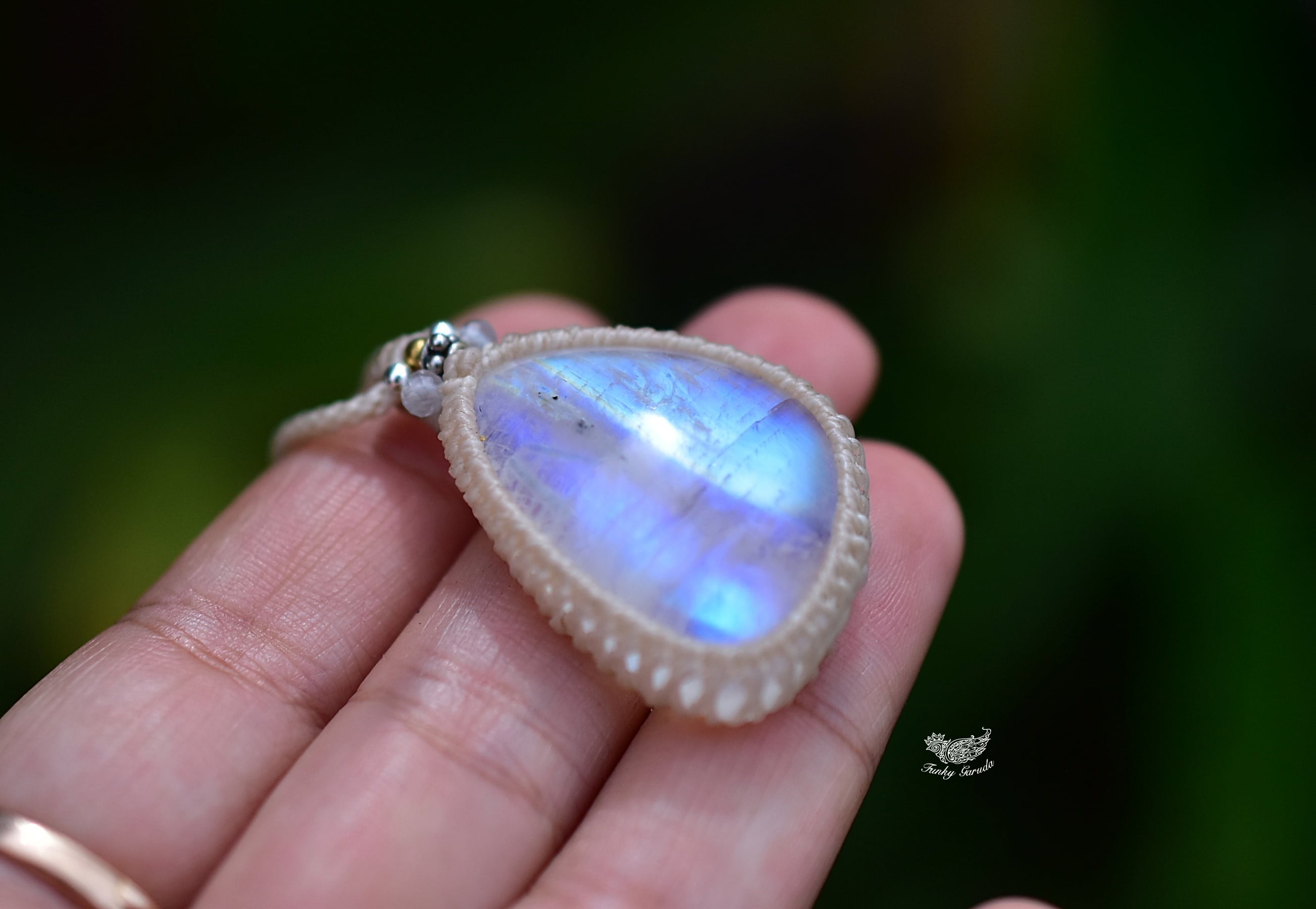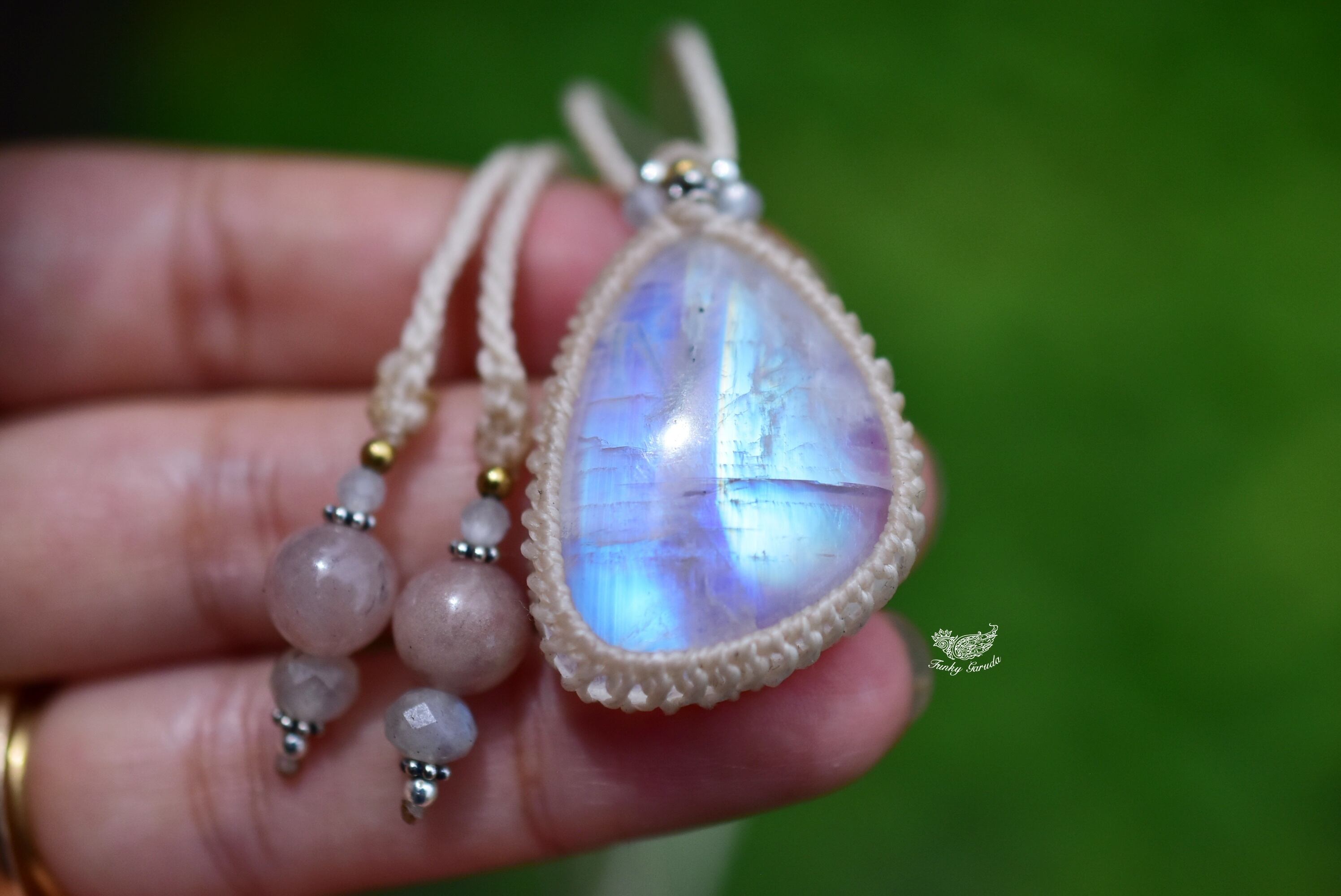 虹の3色★レインボームーンストーン マクラメネックレス740
