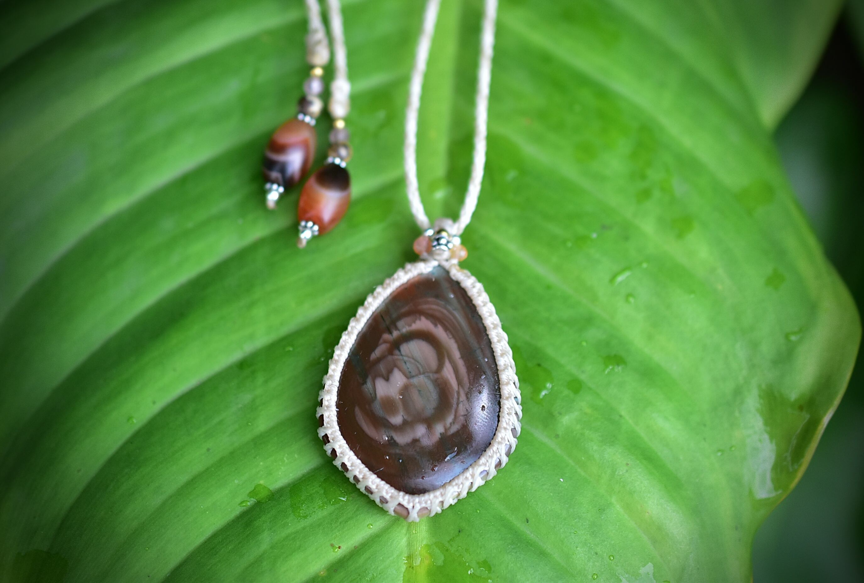 身につけた月に胸元をエキゾチックに彩るマクラメネックレス