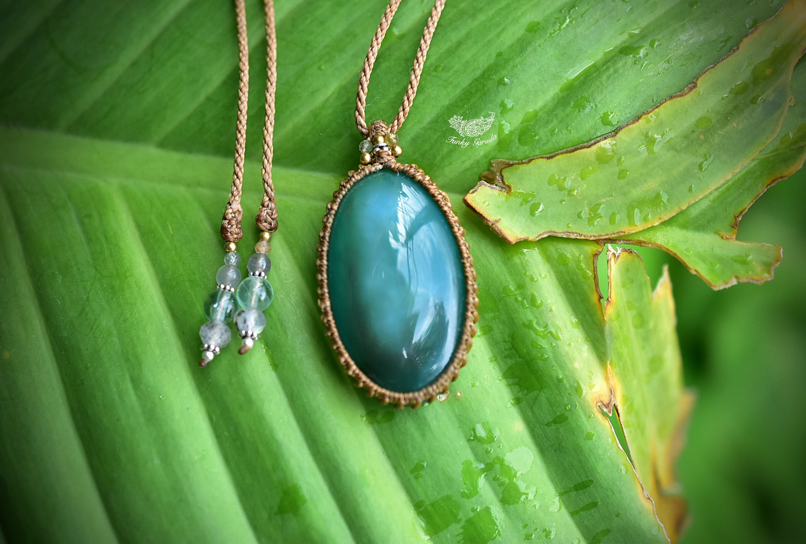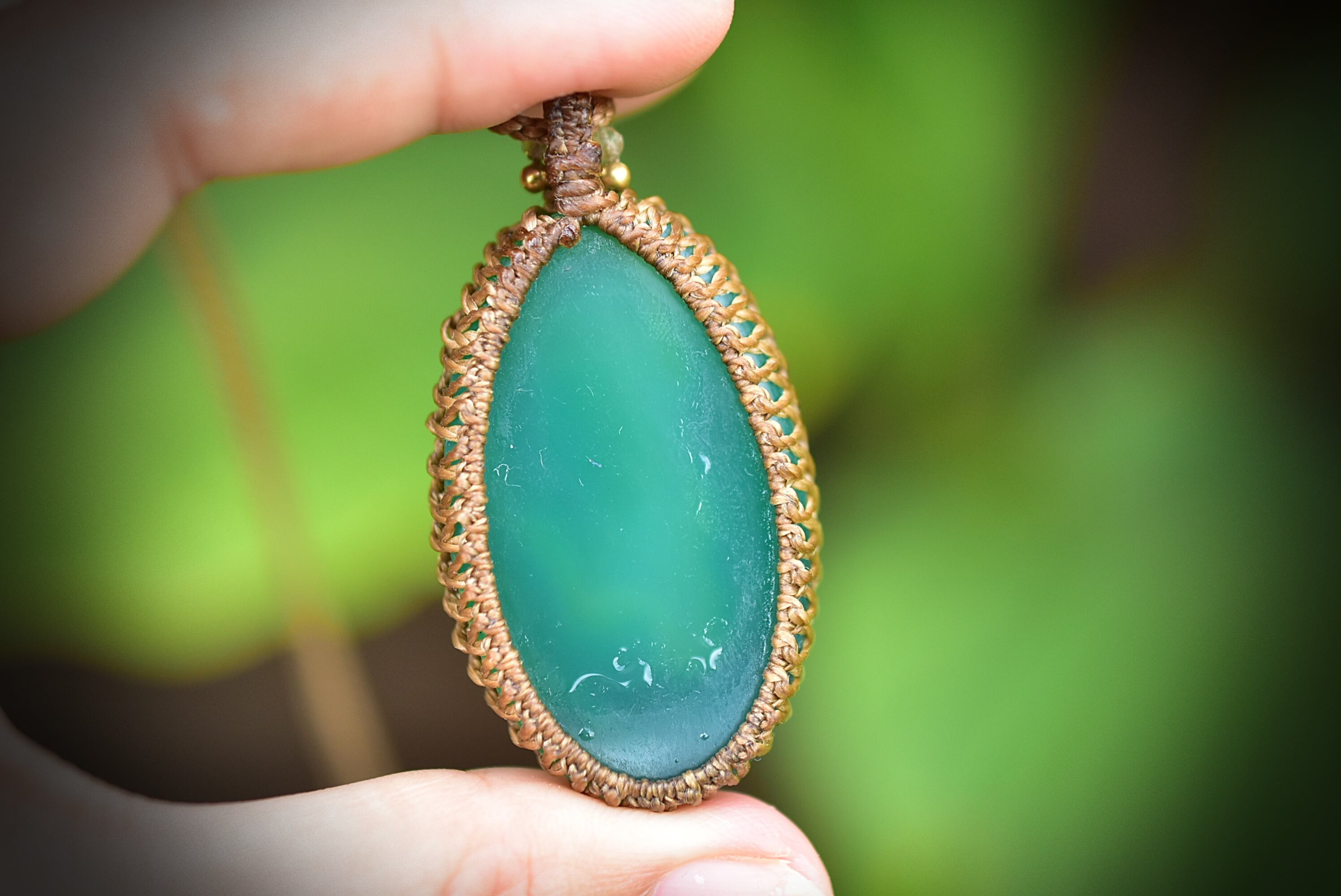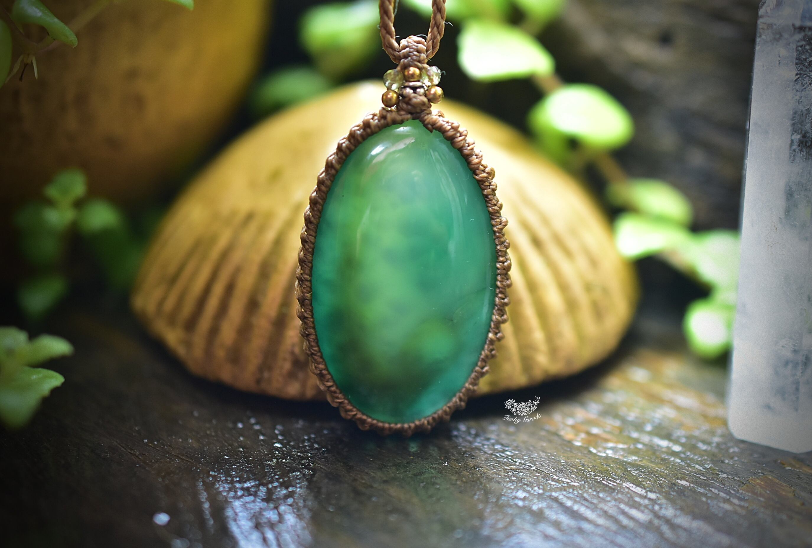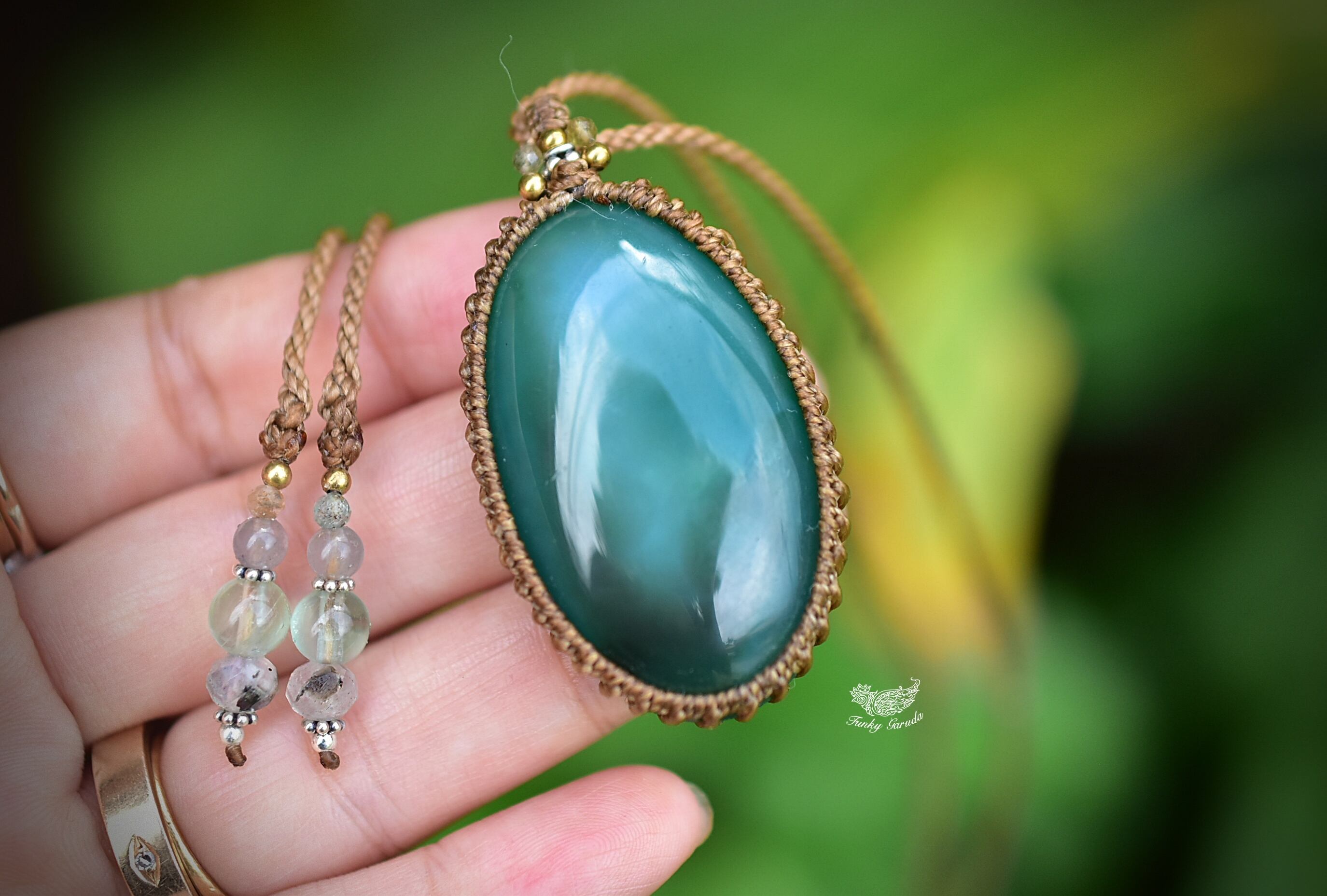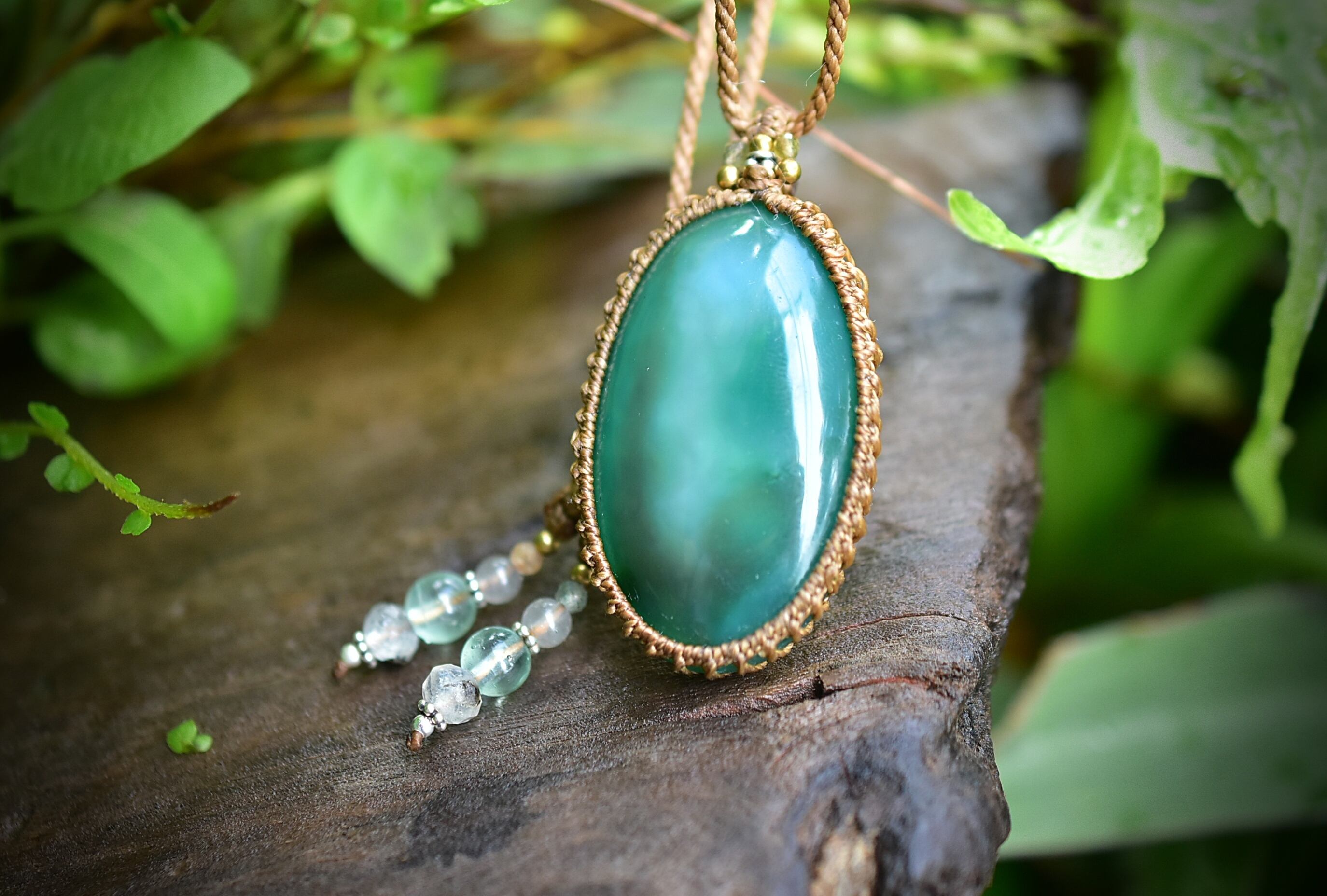 地球の緑★大粒★グリーンアゲート マクラメペンダント747