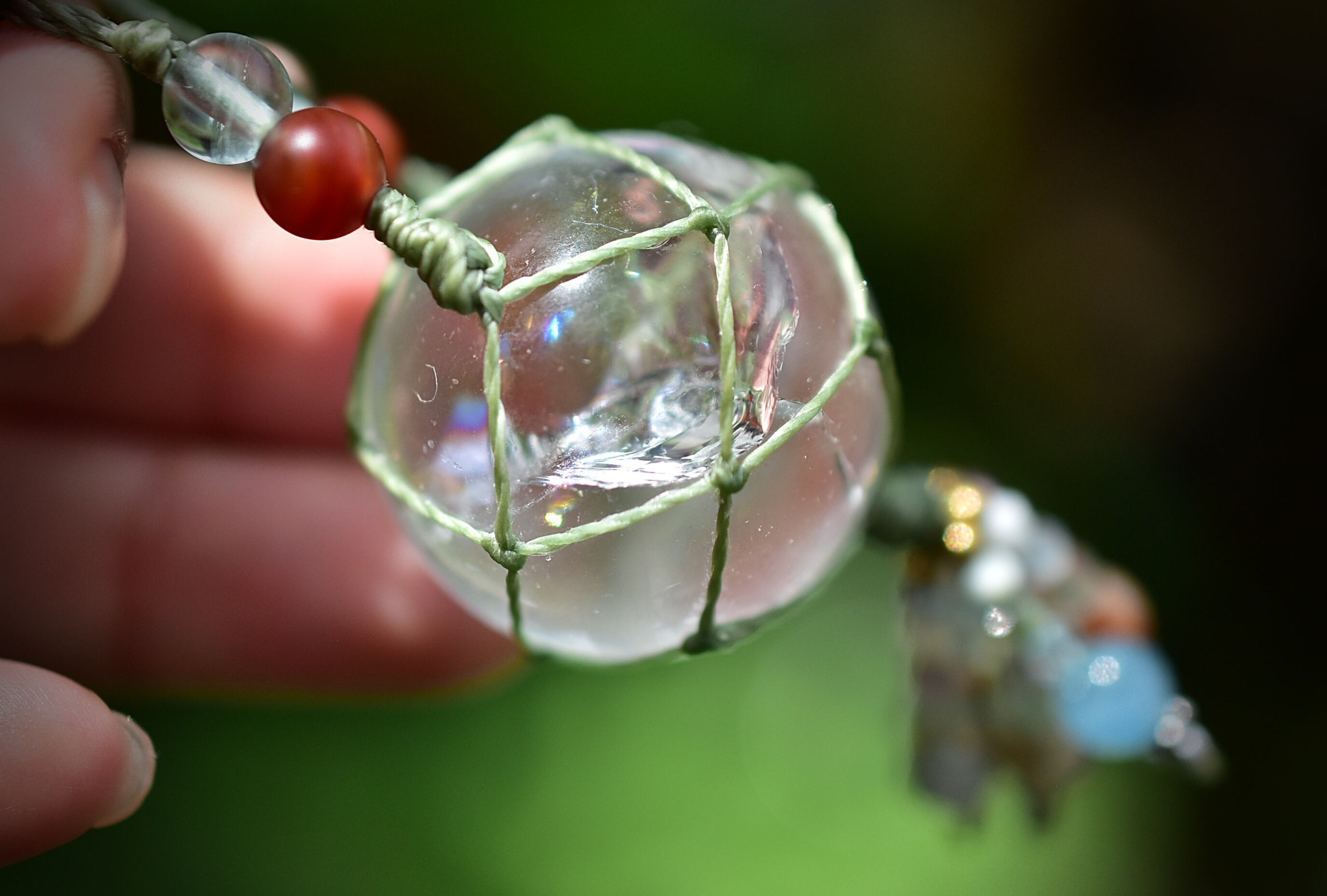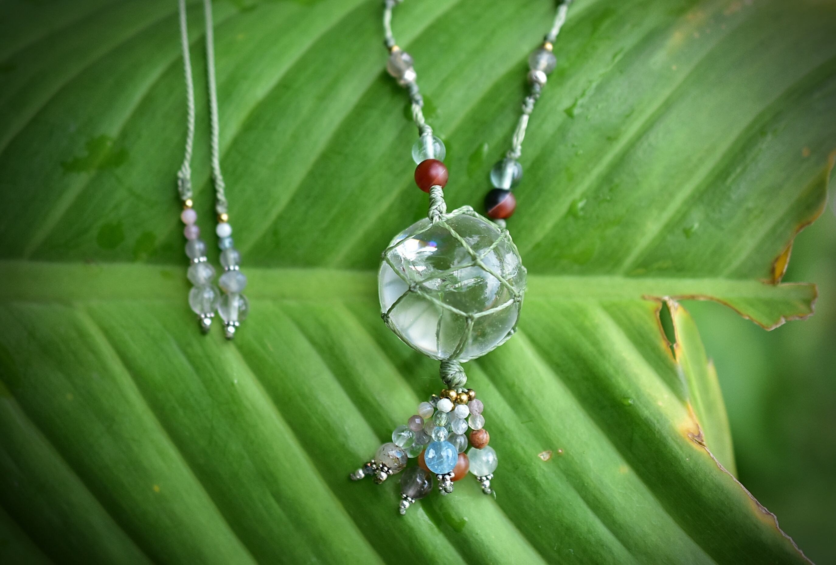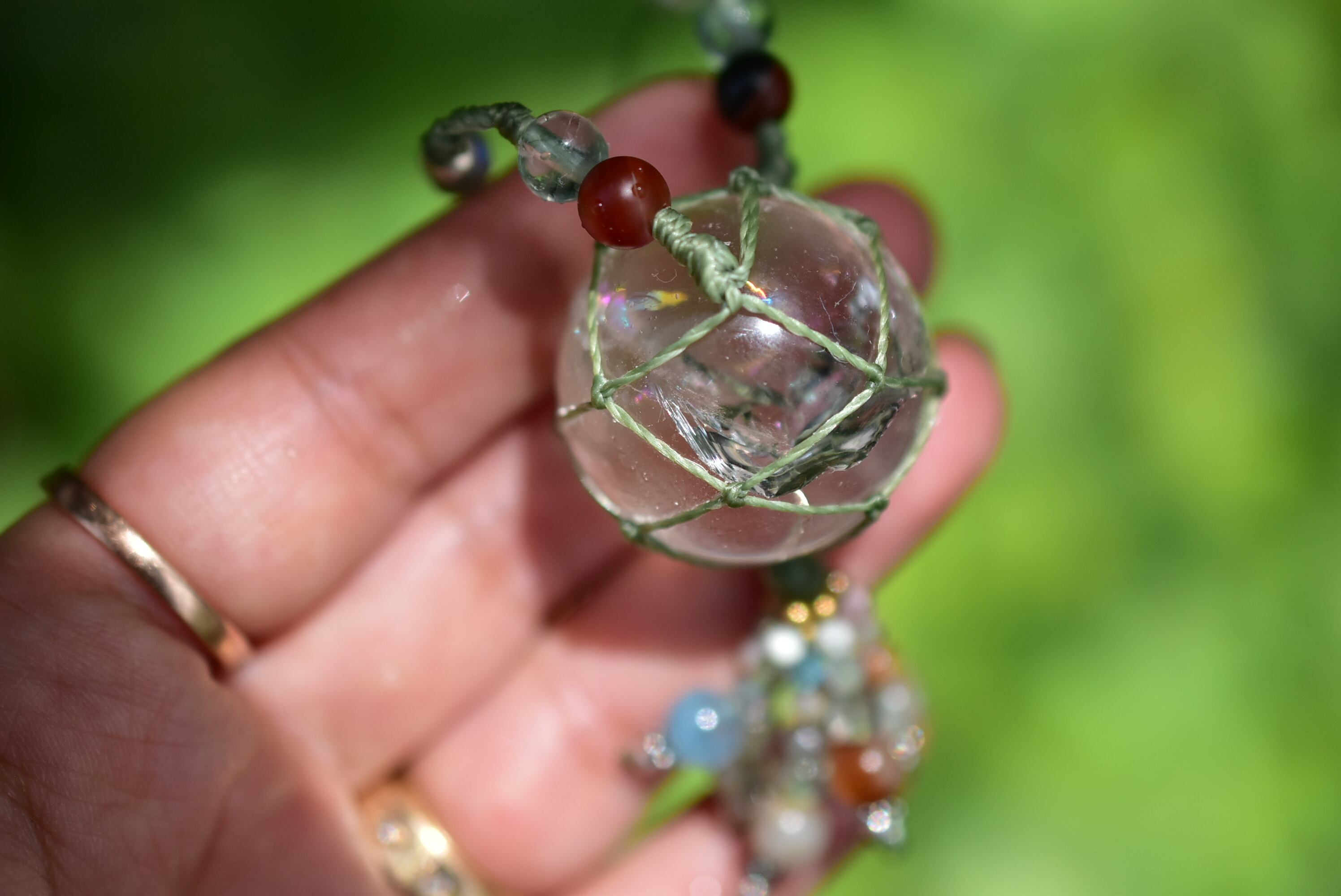 クリスタルボール★レインボークォーツ マクラメネックレス751