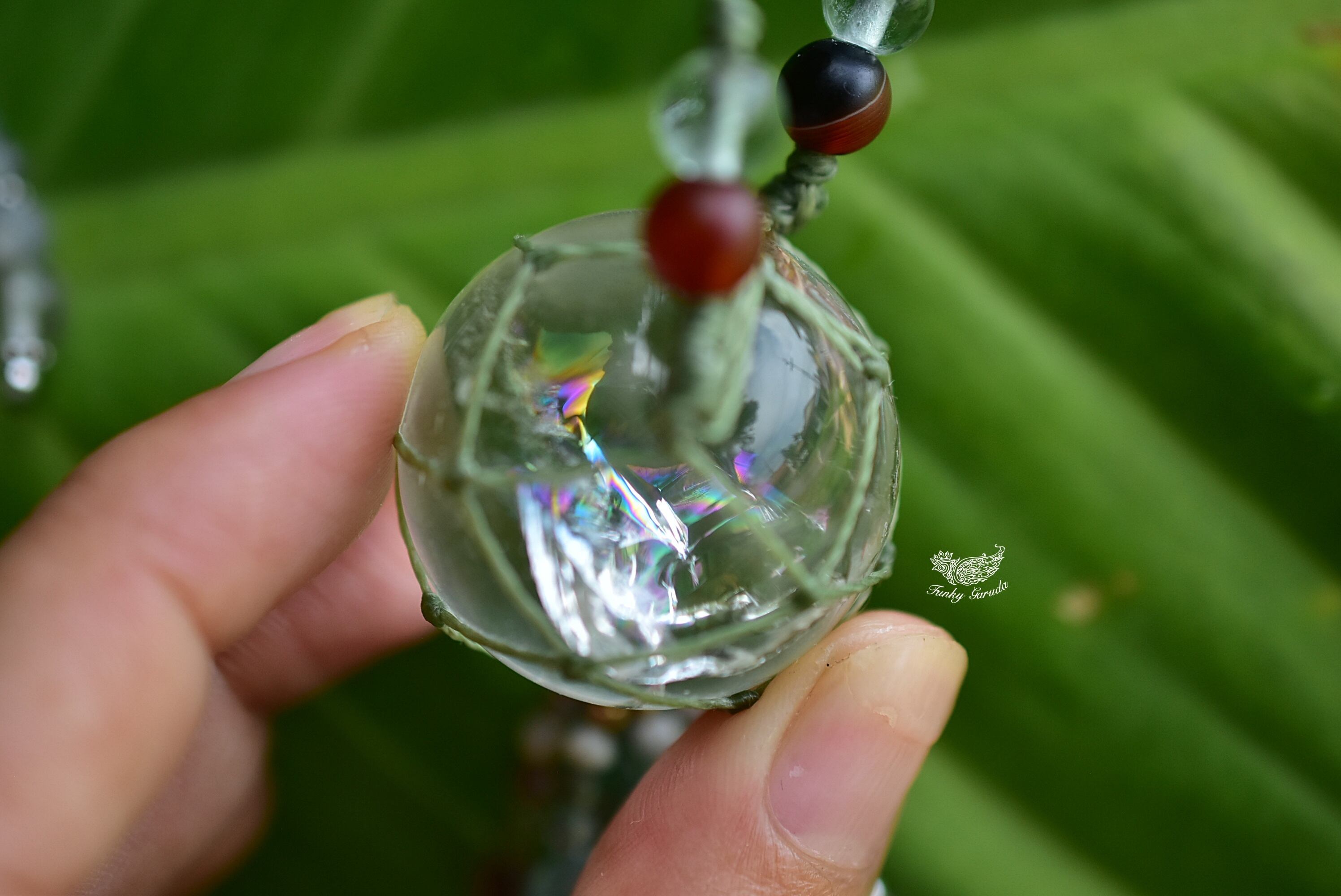 クリスタルボール全面に広がる虹インクルージョン