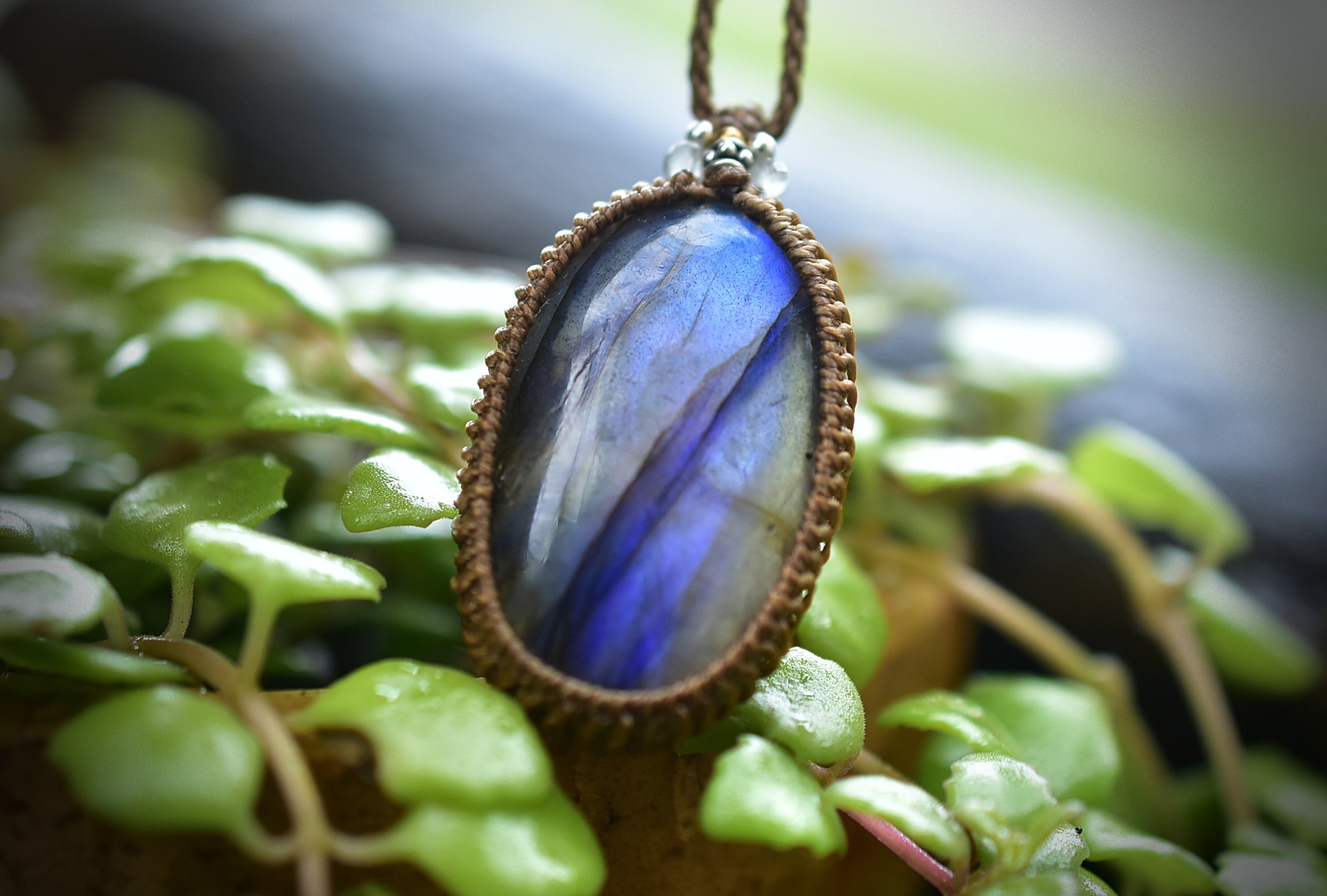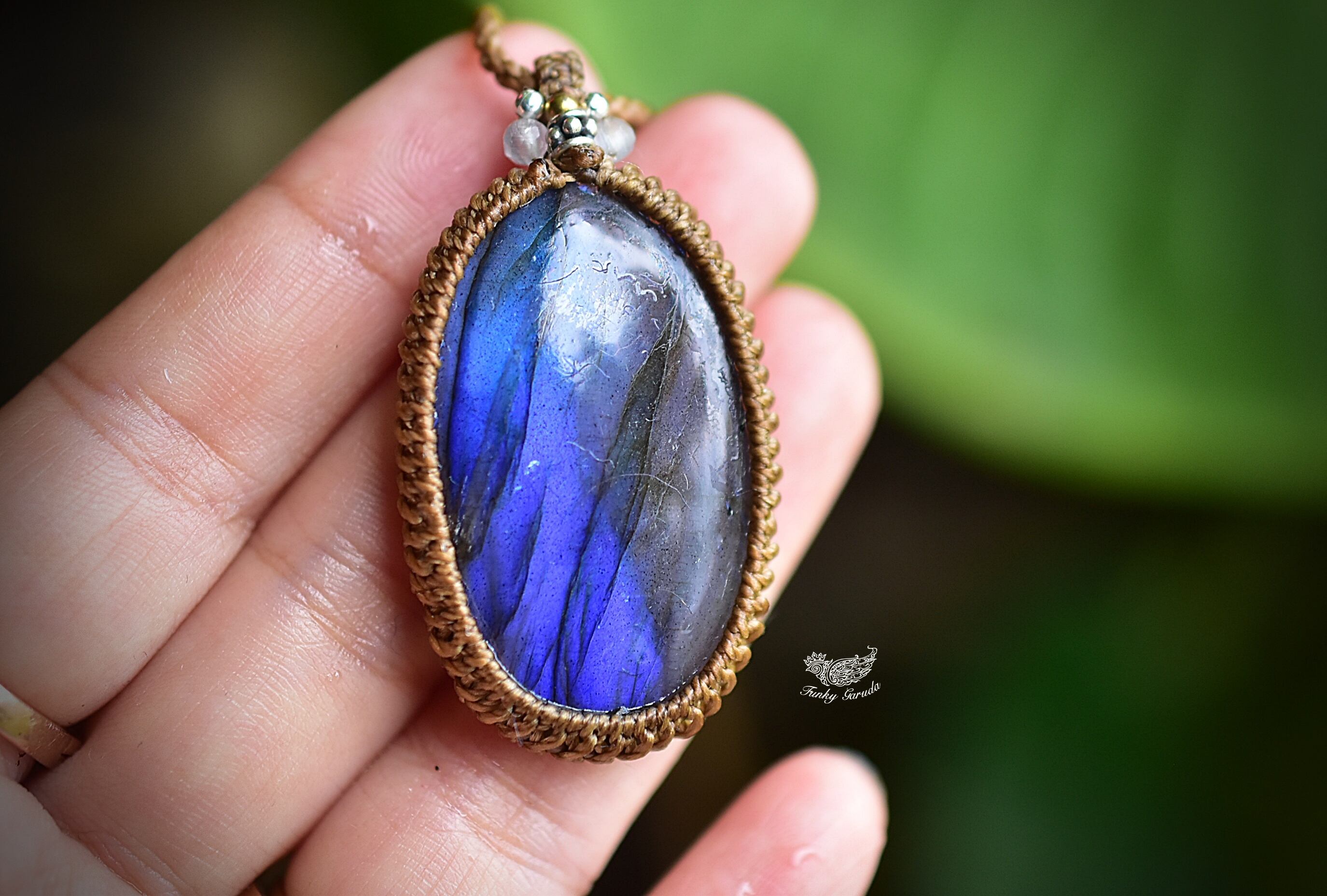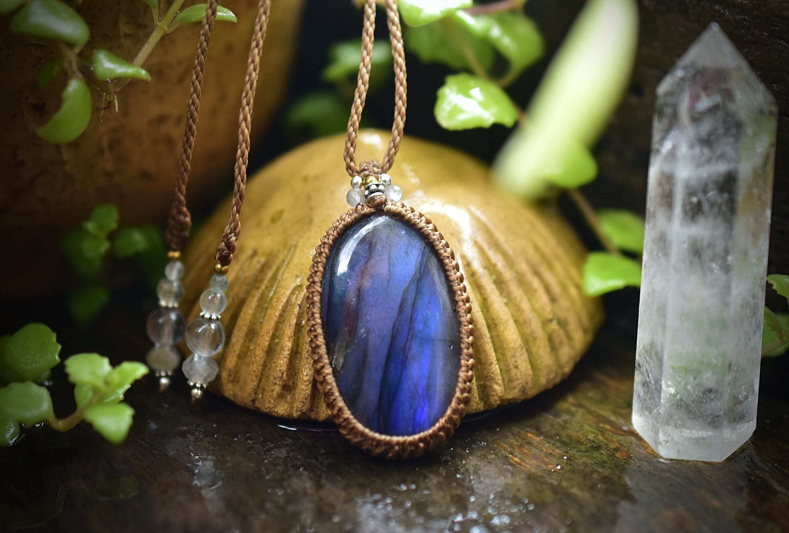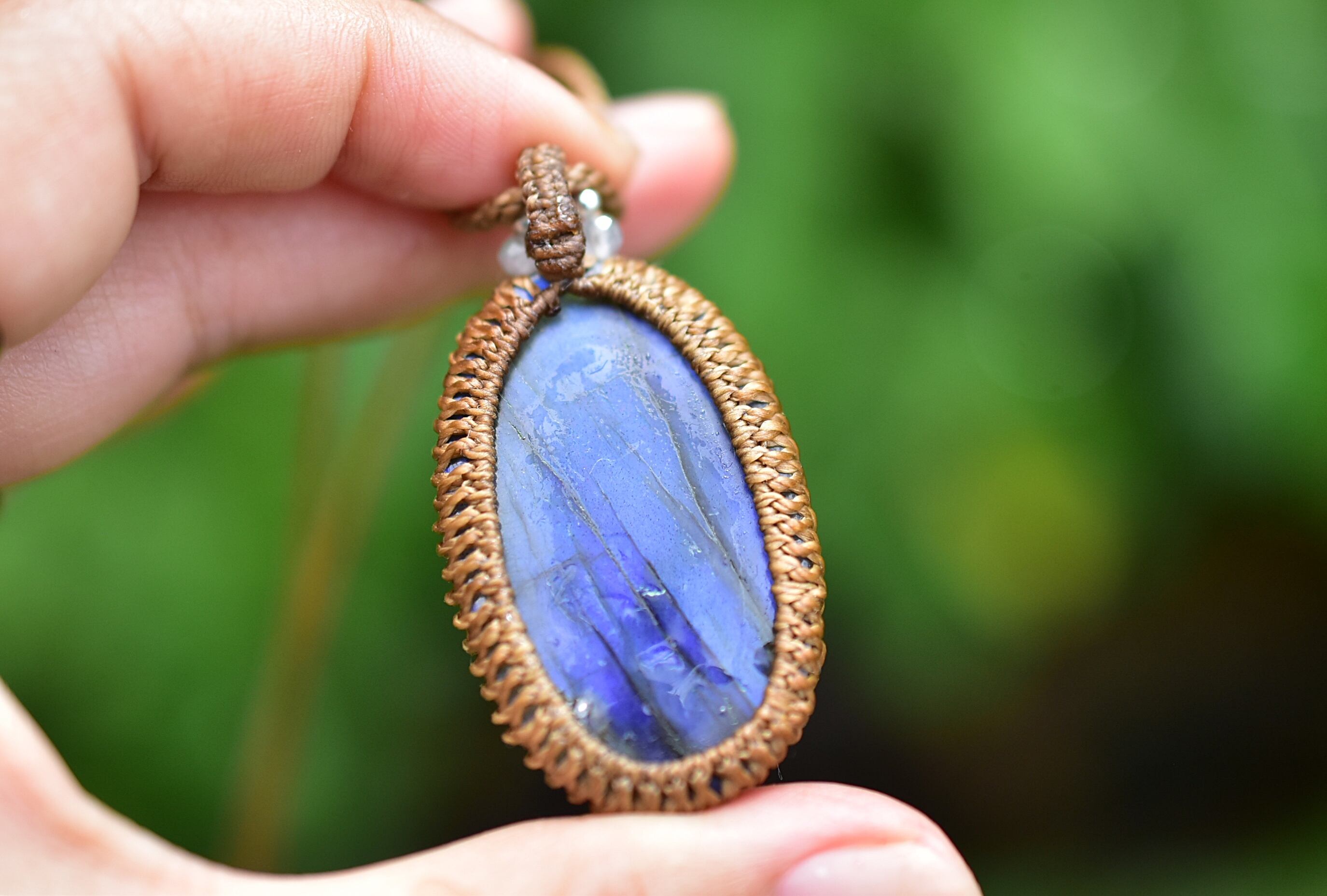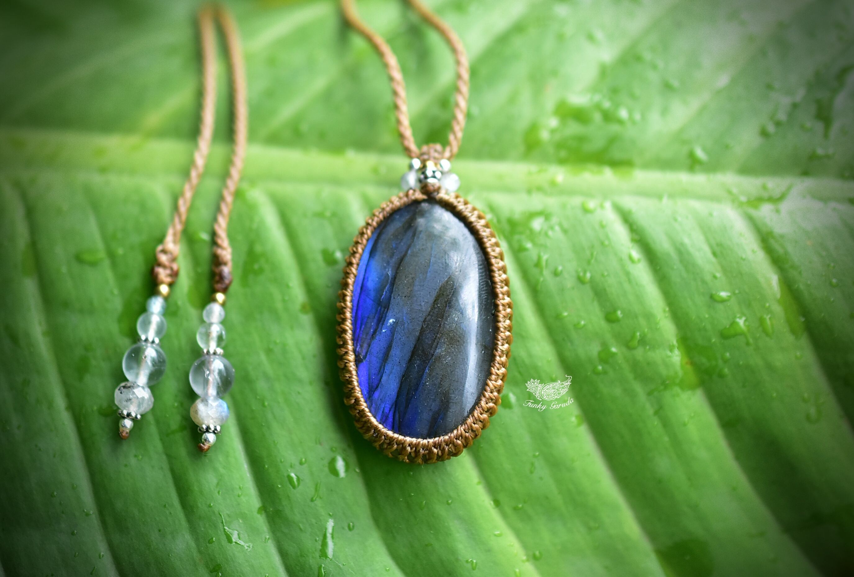 ブルーの艶★ブルーラブラドライトマクラメネックレス752
