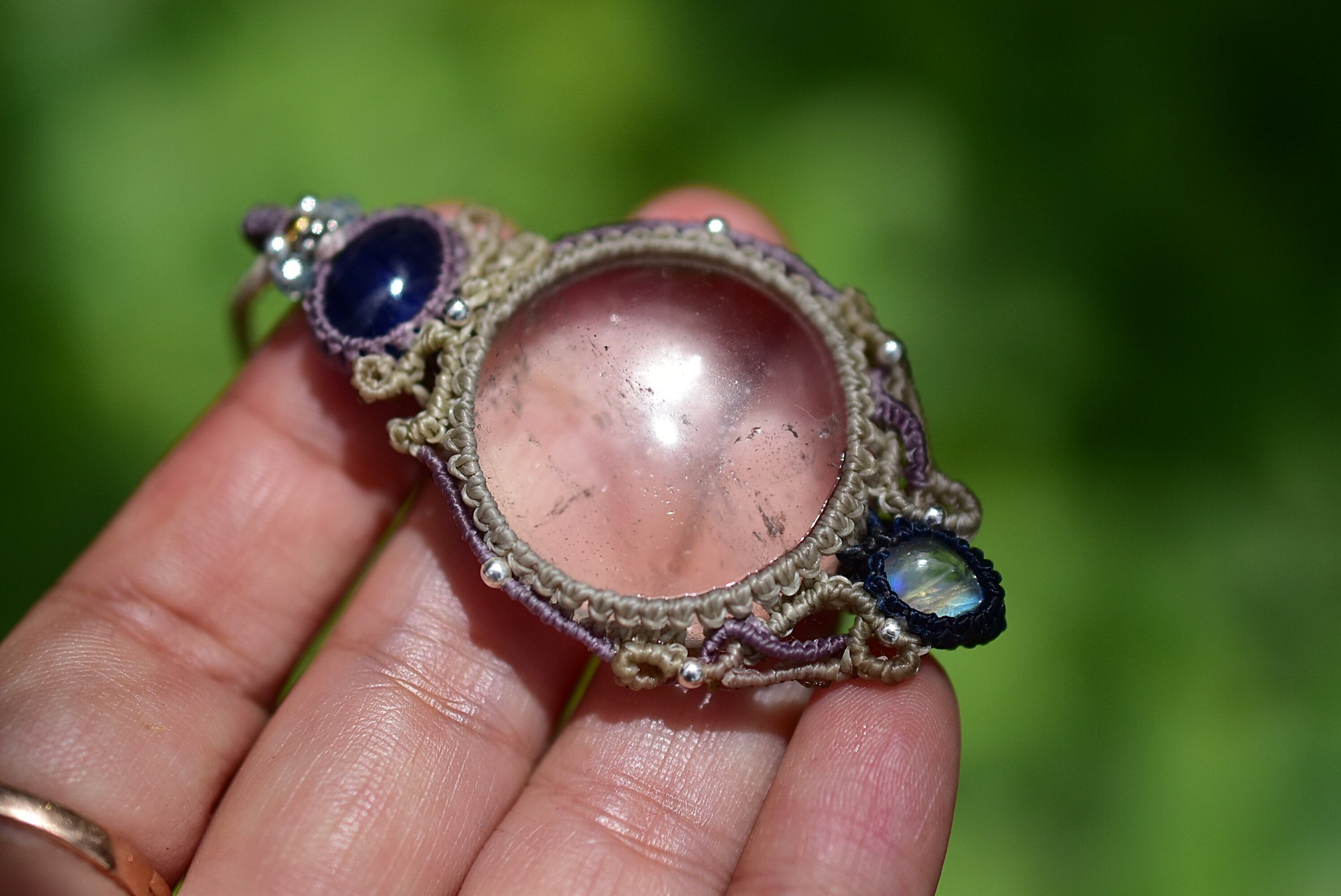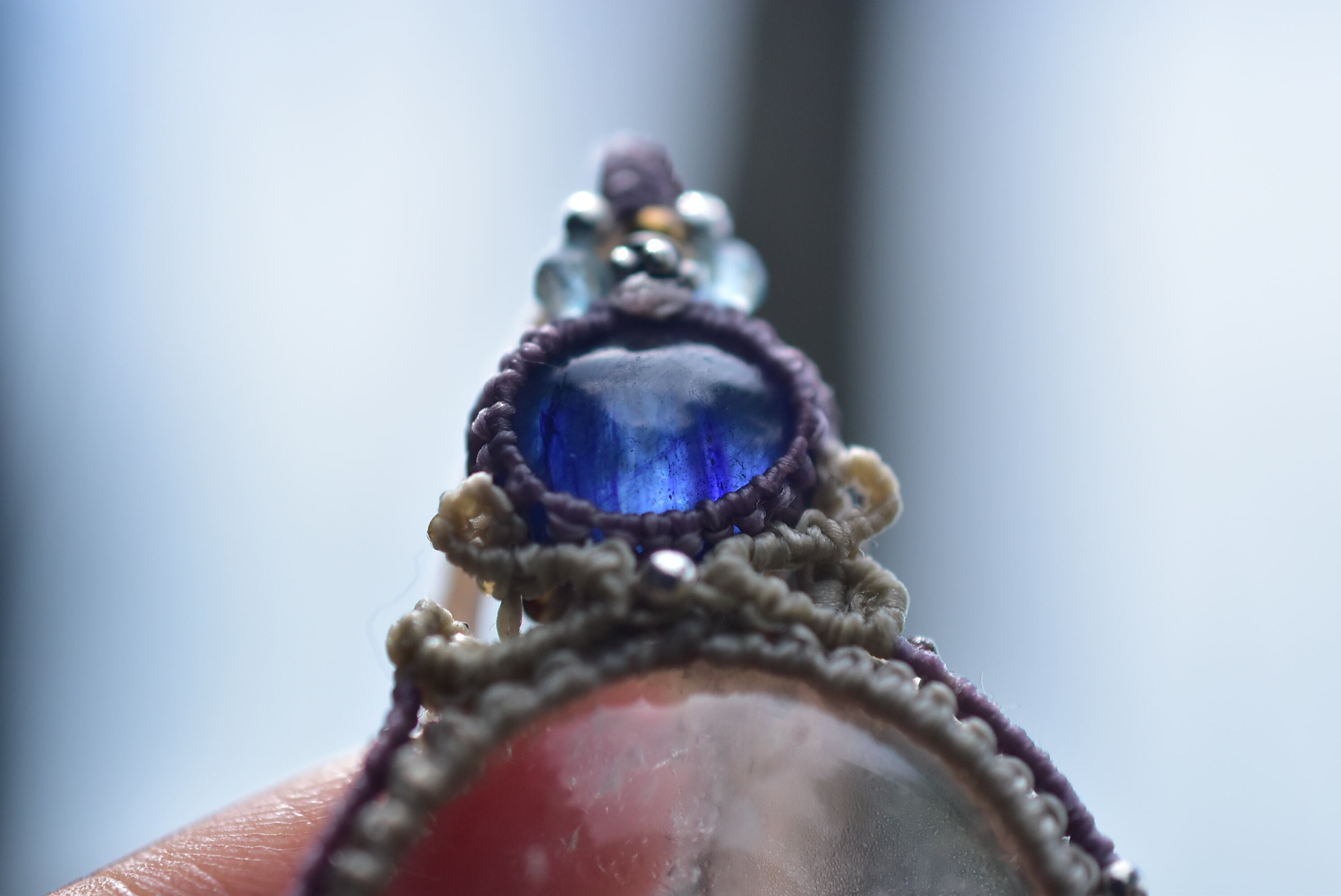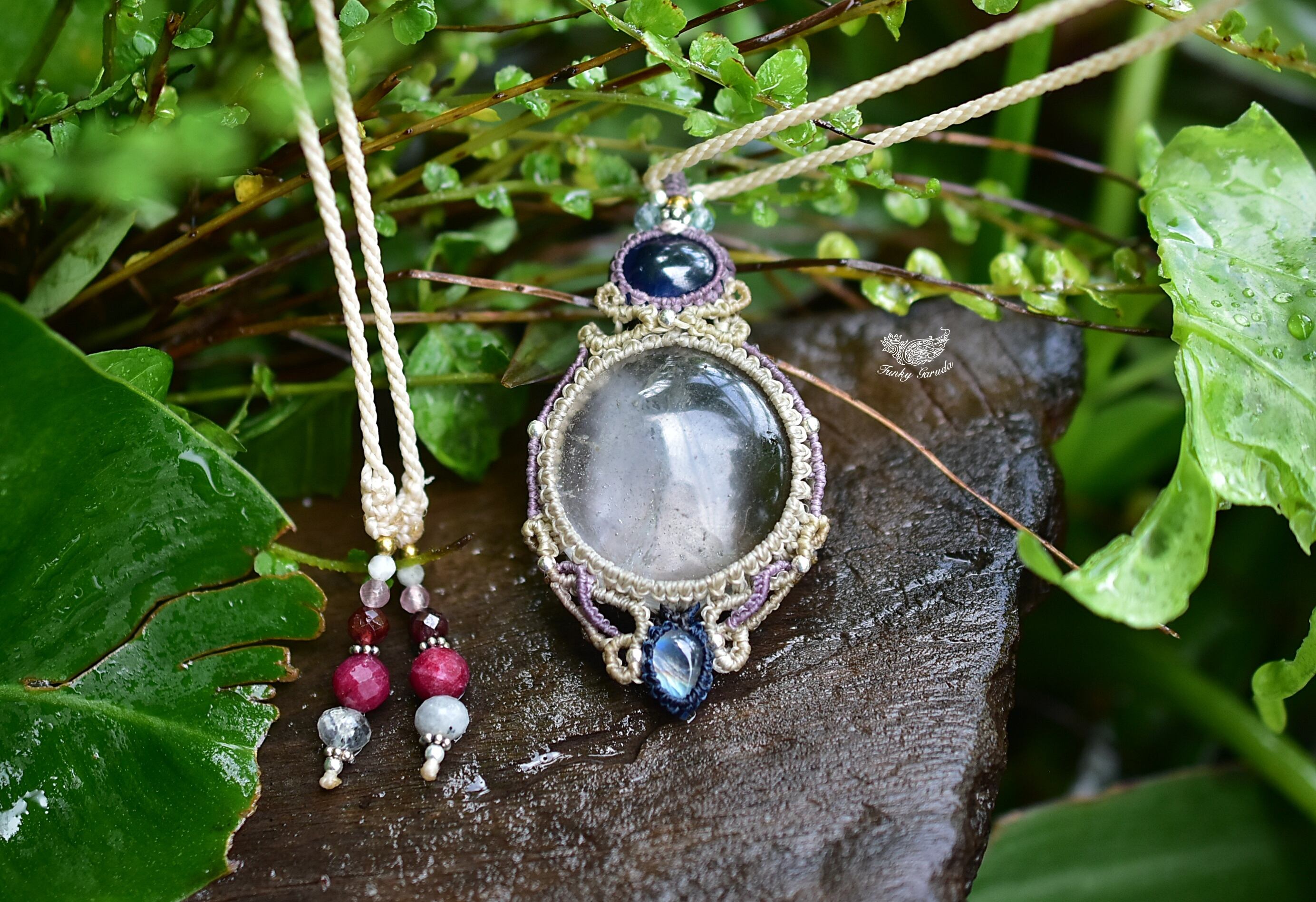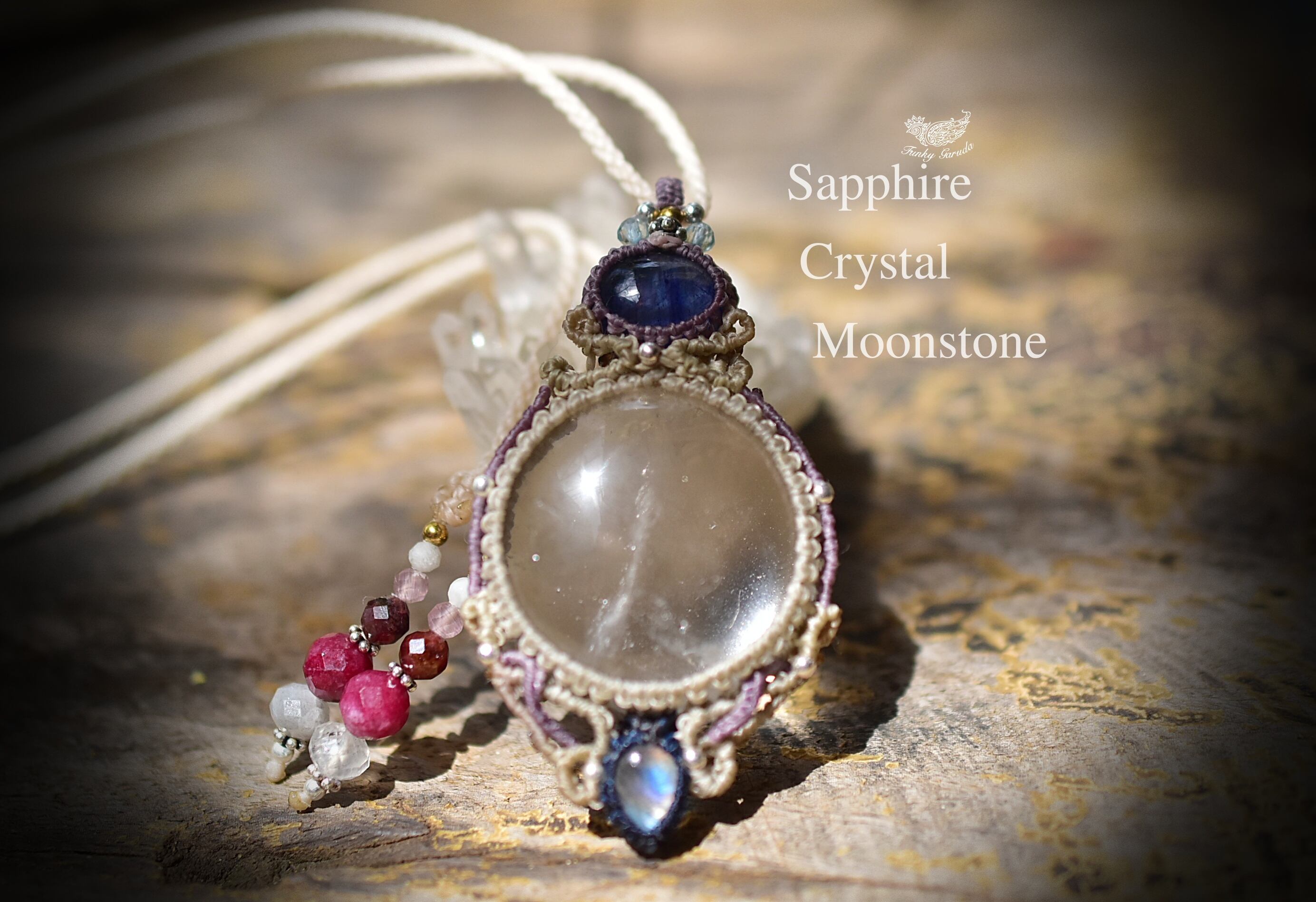 3重奏曲★サファイア ムーンストーン 水晶 マクラメネックレス755