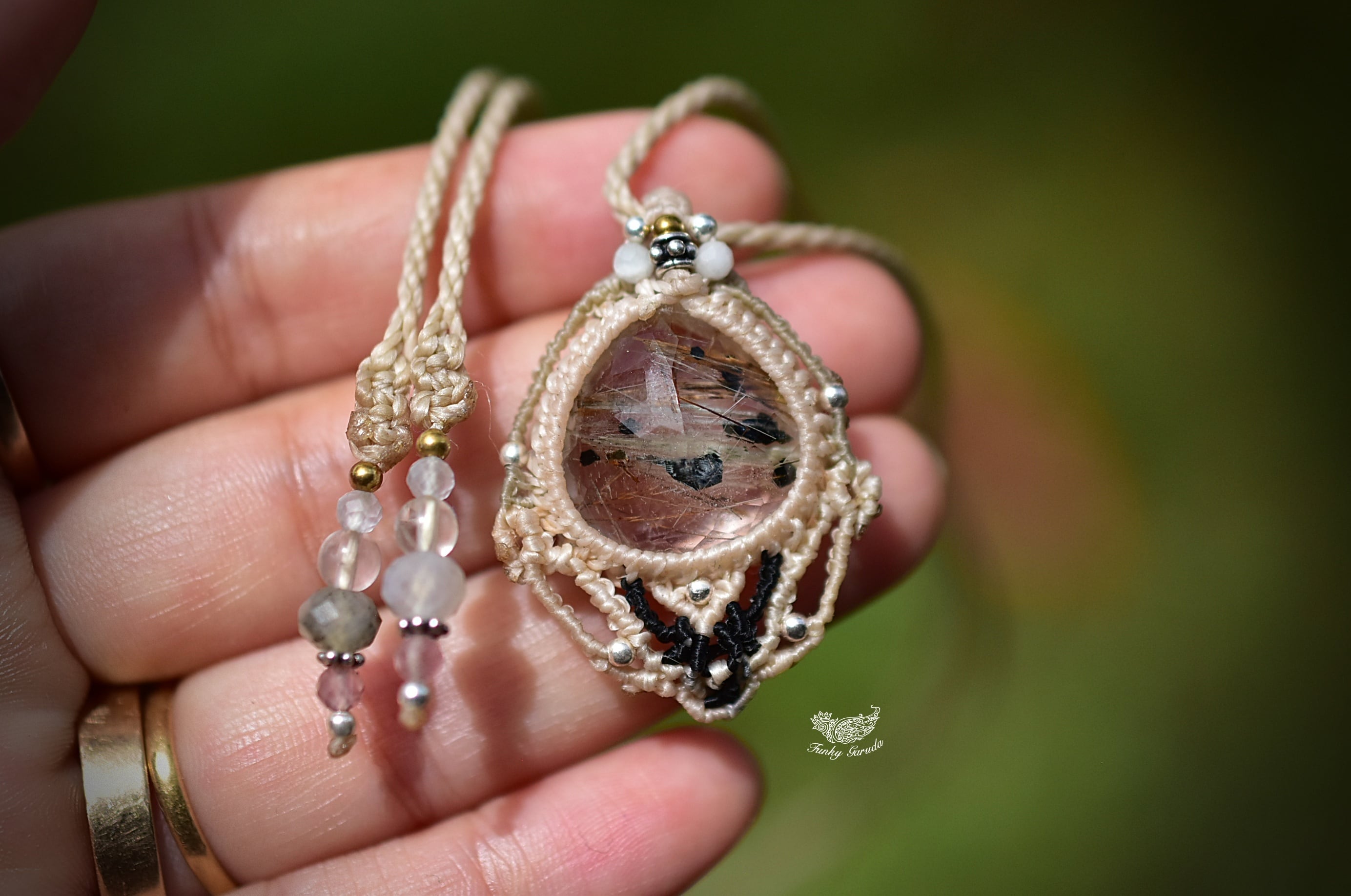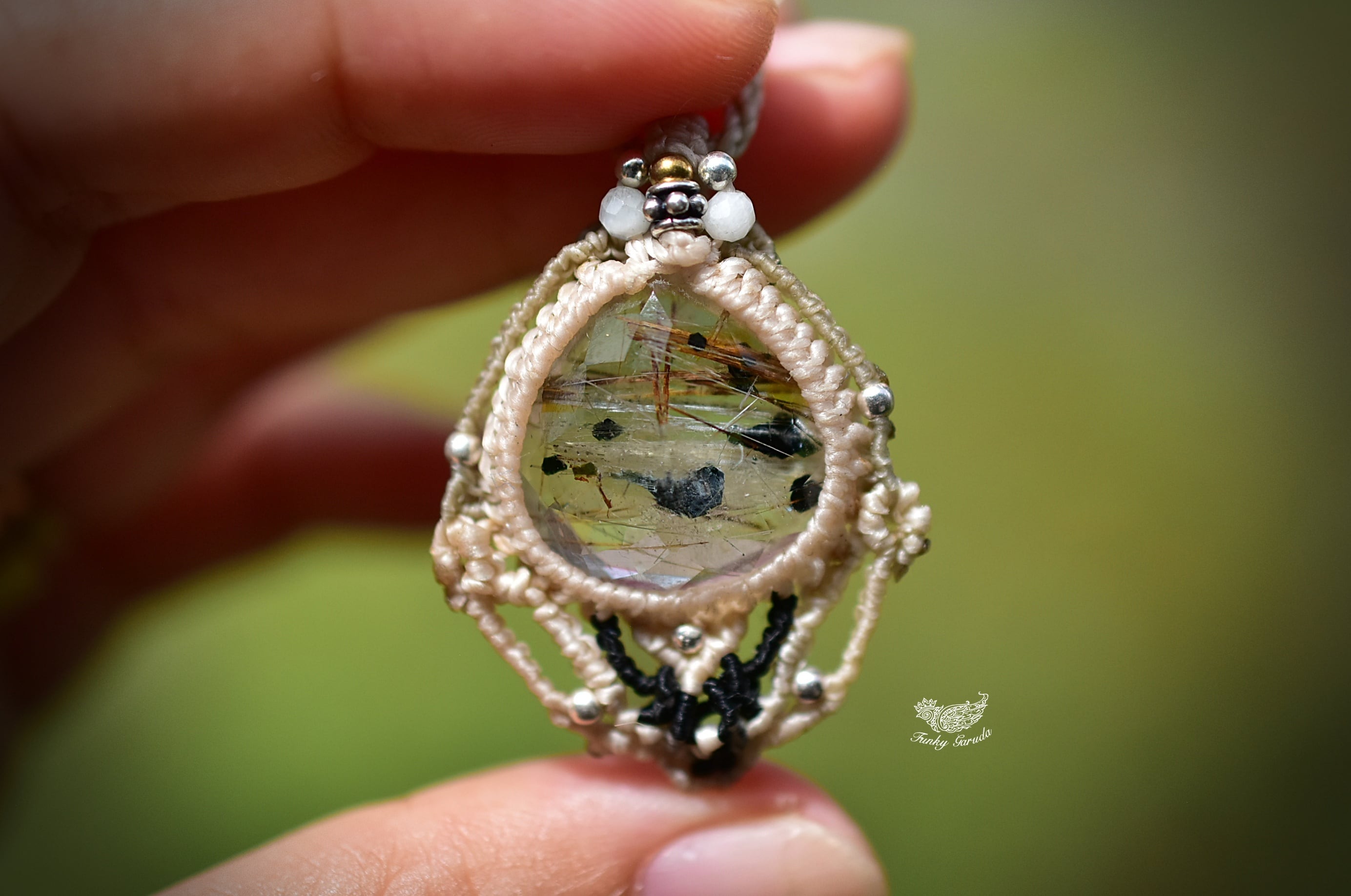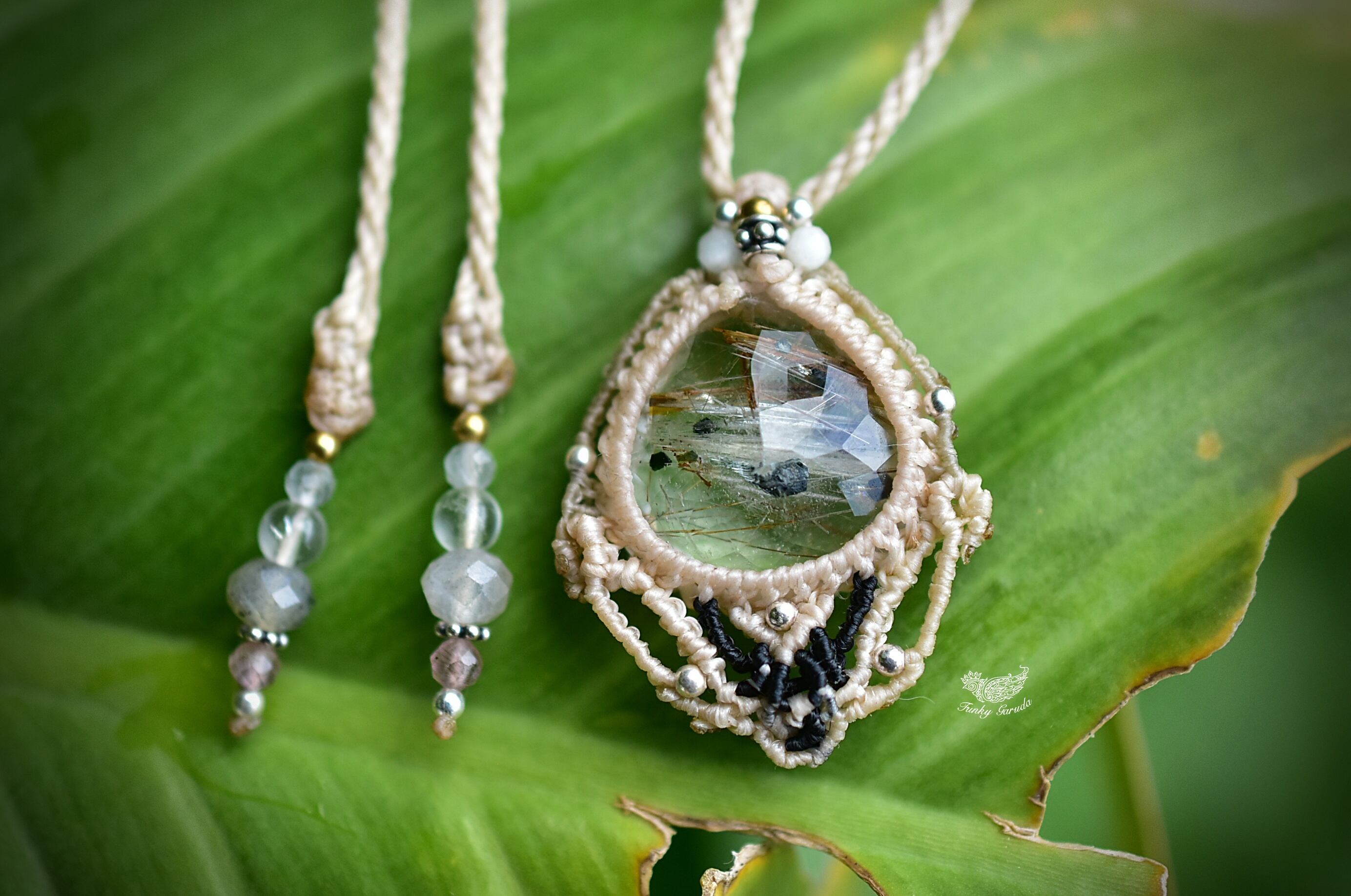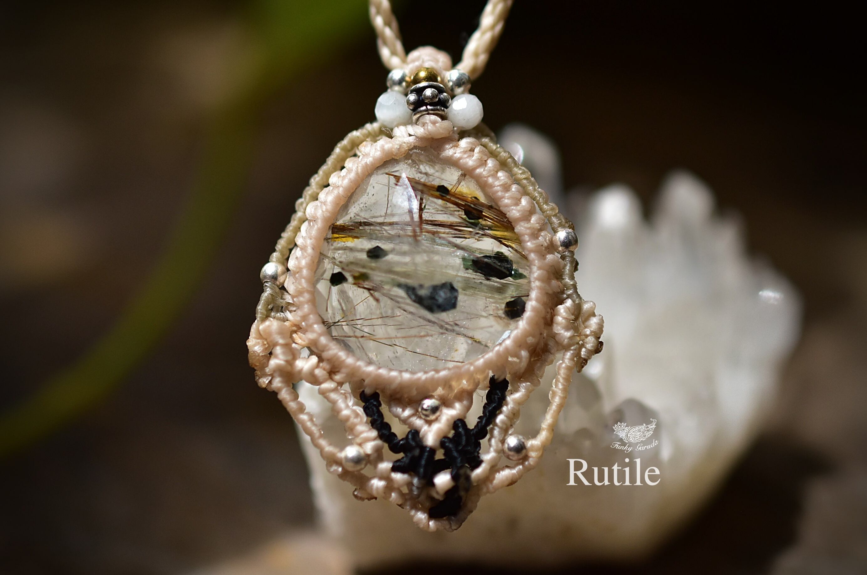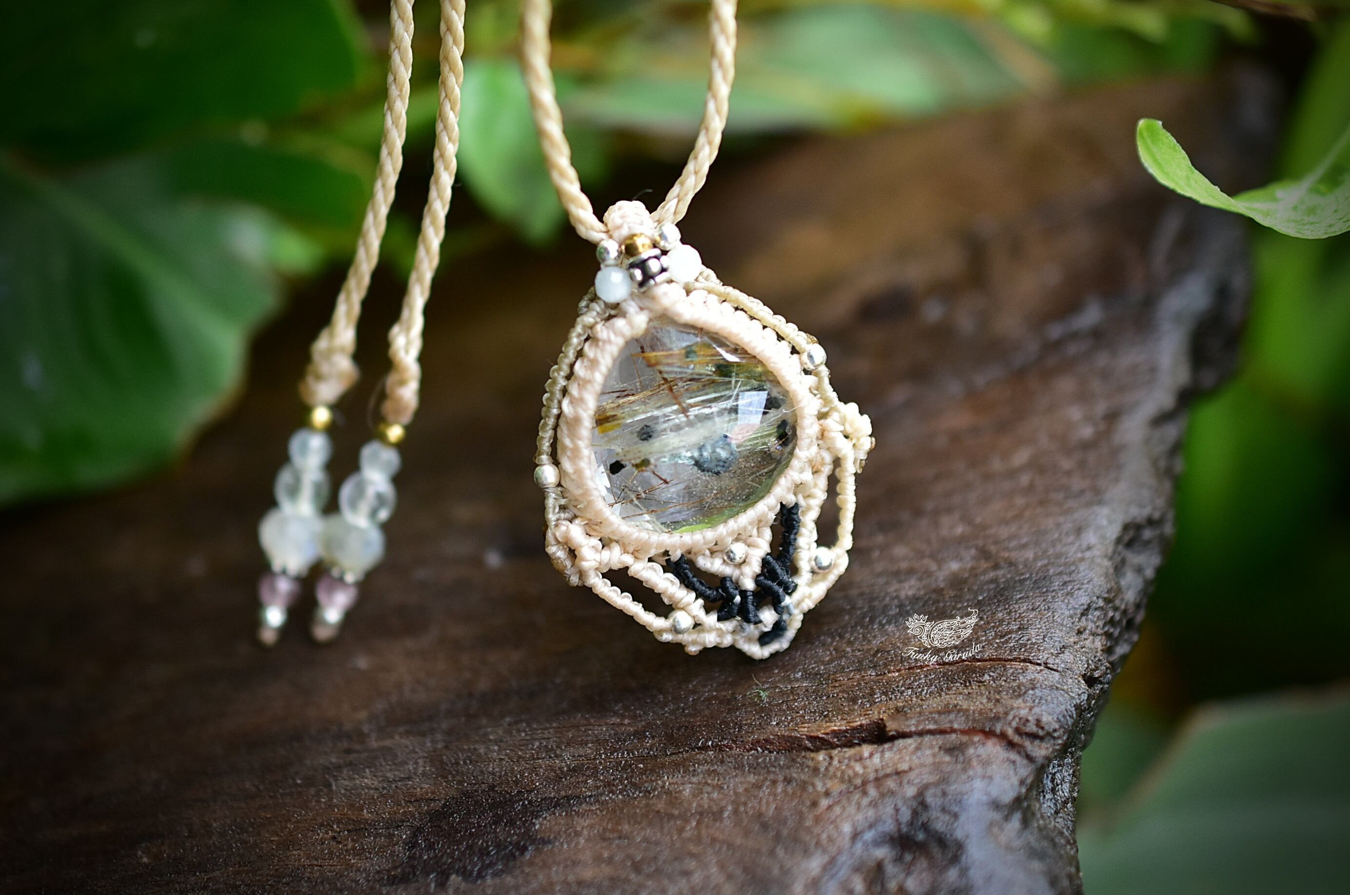 レア★不思議な鉱物と金★ルチルクォーツ マクラメネックレス757
